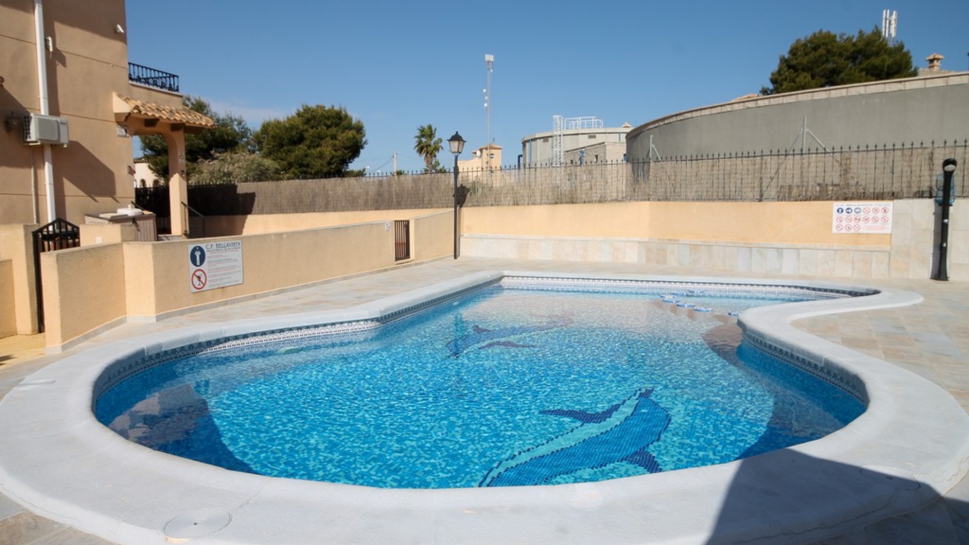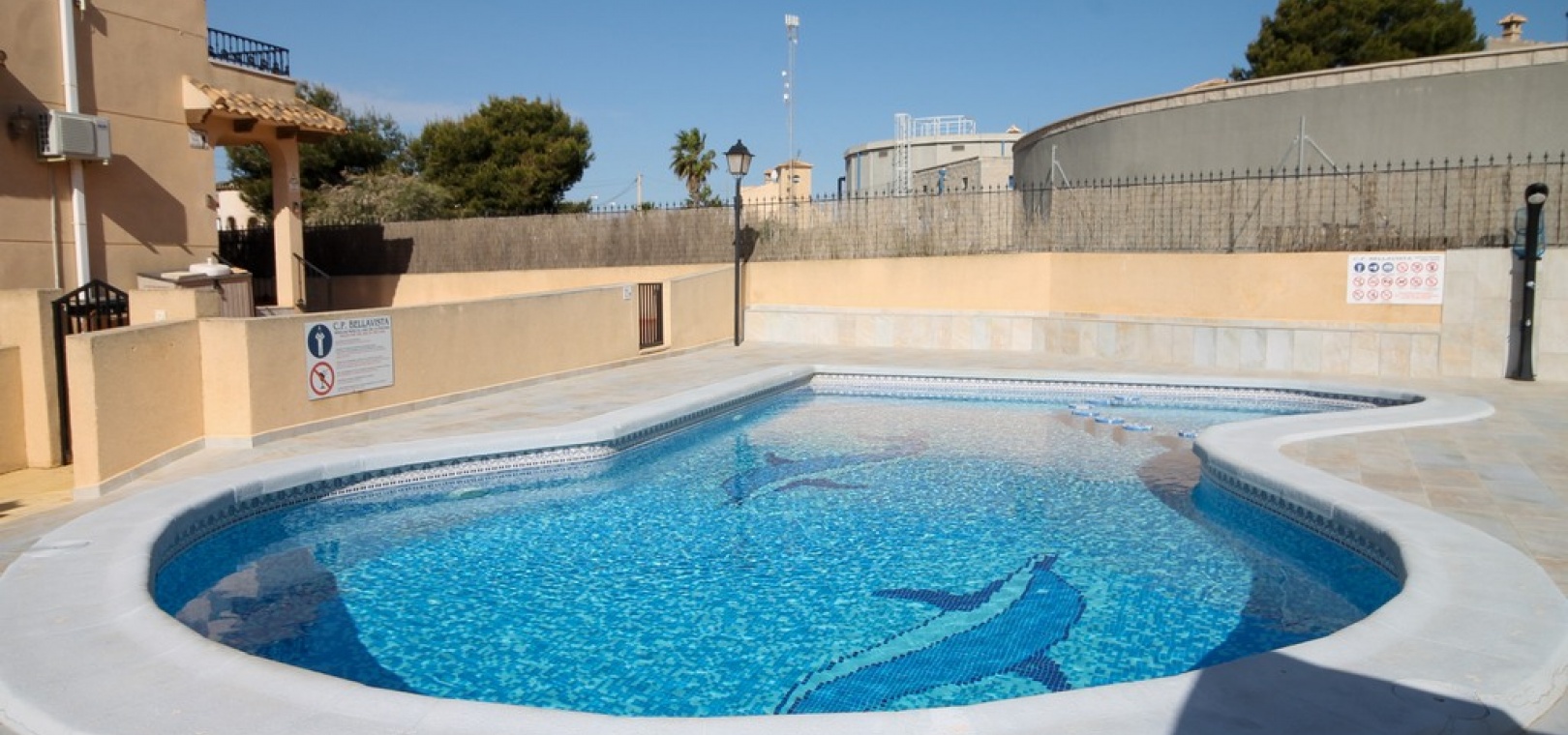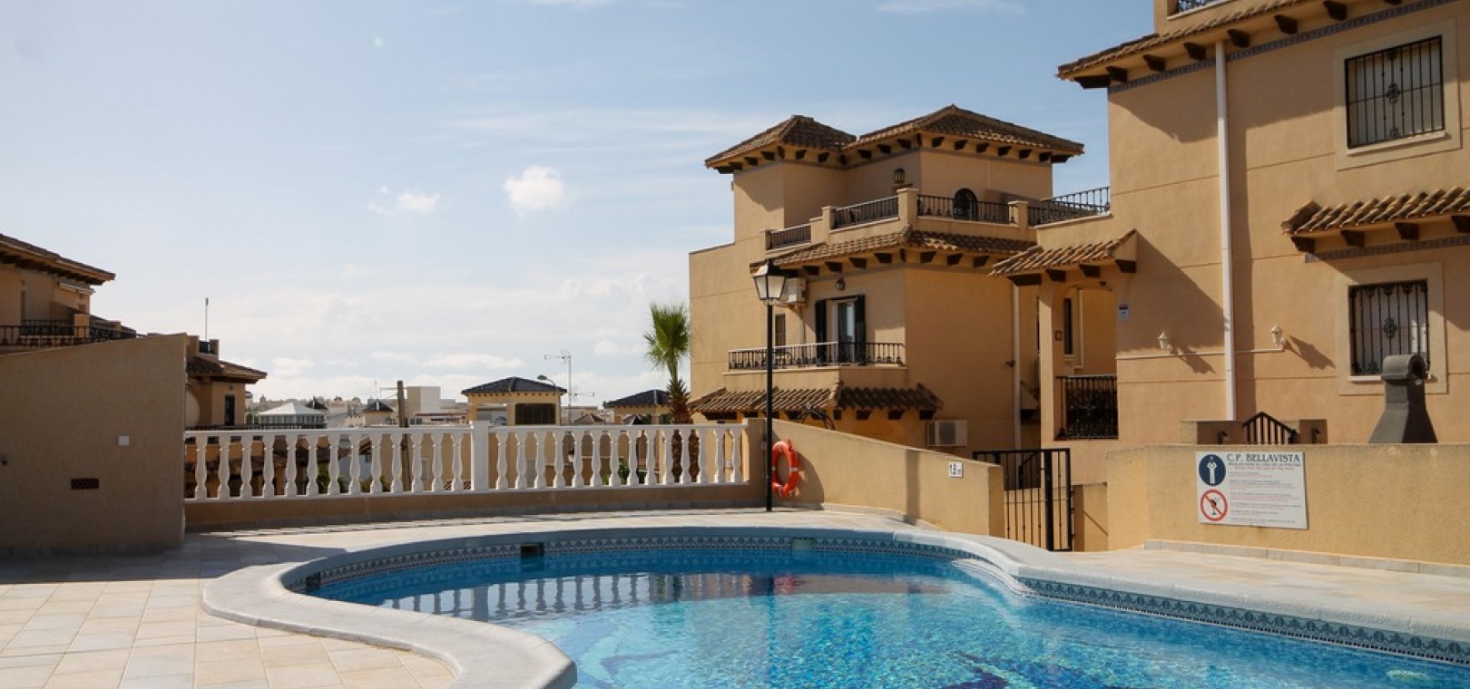 Denna fastighet har enkel tillgång till de fyra förstklassiga golfbanorna i området: Villamartin, Campoamor, Las Ramblas och Las Colinas. Stränderna Golden Orihuela Costa ligger mindre än 10 minuters bilresa bort, liksom köpcentret Zenia Boulevard (största köpcentret i Alicante-provinsen). Lokala barer, butiker, restauranger, snabbköp etc. ligger bara några minuter bort. Det finns tennisbanor och tennisträning tillgängligt på det närliggande hotellet Campoamor. Alicantes flygplats ligger 45 minuter bort och Murcia Corvera flygplats ligger 35 minuters bilresa bort.