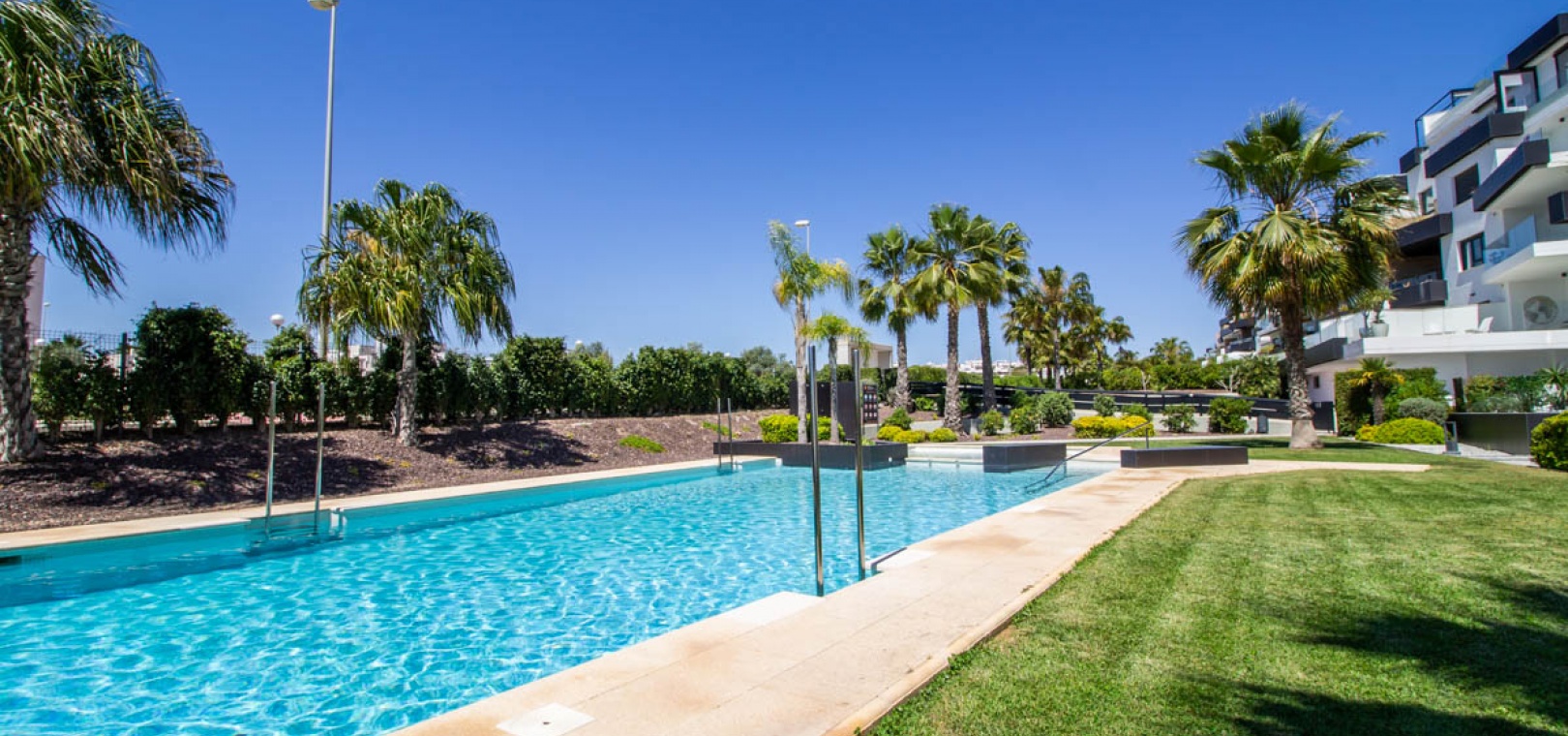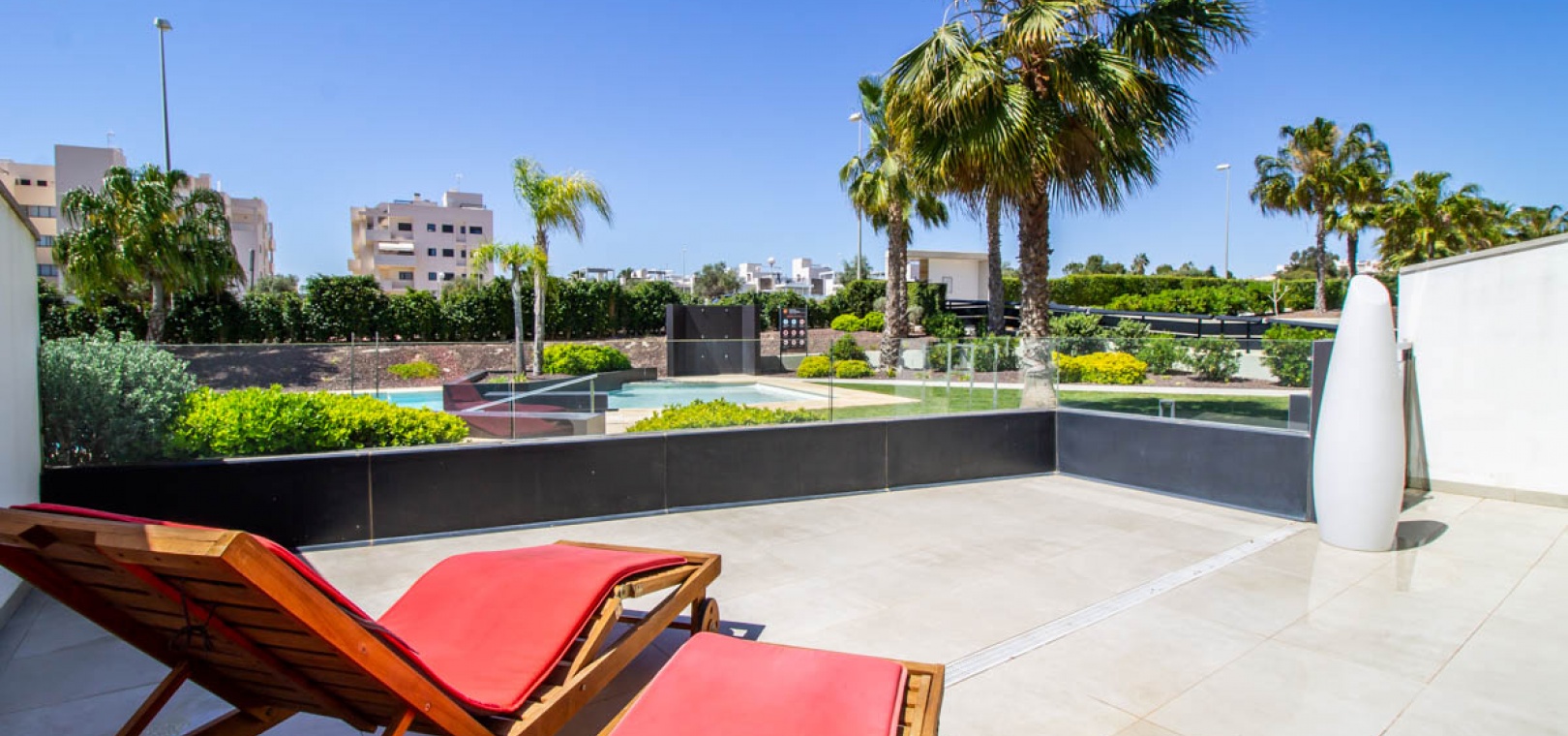 De vackra stränderna Orihuela Costa med blå flagg ligger bara 5 minuter med bil eller så kan du hoppa på lokalbussen. Köpcentret Zenia Boulevard ligger också bara 5 minuters bilresa bort. Villamartin Plaza ligger cirka 20 minuters promenad bort. Las Ramblas, Campoamor & Villamartin golfbana ligger alla bara några minuter med bil och Alicantes flygplats ligger 50 minuters bilresa bort.