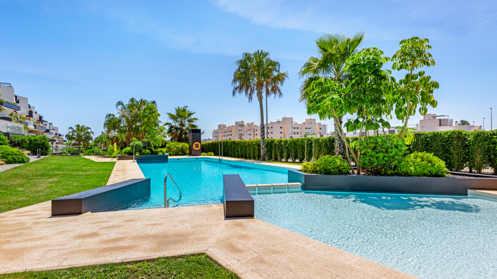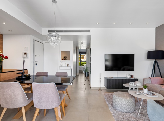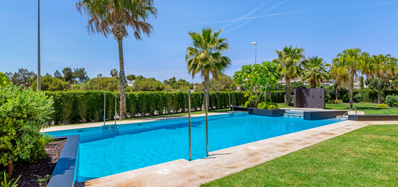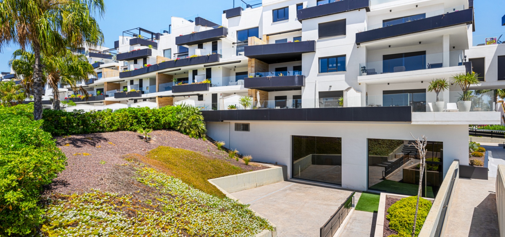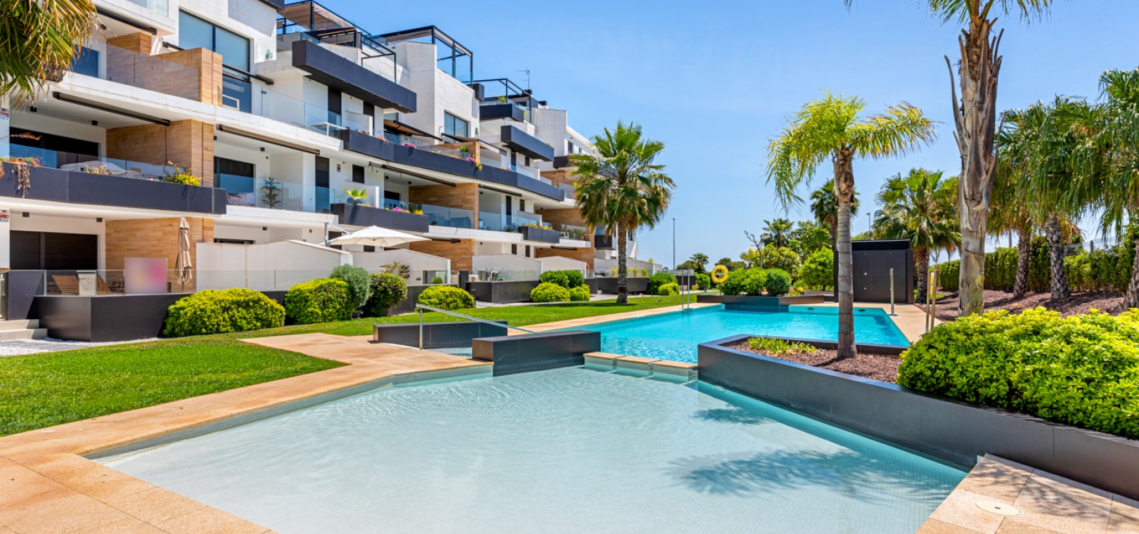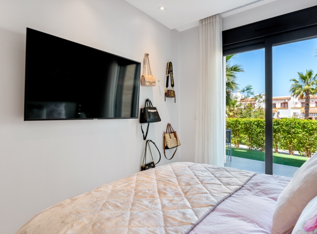 En fantastisk lägenhet i söderläge med 2 sovrum och 2 badrum på bottenvåningen i Res. Muna, Los Dolses, Villamartin, Costa Blanca. Denna fastighet i modern stil säljs i utmärkt skick, säljs möblerad och består mycket kortfattat av följande: - Ett stort vardagsrum / matsal med altandörrar ut på terrassen med fantastisk utsikt över den gemensamma poolen och trädgårdarna. Ett fullt utrustat kök med öppen planlösning med alla vitvaror inkluderade och ett separat bruksområde, trädgård på baksidan, 2 x stora dubbelrum med inbyggda garderober. Det största sovrummet har ett eget duschrum, 1 x gästduschrum, mycket solig terrass med utsikt över en av de gemensamma poolerna och en underjordisk parkeringsplats med ett förråd. Det finns varm och kall A/C i alla rum. Res Muna är ett litet, gated, mycket säkert samhälle som erbjuder 2 x externa pooler med rymliga grönområden, ett gym med ett inre spa och inomhuspool. Denna fastighet ligger bara en kort promenad från Los Dolses kommersiella centrum där du hittar många affärer, barer, restauranger, en bank och en stor mataffär. De vackra stränderna Orihuela Costa med blå flagg ligger bara 5 minuter med bil eller så kan du hoppa på lokalbussen. Köpcentret Zenia Boulevard ligger också bara 5 minuters bilresa bort. Villamartin Plaza ligger cirka 20 minuters promenad bort. Las Ramblas, Campoamor & Villamartin golfbana ligger alla bara några minuter med bil och Alicantes flygplats ligger 50 minuters bilresa bort. En fastighet som absolut måste ses!