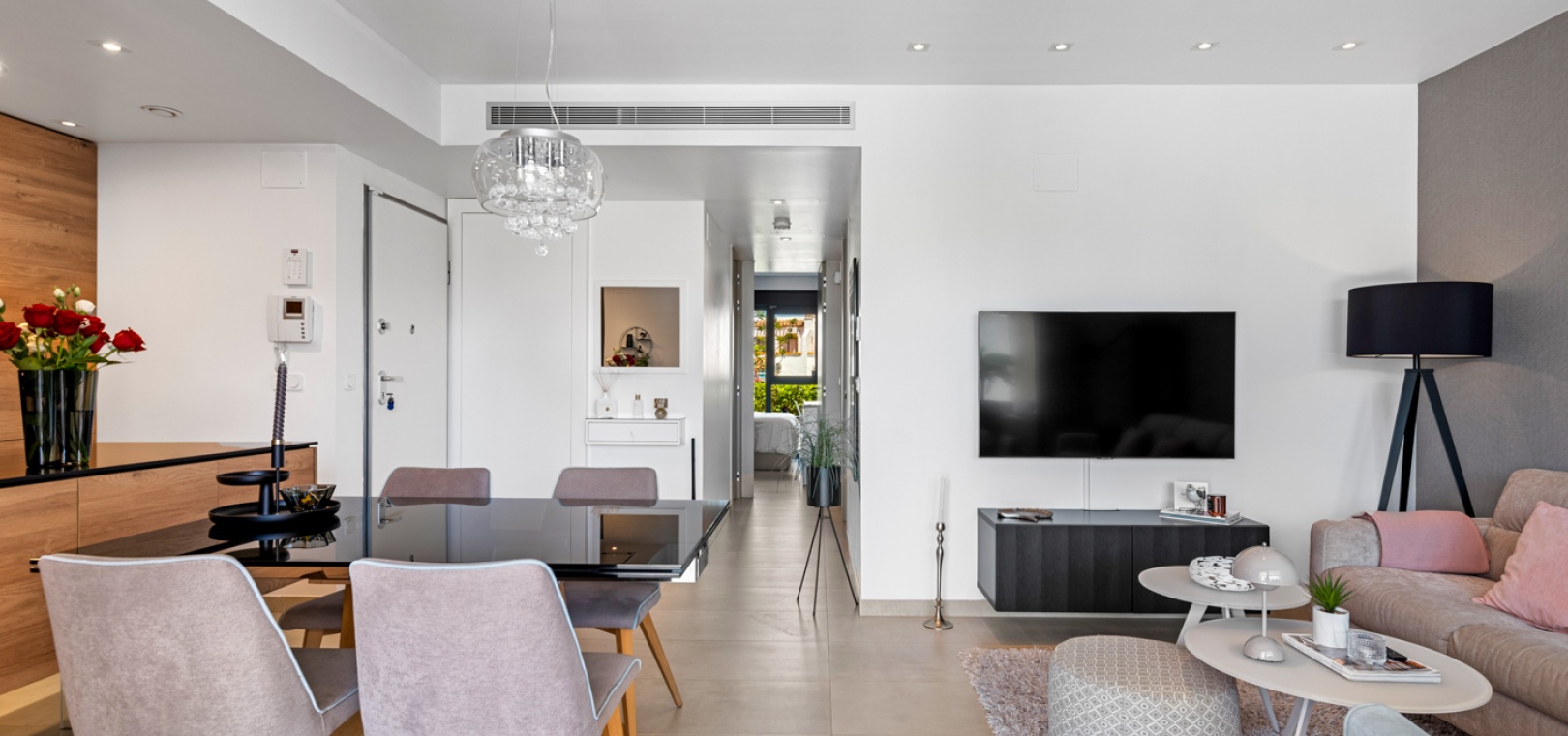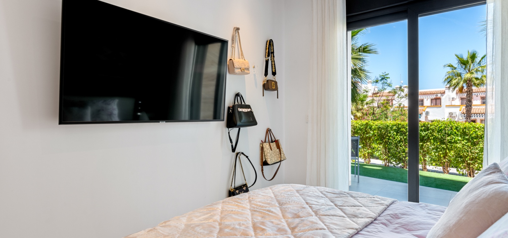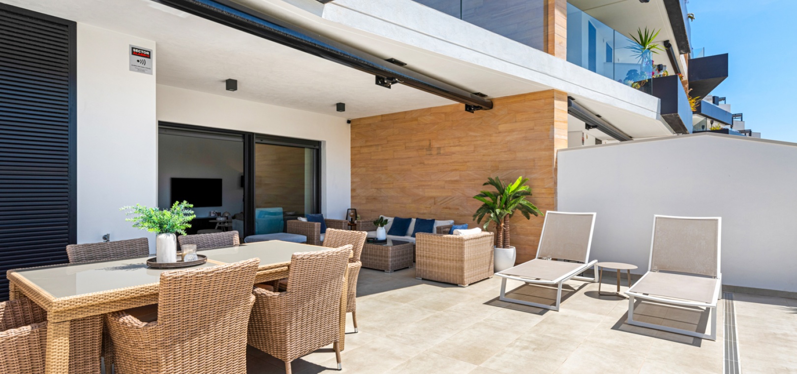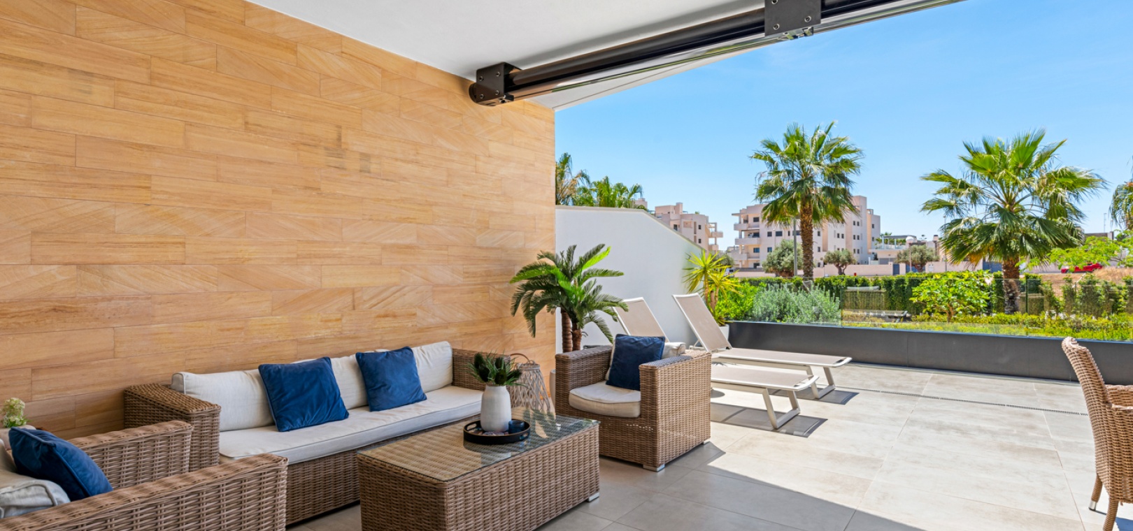 En fantastisk lägenhet i söderläge med 2 sovrum och 2 badrum på bottenvåningen i Res. Muna, Los Dolses, Villamartin, Costa Blanca. Denna fastighet i modern stil säljs i utmärkt skick, säljs möblerad och består mycket kortfattat av följande: - Ett stort vardagsrum / matsal med altandörrar ut på terrassen med fantastisk utsikt över den gemensamma poolen och trädgårdarna. Ett fullt utrustat kök med öppen planlösning med alla vitvaror inkluderade och ett separat bruksområde, trädgård på baksidan, 2 x stora dubbelrum med inbyggda garderober. Det största sovrummet har ett eget duschrum, 1 x gästduschrum, mycket solig terrass med utsikt över en av de gemensamma poolerna och en underjordisk parkeringsplats med ett förråd. Det finns varm och kall A/C i alla rum. Res Muna är ett litet, gated, mycket säkert samhälle som erbjuder 2 x externa pooler med rymliga grönområden, ett gym med ett inre spa och inomhuspool. Denna fastighet ligger bara en kort promenad från Los Dolses kommersiella centrum där du hittar många affärer, barer, restauranger, en bank och en stor mataffär. De vackra stränderna Orihuela Costa med blå flagg ligger bara 5 minuter med bil eller så kan du hoppa på lokalbussen. Köpcentret Zenia Boulevard ligger också bara 5 minuters bilresa bort. Villamartin Plaza ligger cirka 20 minuters promenad bort. Las Ramblas, Campoamor & Villamartin golfbana ligger alla bara några minuter med bil och Alicantes flygplats ligger 50 minuters bilresa bort. En fastighet som absolut måste ses!