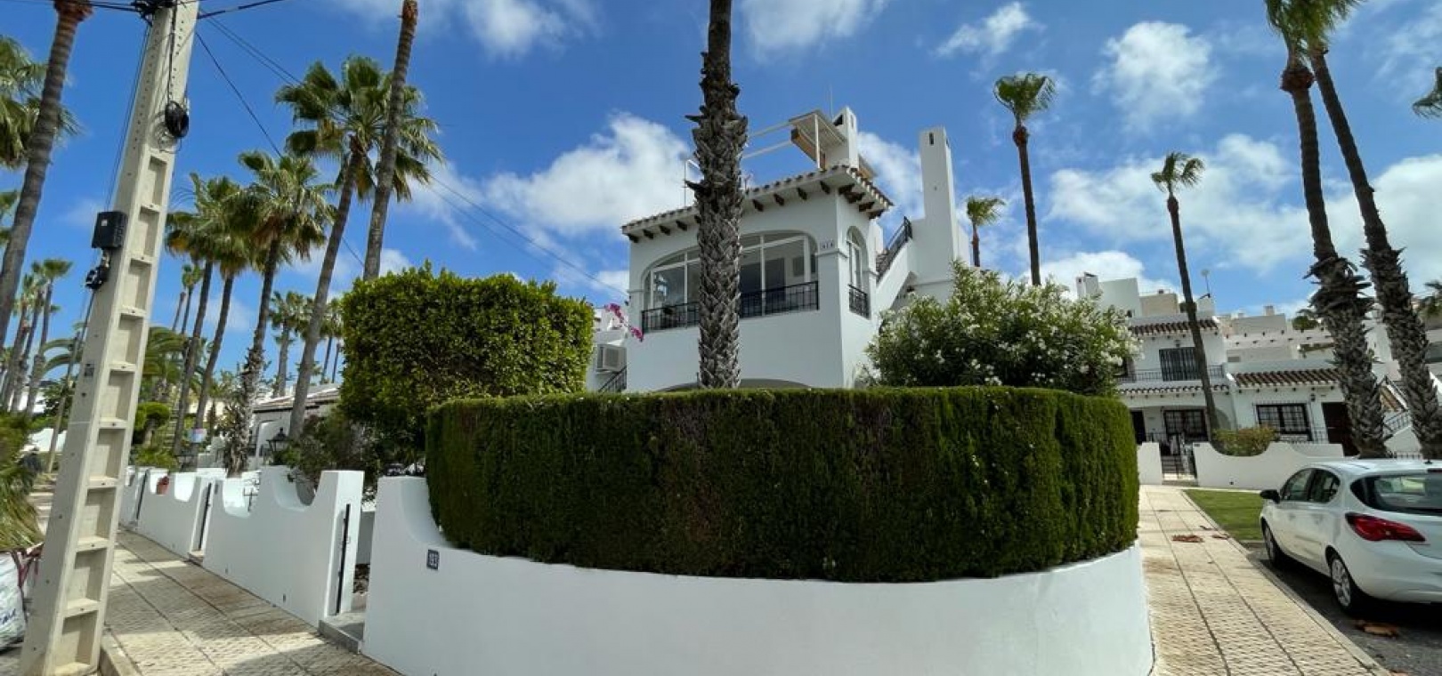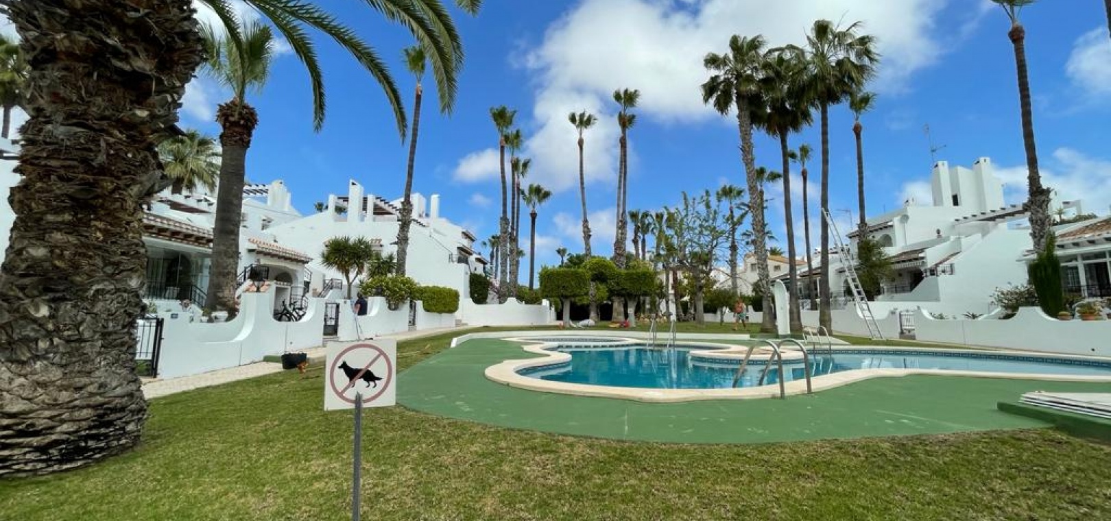 En västläge 2 sovrum 1 badrum bottenvåningen hörn lägenhet belägen i Res. Verdemar III, Villamartin, Costa Blanca. Denna fastighet säljs i mycket gott skick eftersom den har uppdaterats, säljs möblerad och består mycket kortfattat av följande:- Lounge/matsal med varm och kall luftkonditionering, öppen planlösning, nyligen utrustat kök, separat grovkök, 2 x dubbelrum båda med inbyggda garderober, 1 x nymonterat duschrum, terrass på framsidan, trädgård på framsidan och sidan, förråd, gemensam pool och mycket mer. Det stora kommersiella centrumet La Fuente med banker, barer, restauranger, snabbköp, apotek etc ligger bara en kort promenad bort, liksom det stora snabbköpet Mercadona. Bussar och taxi stannar precis utanför La Fuente. Den världsberömda Villamartin Plaza & golfklubben ligger mindre än 5 minuters bilresa och Campoamor & Las Ramblas golfklubbar ligger båda inom 2 minuters bilresa. De fantastiska stränderna med blå flagg i La Zenia, Cala Capitain, Cabo Roig och Campoamor ligger alla mindre än 10 minuters bilresa eller så kan du använda den lokala bussen.
