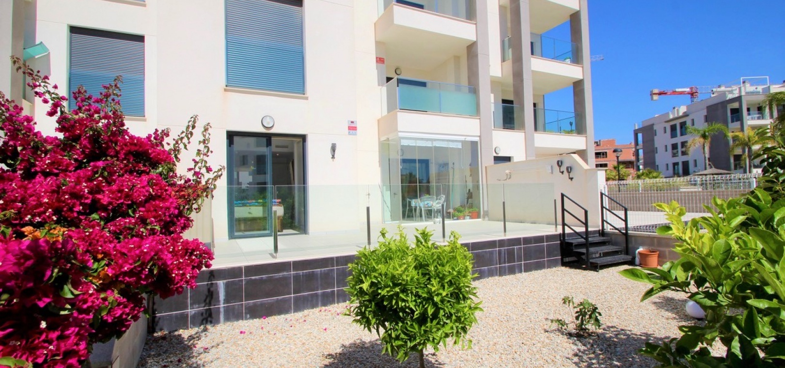 En lyxig sydostläge lägenhet med 2 sovrum och 2 badrum på bottenvåningen i Res. Valentino Golf, Villamartin, Costa Blanca.