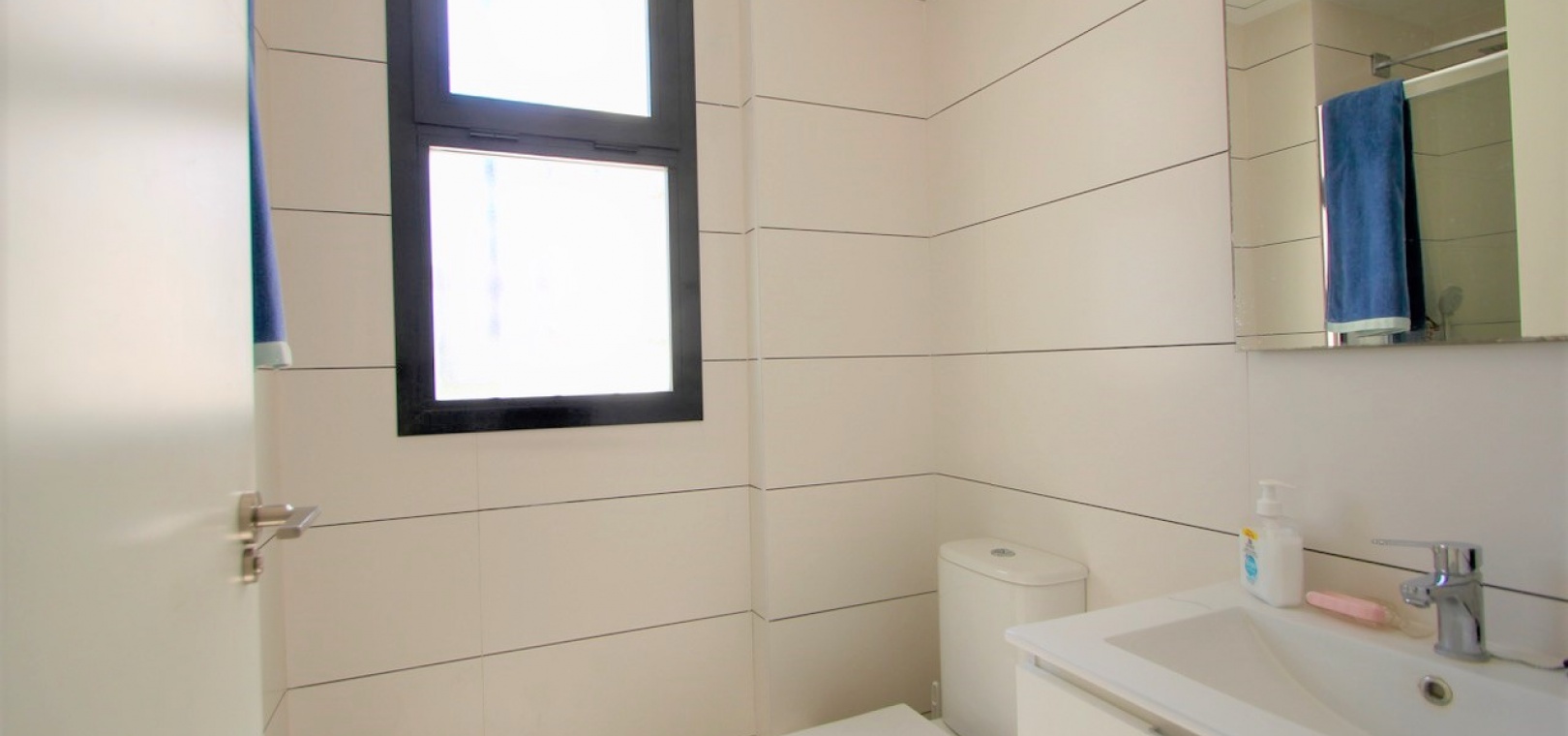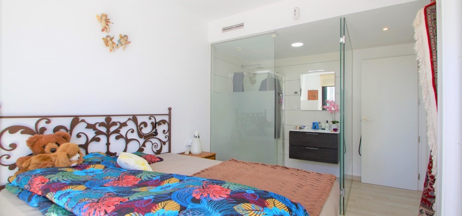 Ljust och luftigt vardagsrum/matsal med dörrar till terrassen, fullt utrustat kök i öppen planlösning, separat tvättstuga, 1 x huvudsovrum med inbyggda garderober och ett eget duschrum, 1 x tvåbäddsrum, 1 x familjeduschrum, stort privat trädgård, 3 x gemensamma pooler, tennisbana, en lekplats och mycket mycket mer.