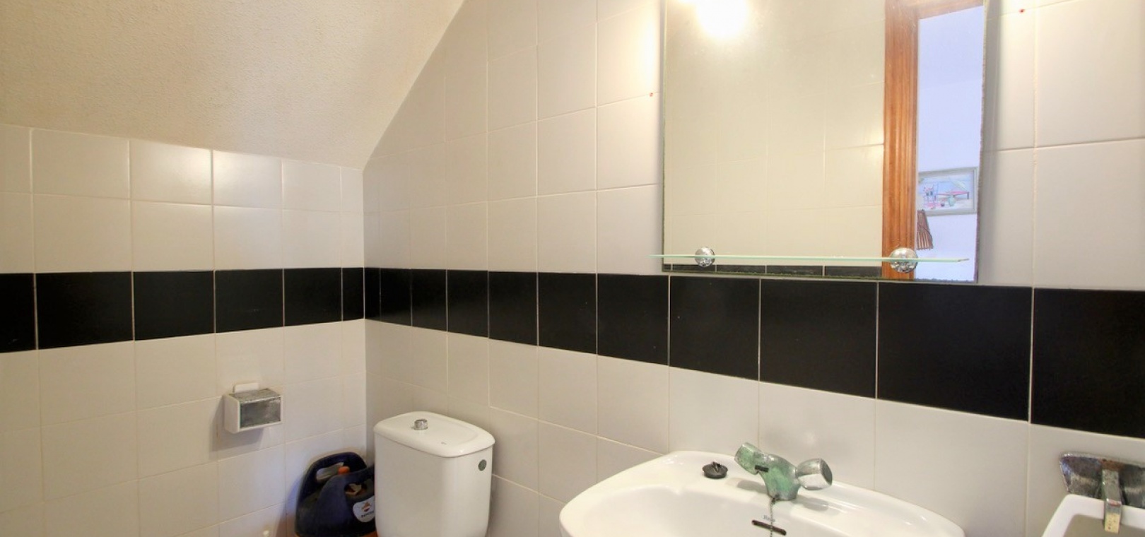 På bottenvåningen finns ett vardagsrum/matrum med öppen spis, separat fullt utrustat kök, tvättstuga som leder ut till den bakre trädgården och 1 x W/C.