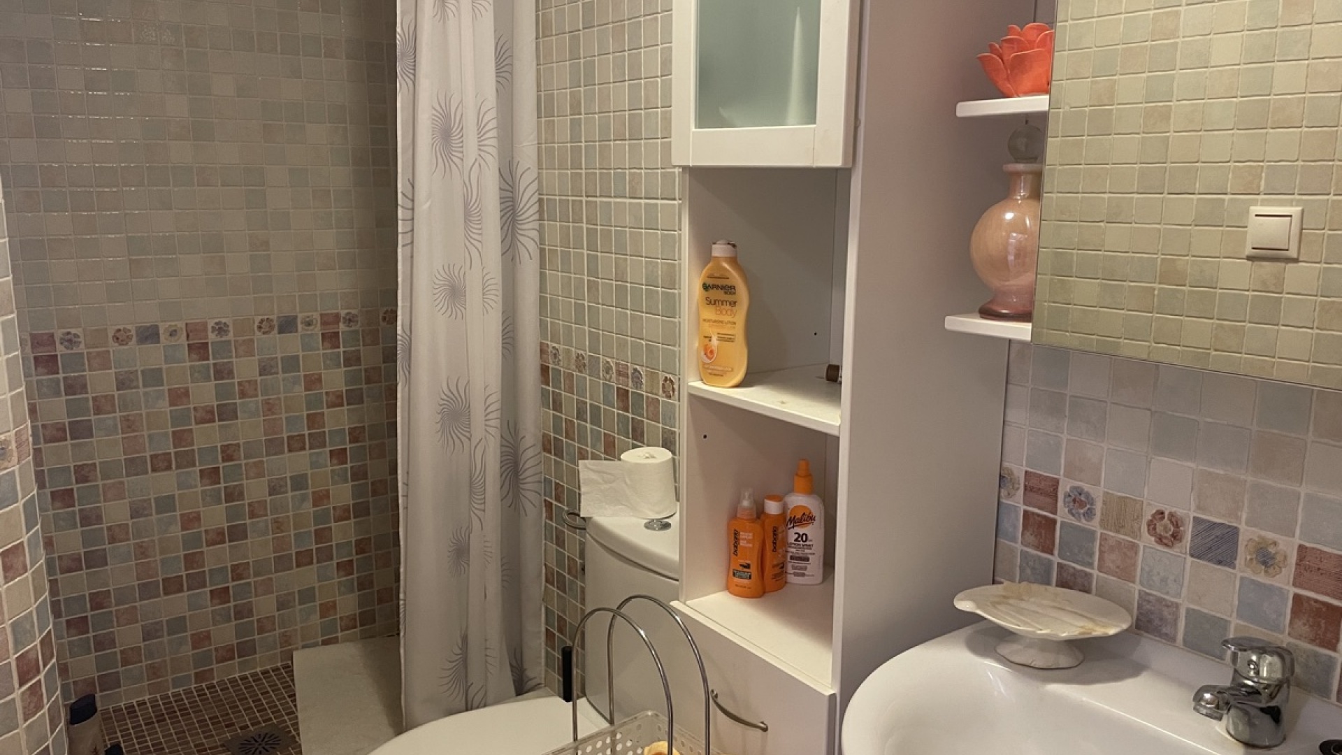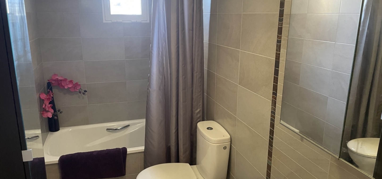 På bottenvåningen finns ett vardagsrum/matsal, ett fullt utrustat kök med öppen planlösning, separat tvättstuga, 1 x dubbelrum och 1 x duschrum.