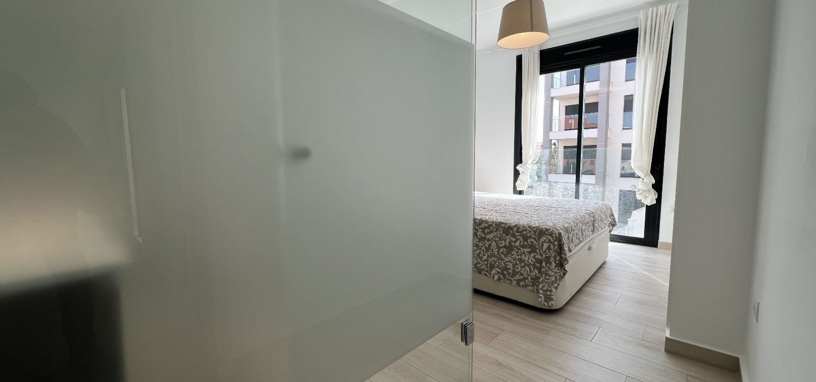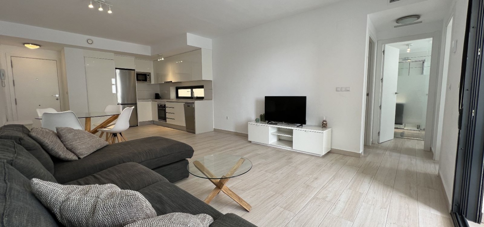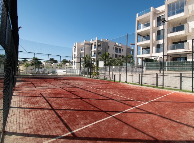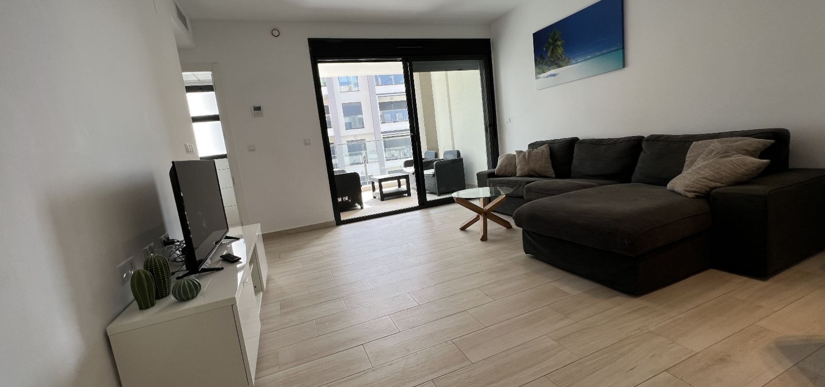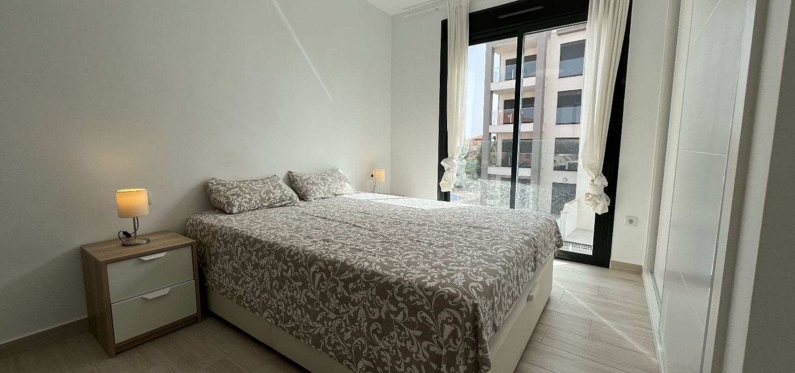 Ljust och luftigt vardagsrum/matrum med dörrar till balkongen, fullt utrustat kök i öppen planlösning, 1 x huvudsovrum med inbyggda garderober och ett eget duschrum, 1 x tvåbäddsrum, 1 x familjeduschrum, balkong, 2 x gemensam simning pooler, underjordisk parkeringsplats med hiss från parkeringen, tennisbana, en lekplats och mycket mycket mer.