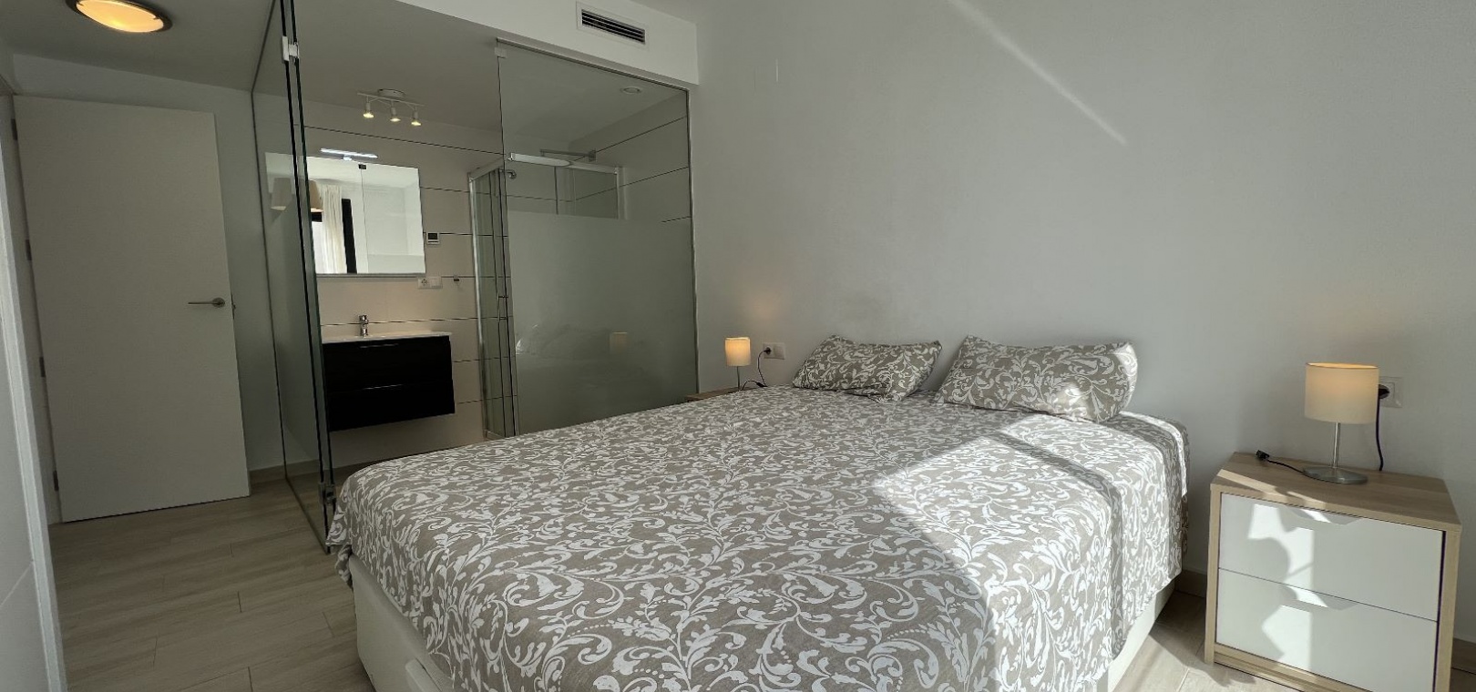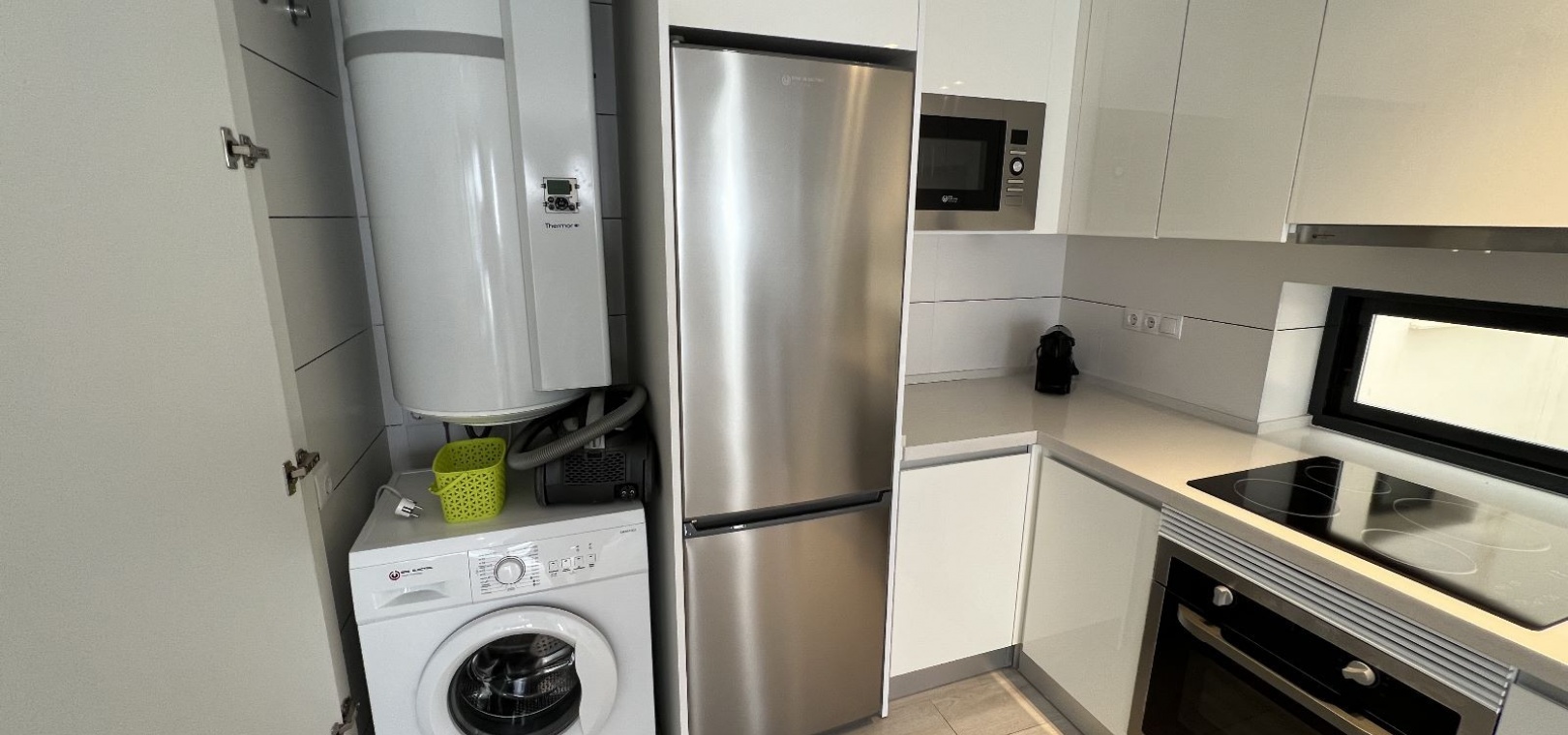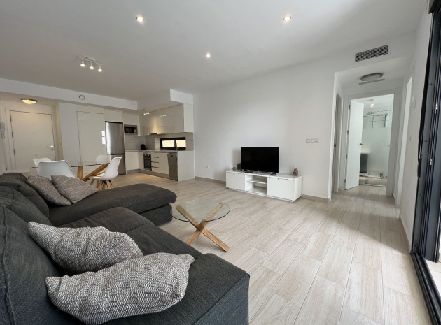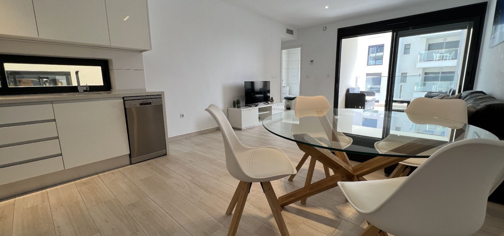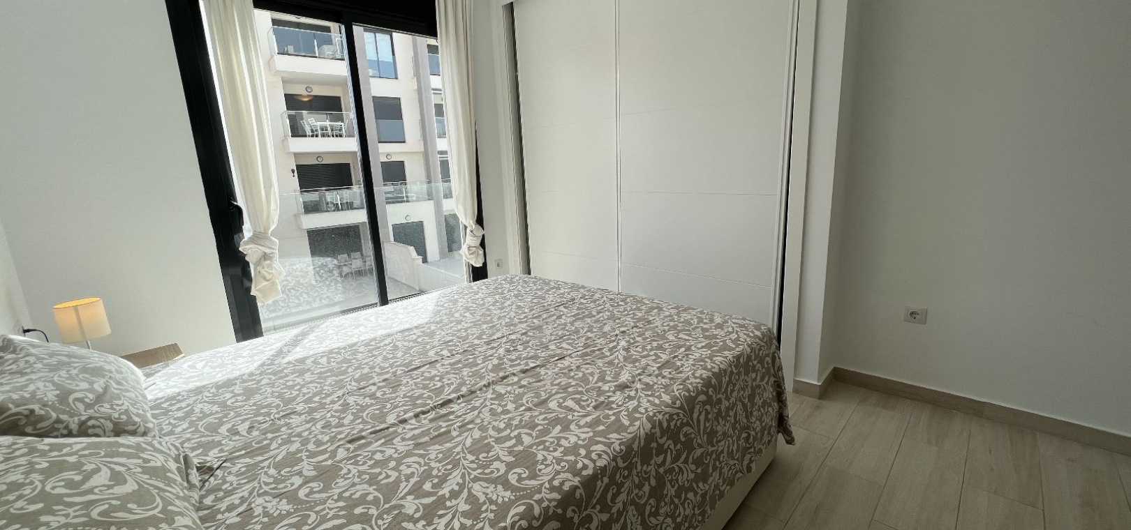 Ljust och luftigt vardagsrum/matrum med dörrar till balkongen, fullt utrustat kök i öppen planlösning, 1 x huvudsovrum med inbyggda garderober och ett eget duschrum, 1 x tvåbäddsrum, 1 x familjeduschrum, balkong, 2 x gemensam simning pooler, underjordisk parkeringsplats med hiss från parkeringen, tennisbana, en lekplats och mycket mycket mer.