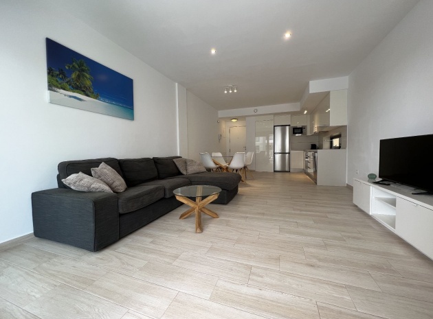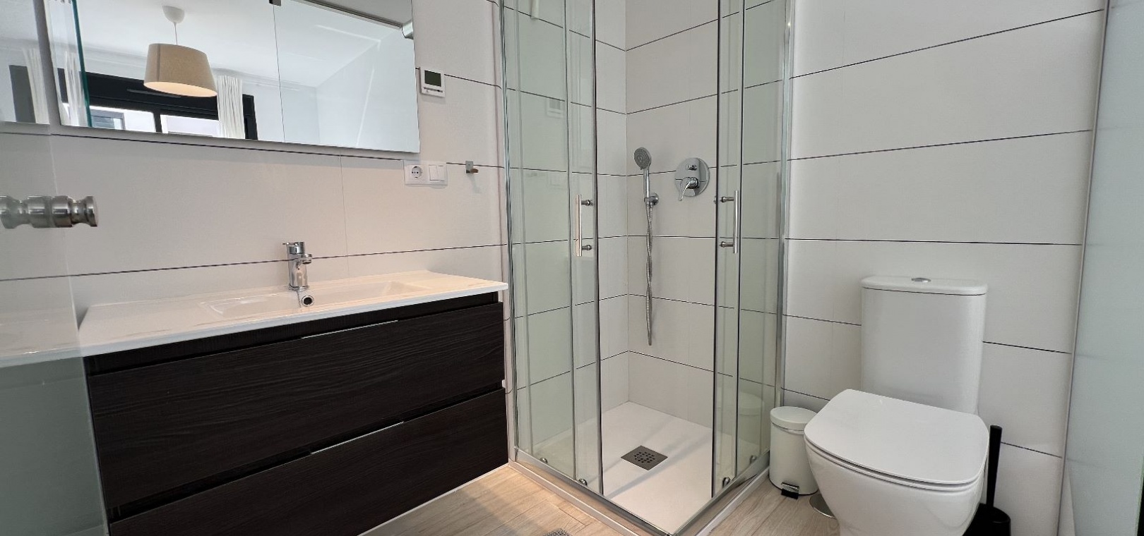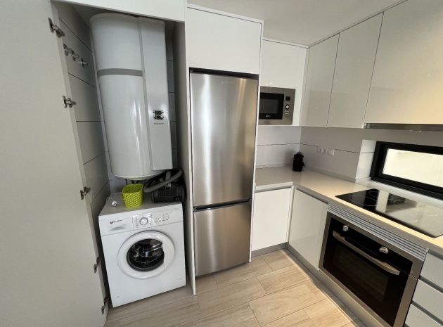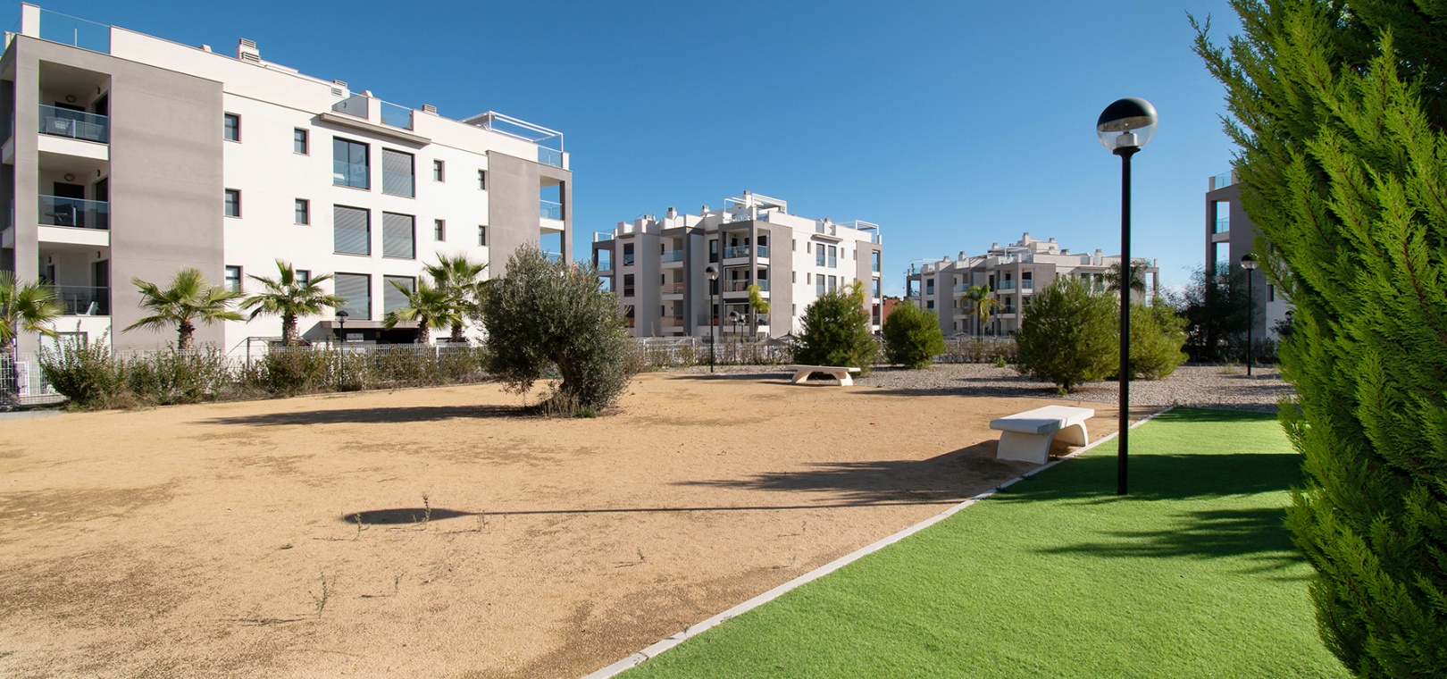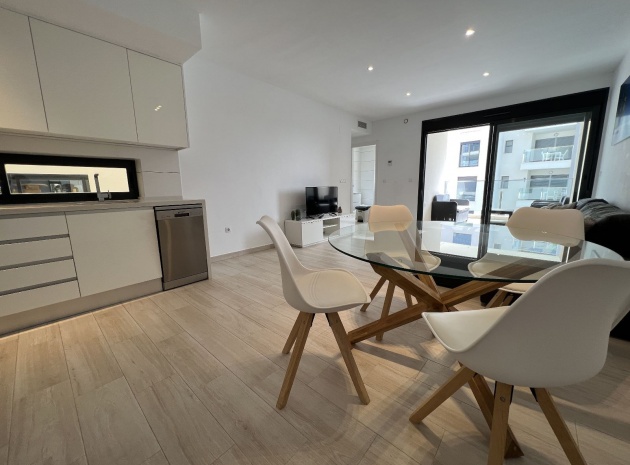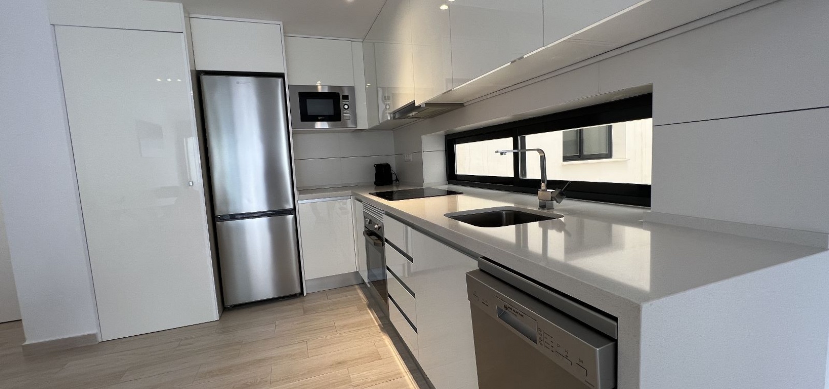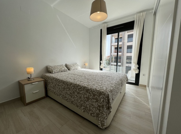 Ljust och luftigt vardagsrum/matrum med dörrar till balkongen, fullt utrustat kök i öppen planlösning, 1 x huvudsovrum med inbyggda garderober och ett eget duschrum, 1 x tvåbäddsrum, 1 x familjeduschrum, balkong, 2 x gemensam simning pooler, underjordisk parkeringsplats med hiss från parkeringen, tennisbana, en lekplats och mycket mycket mer.