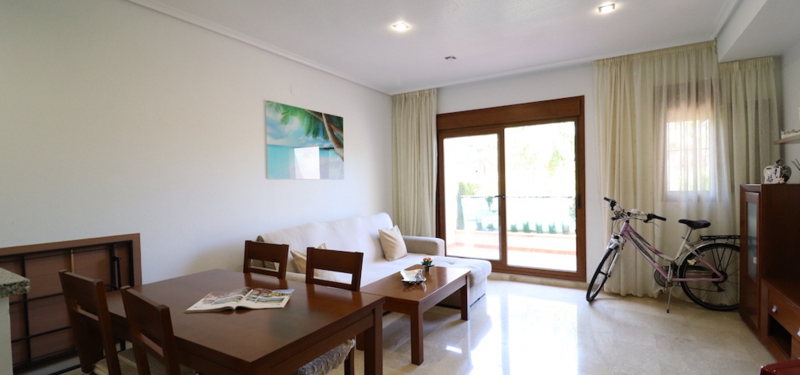 Denna härliga fastighet ligger bara några minuters promenad från klubbhuset och den nya restaurangen och mindre än 15 minuters promenad från La Fuentes kommersiella centrum där du hittar många barer och restauranger, snabbköp, apotek, banker, en taxistation och den lokala bussen sluta. De gyllene stränderna i Orihuela Costa ligger bara 5 minuters bilresa bort, liksom köpcentret Zenia Boulevard. Alicantes flygplats ligger 50 minuters bilresa bort.