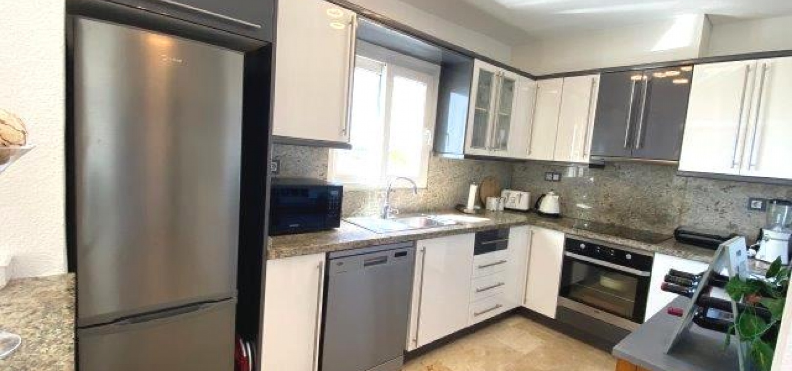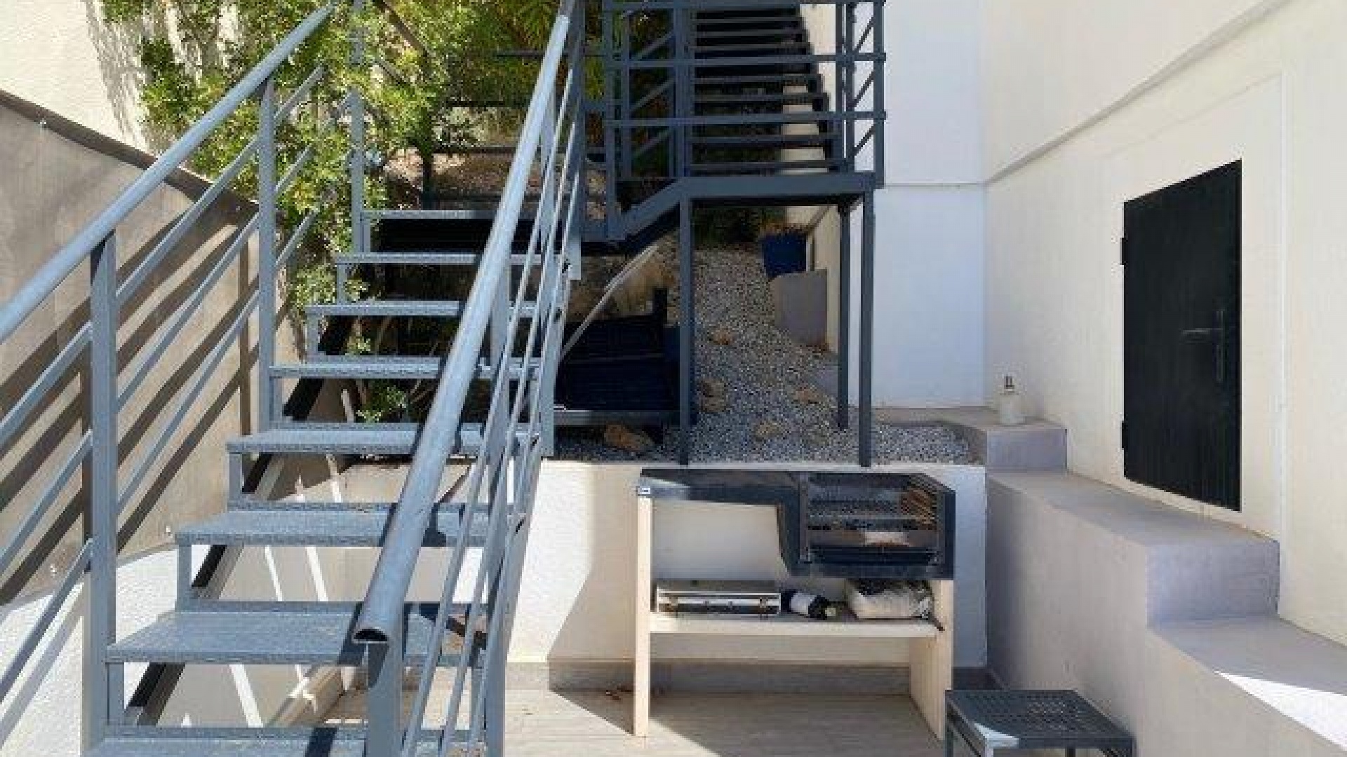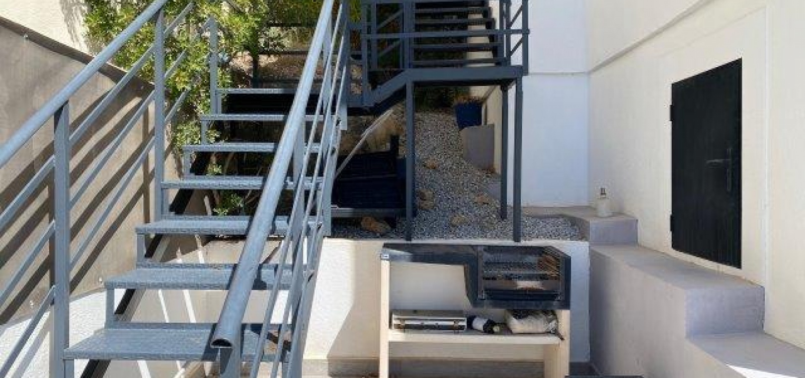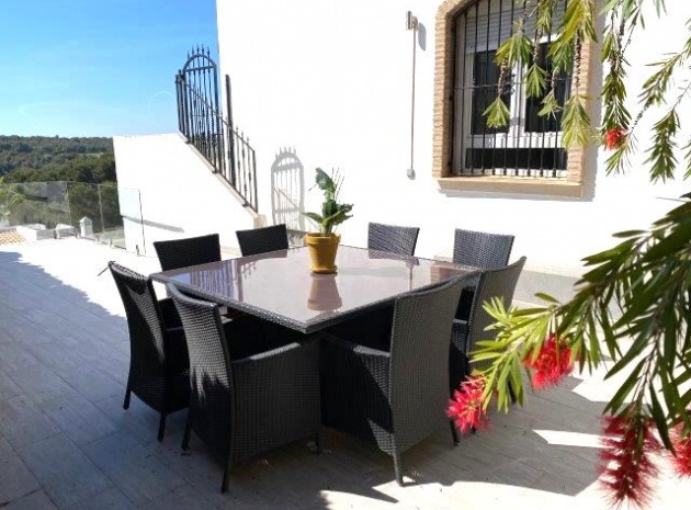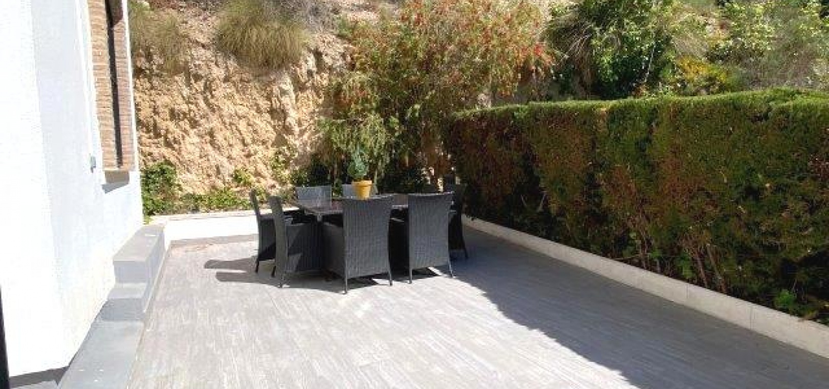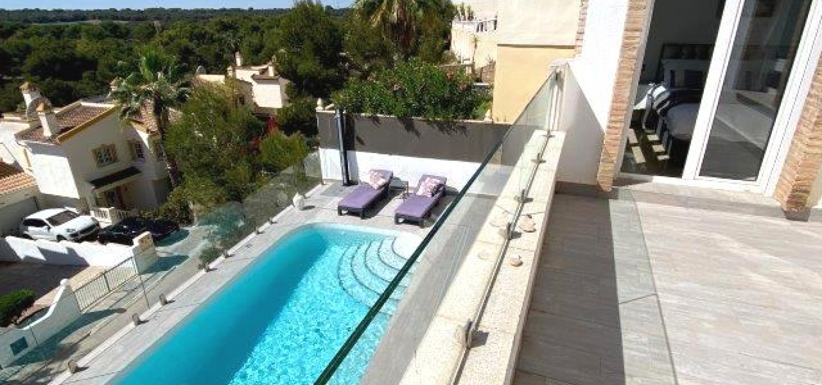 Utanför finns en privat pool i modern stil med glasvägg, massor av utrymme för sol/stolar och ytterligare en stor terrass perfekt för grillning och måltider utomhus. En stor del av den här fastigheten är utomhusköket med diskbänk och kylskåp, du behöver inte gå tillbaka till huset för att grilla eller en kall öl och ett glas vin!
