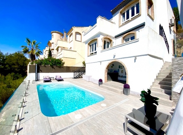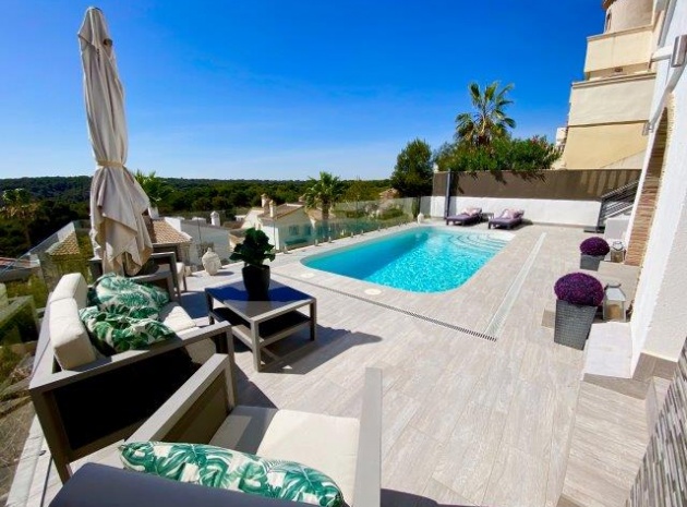 En fristående villa med 3 sovrum och 2,5 badrum med privat pool som ligger nära den vackra golfbanan Las Ramblas, Villamartin, Costa Blanca South.