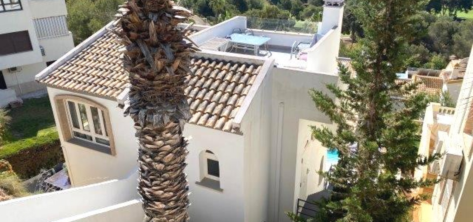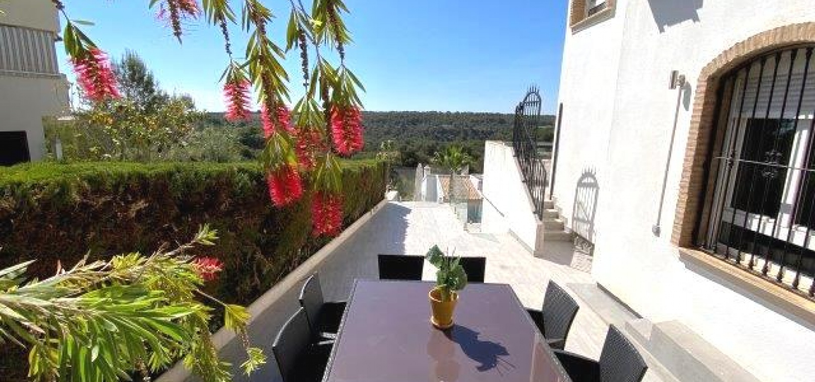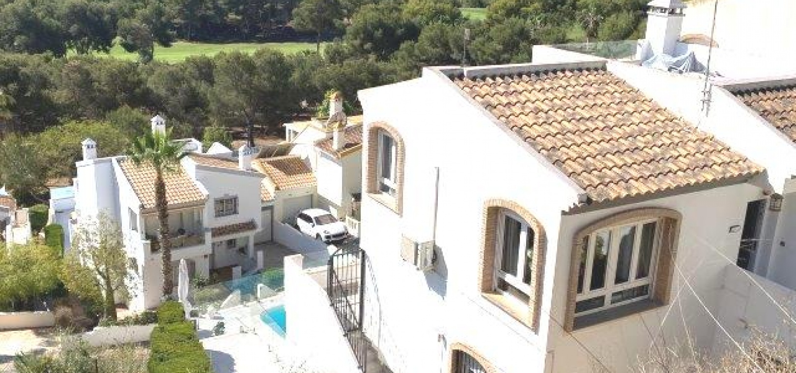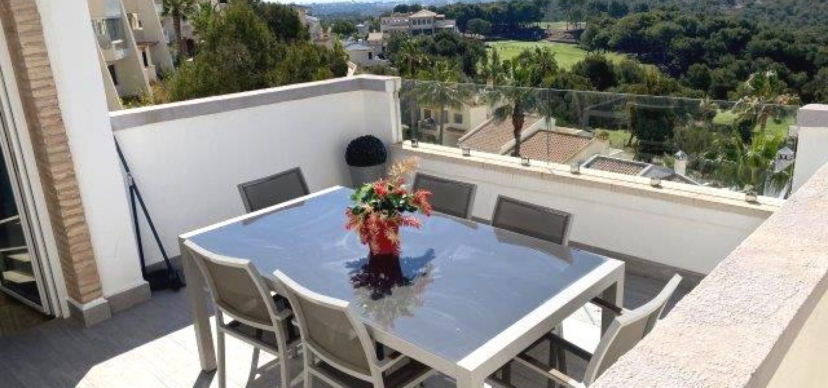 Fastigheten ligger på en förhöjd tomt med fantastisk utsikt till både golfbanan och ner till kusten. Det privata solariet på taket är det perfekta stället att koppla av och dra nytta av det fantastiska landskapet.