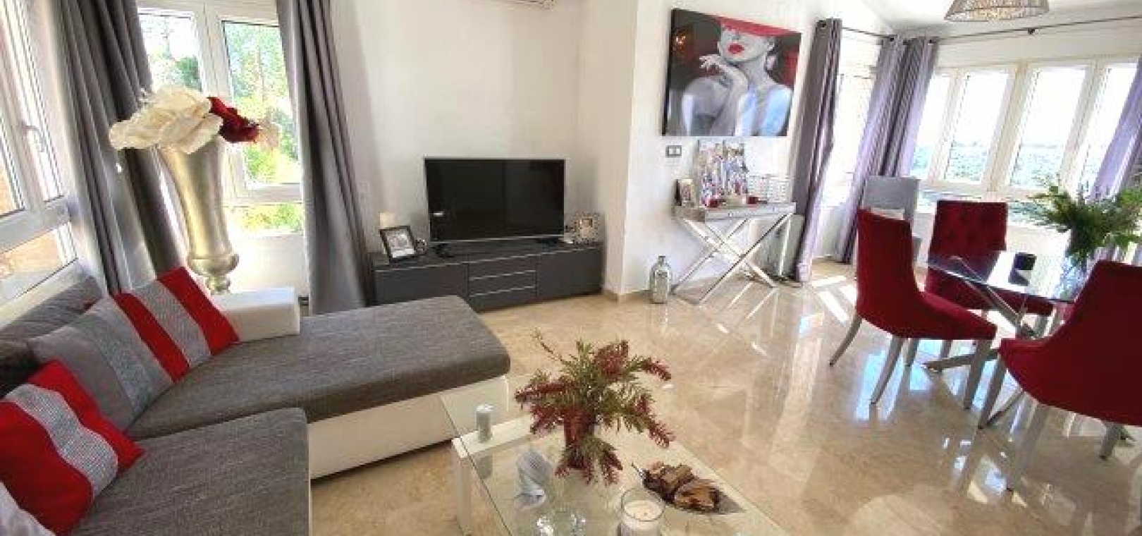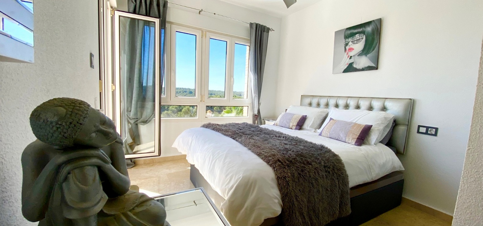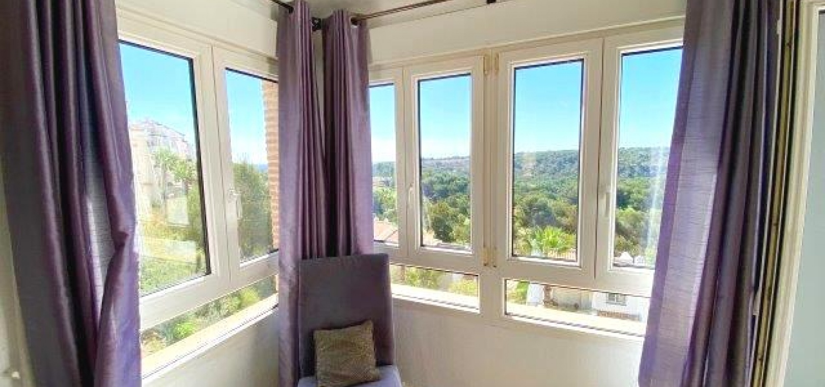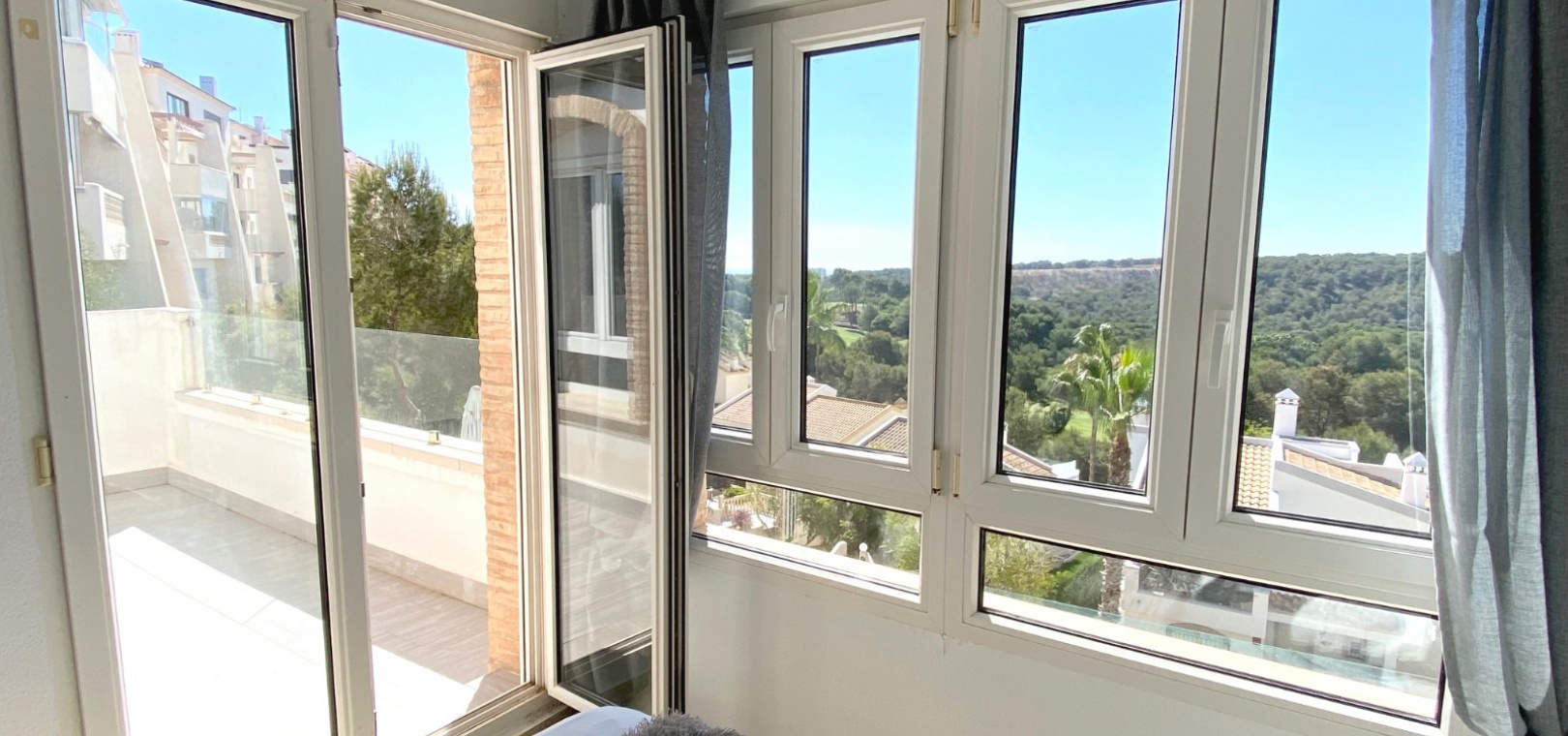 Fastigheten ligger på en förhöjd tomt med fantastisk utsikt till både golfbanan och ner till kusten. Det privata solariet på taket är det perfekta stället att koppla av och dra nytta av det fantastiska landskapet.