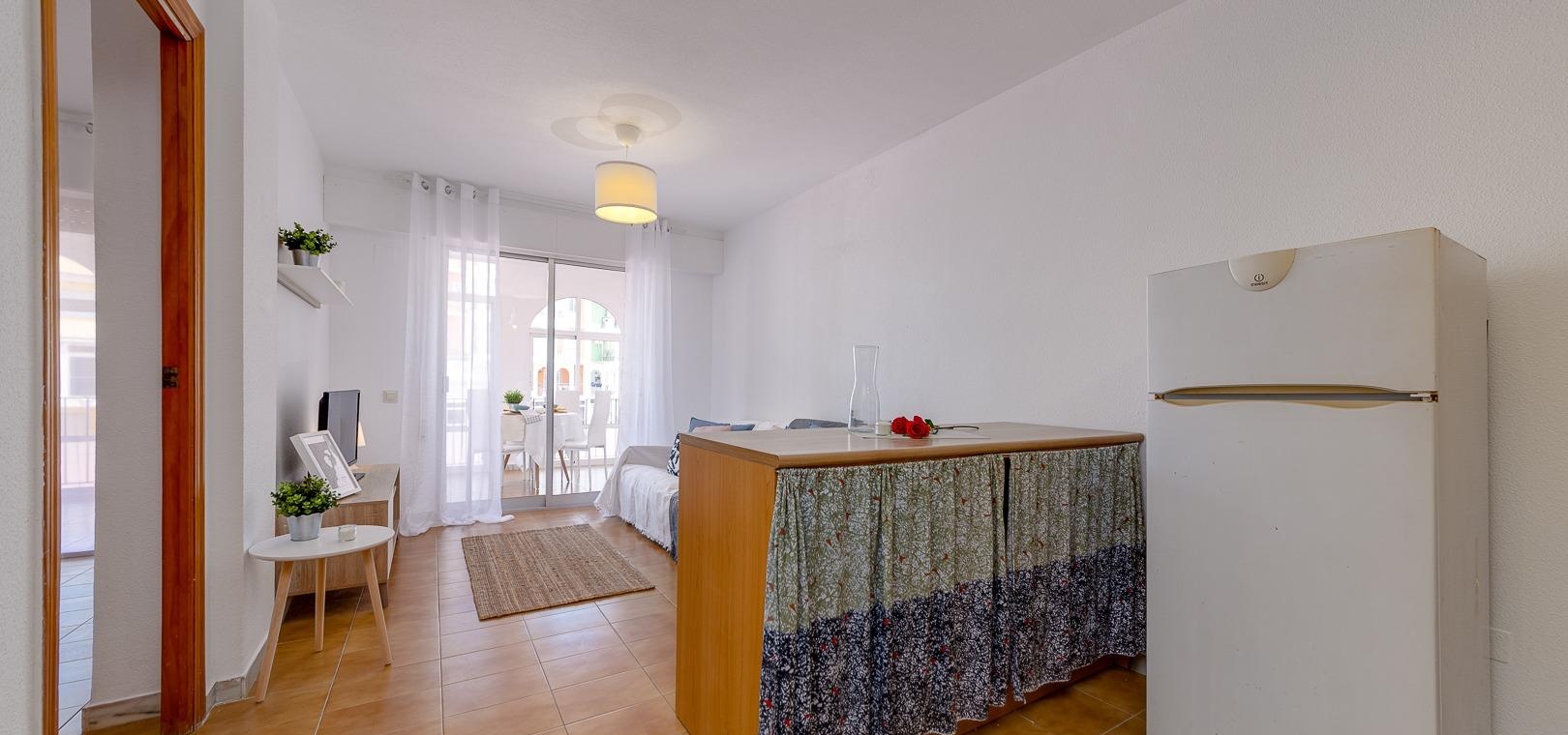 En 1 säng 1 badrum lägenhet på 1:a våningen bara 500 meter från stranden belägen i Mar Azul, Torrevieja, Costa Blanca South. Denna härliga fastighet bjuds ut till försäljning i gott skick och består mycket kortfattat av följande: - Lounge/matsal, kök i öppen planlösning, 1 x dubbelrum med inbyggd garderob, 1 x familjebadrum och en inglasad balkong med sidoutsikt över havet. Det finns ingen gemensam pool men det finns en bar/café på plats som har en egen pool som kan användas av ägarna på detta komplex. Det finns hiss till alla våningar. Denna fastighet ligger bara 150 meter från havet i Mar Azul. Lokala barer, butiker, restauranger och 2 x stormarknader ligger alla inom gångavstånd. Alicantes flygplats ligger cirka 45 minuters bilresa bort. Denna fastighet har utmärkta uthyrningspotential.