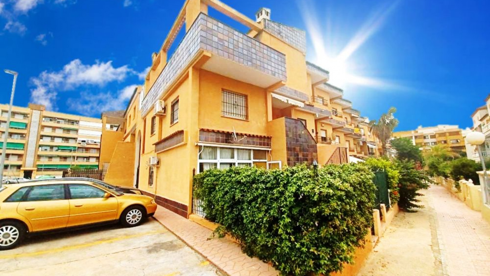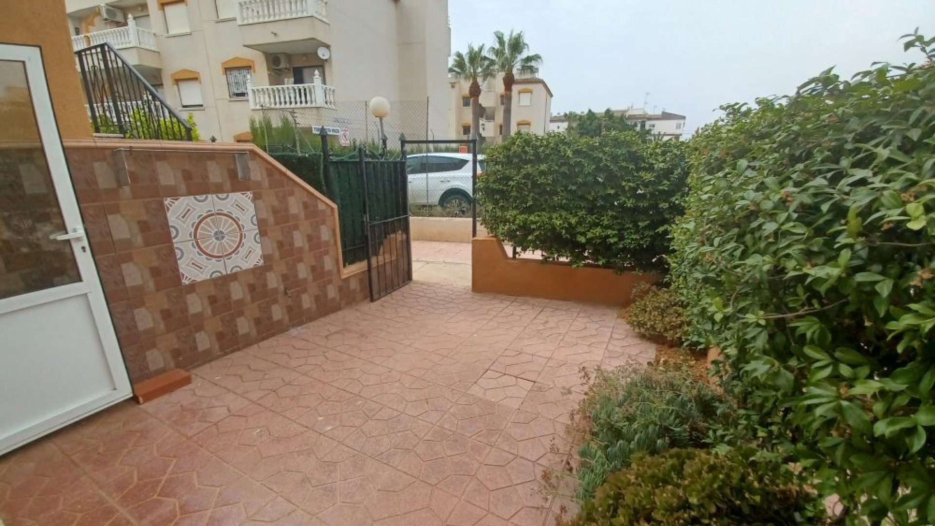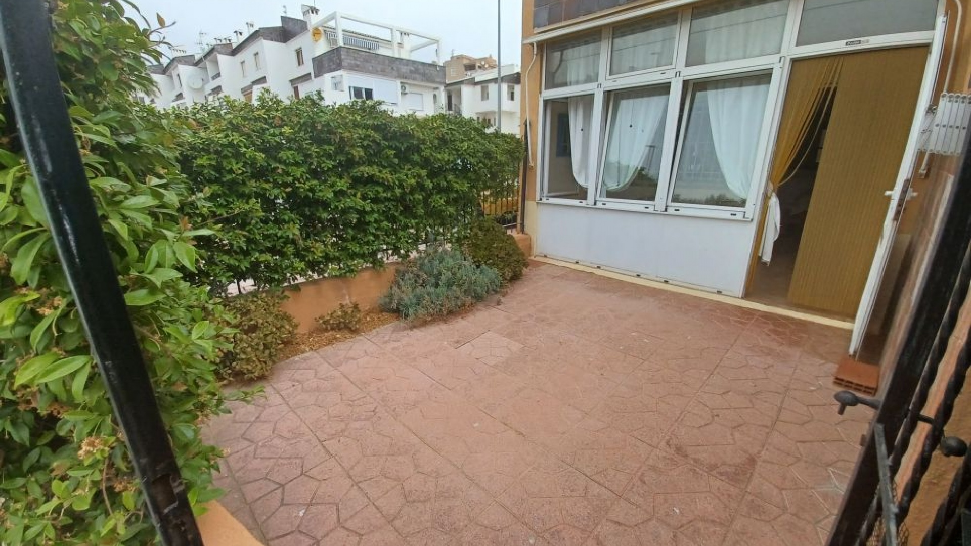 En söderläge hörnlägenhet med 2 sovrum och 1 badrum på bottenvåningen bara 300 m från havet belägen i Punta Prima, Costa Blanca. Denna härliga lägenhet säljs i gott skick, fullt möblerad och består mycket kortfattat av följande: - Lounge / matsal med en öppen spis och varm och kall A/C, kök med öppen planlösning, separat tvättstuga, 2 x dubbelrum med inbyggda garderober, 1 x familjebadrum, inglasad terrass på framsidan, trädgård på framsidan, gemensam pool och mycket mer. Denna fantastiska fastighet ligger mindre än 10 minuters promenad från Punta Marinas kommersiella centrum där du hittar många barer, butiker och restauranger och sedan är det bara 300 meter till stranden. Denna fastighet ligger 10 minuters bilresa från 4 mästerskapsgolfbanor och 45 minuter från Alicantes flygplats.