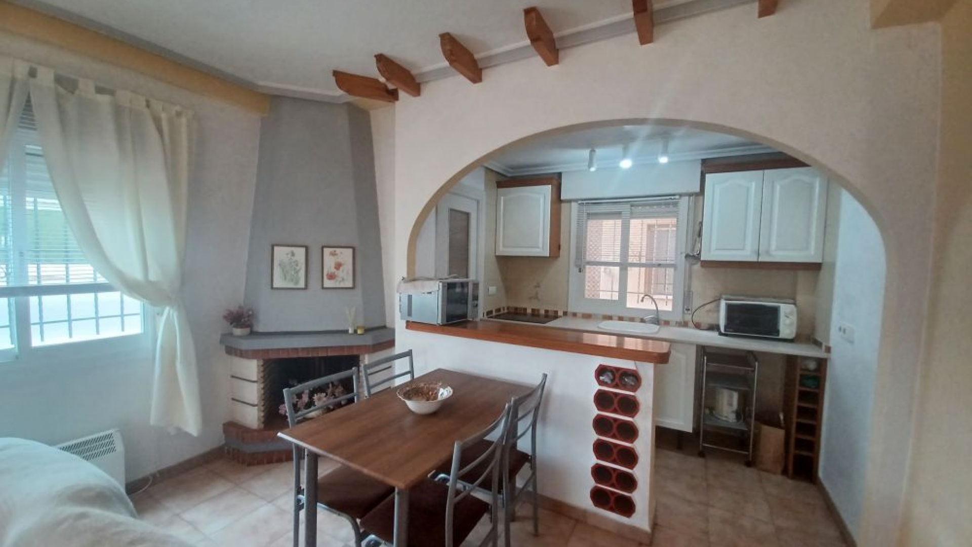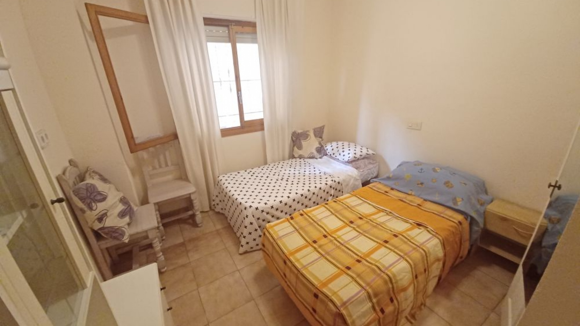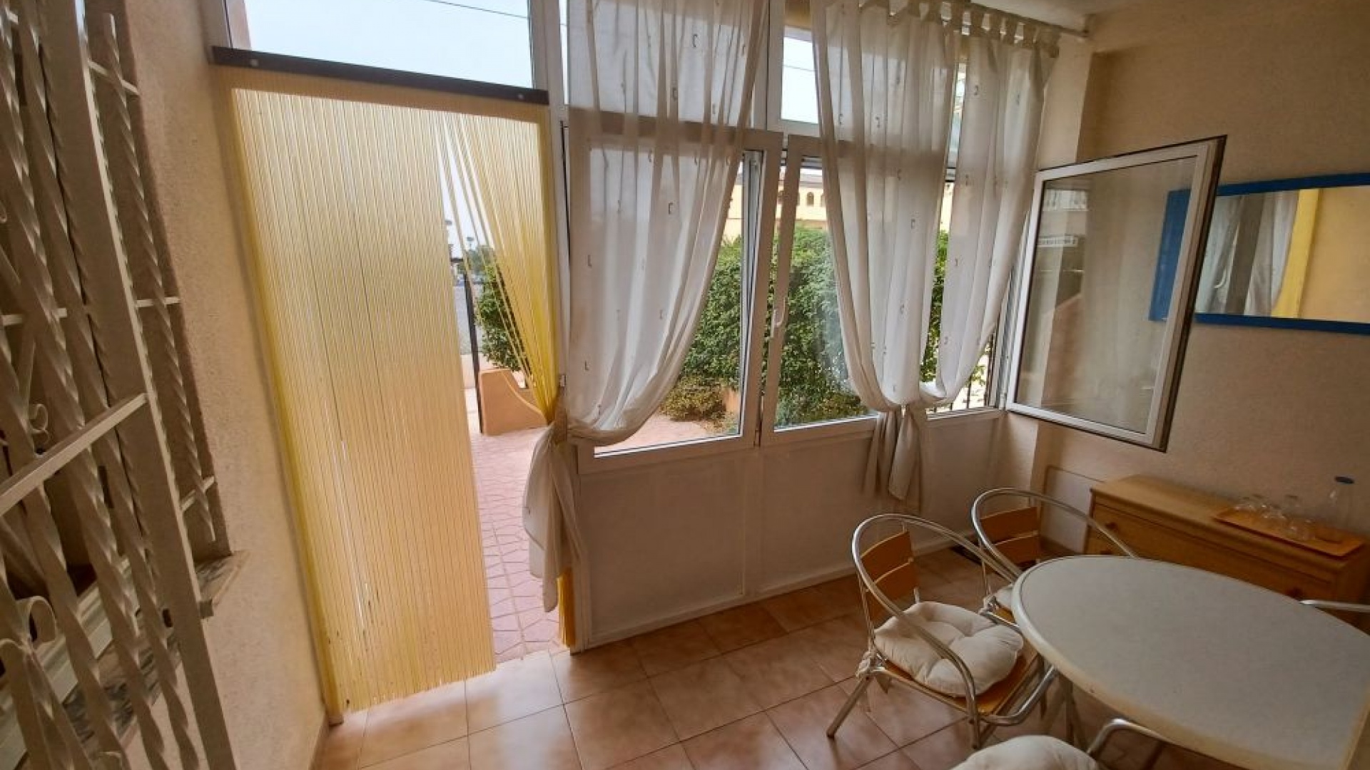 En söderläge hörnlägenhet med 2 sovrum och 1 badrum på bottenvåningen bara 300 m från havet belägen i Punta Prima, Costa Blanca. Denna härliga lägenhet säljs i gott skick, fullt möblerad och består mycket kortfattat av följande: - Lounge / matsal med en öppen spis och varm och kall A/C, kök med öppen planlösning, separat tvättstuga, 2 x dubbelrum med inbyggda garderober, 1 x familjebadrum, inglasad terrass på framsidan, trädgård på framsidan, gemensam pool och mycket mer. Denna fantastiska fastighet ligger mindre än 10 minuters promenad från Punta Marinas kommersiella centrum där du hittar många barer, butiker och restauranger och sedan är det bara 300 meter till stranden. Denna fastighet ligger 10 minuters bilresa från 4 mästerskapsgolfbanor och 45 minuter från Alicantes flygplats.