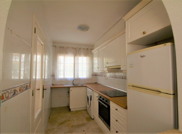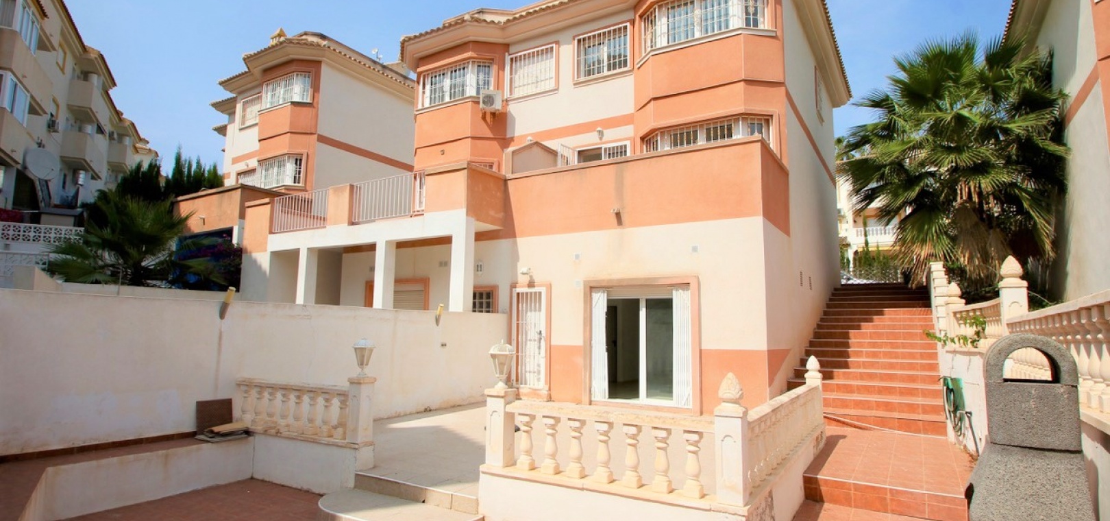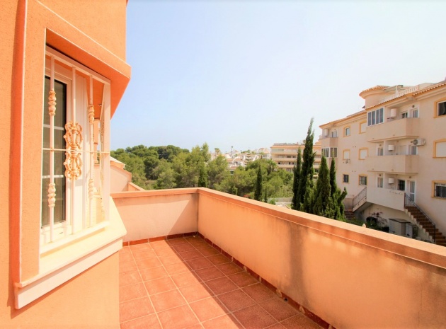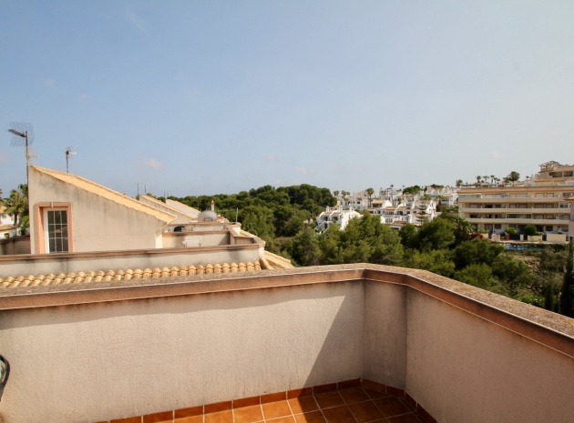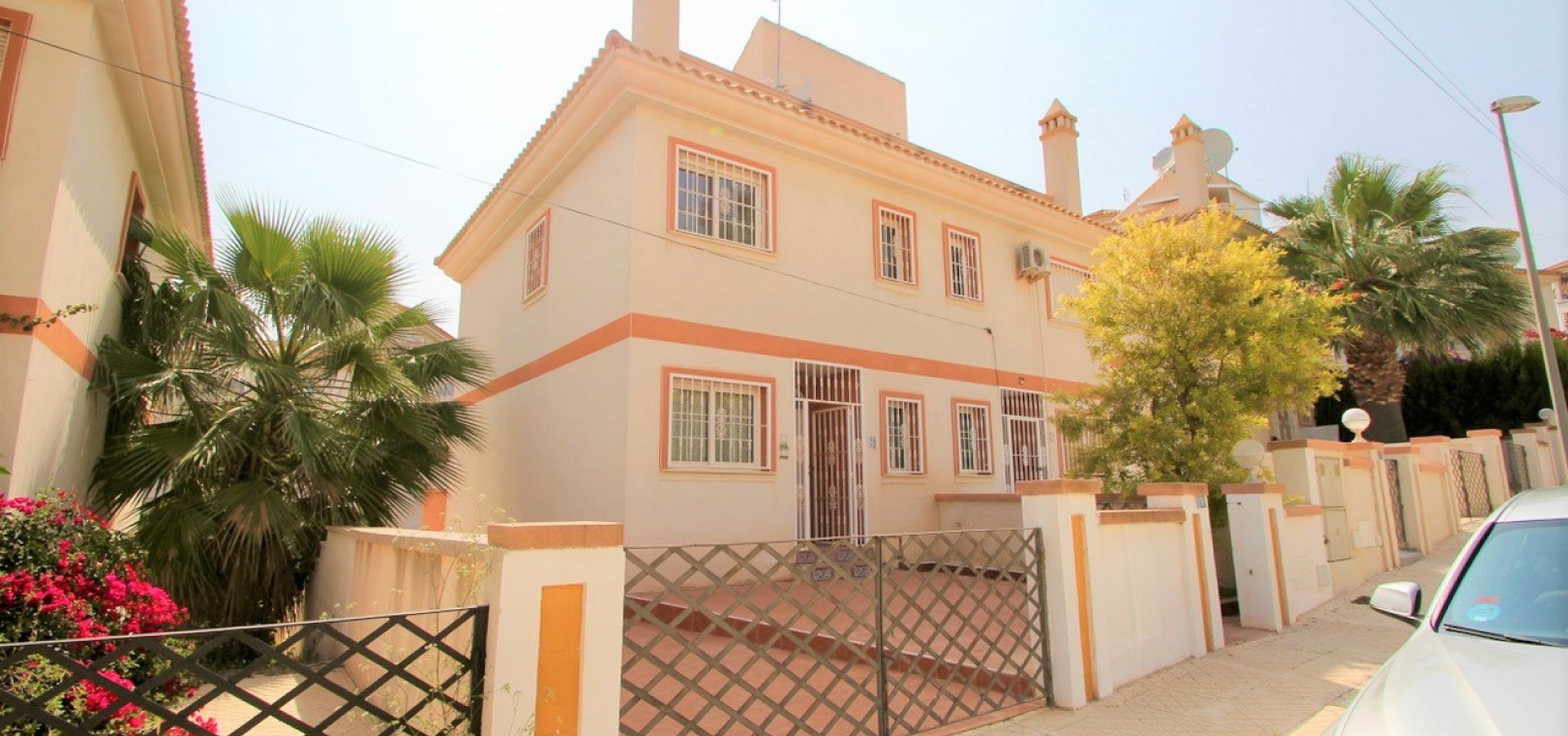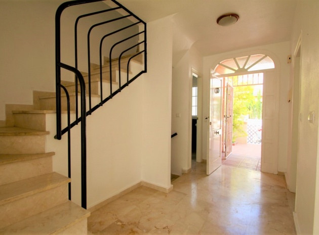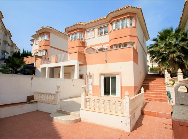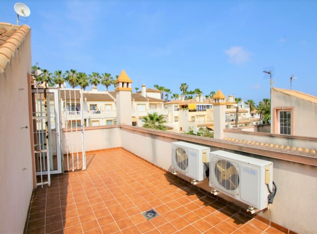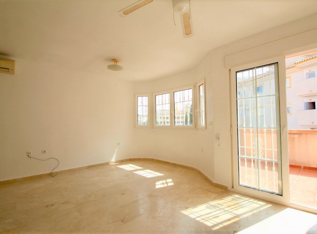 Ett parhus med 3 sovrum och 2,5 badrum beläget i Villamartin, Costa Blanca. Denna härliga fastighet säljs i mycket gott skick, säljs omöblerad och består mycket kortfattat av följande:- På bottenvåningen finns ett vardagsrum/matrum med takfläktar, öppen planlösning fullt utrustat kök & 1 x W/C. På 1:a våningen finns 2 x dubbelrum med inbyggda garderober och 1 x duschrum. Det finns också en underbyggnad och ägaren har omvandlat detta utrymme till ett stort beboeligt rum med en invändig trappa som leder upp till husets bottenvåning. Utanför finns en fram- och sidoträdgård med en uppfart för terrängparkering, stor trädgård på baksidan, balkong på första våningen, privat takterrass, gemensam pool och mycket mer. Denna fastighet ligger bara en kort promenad till alla bekvämligheter, 5 minuter med bil till stranden La Zenia eller så kan du hoppa på lokalbussen, Mindre än 5 minuter med bil till 4 golfbanor. 50 minuter till Alicantes flygplats.