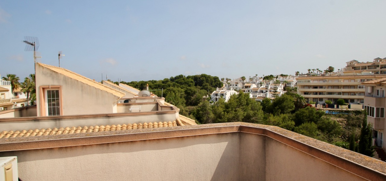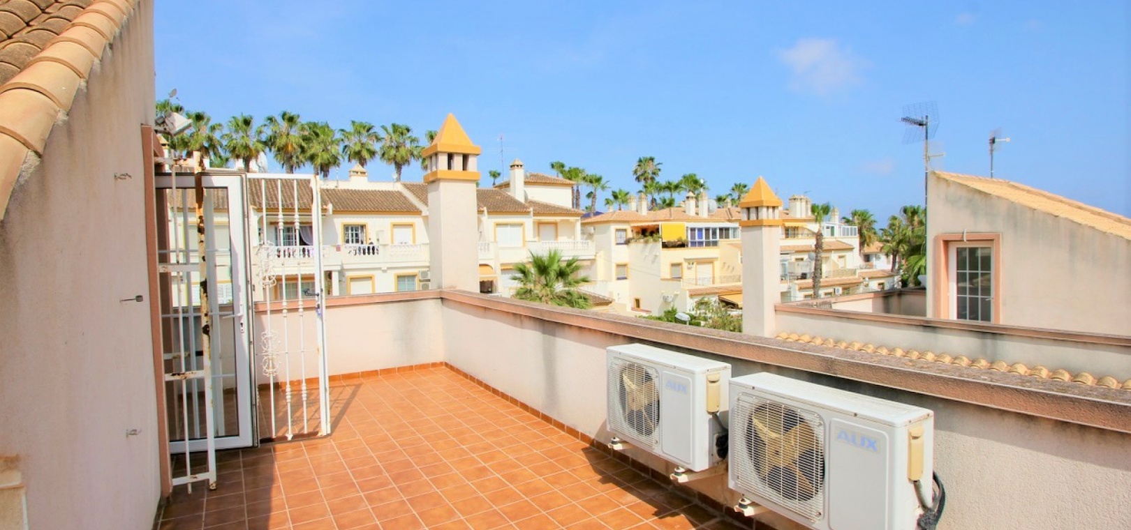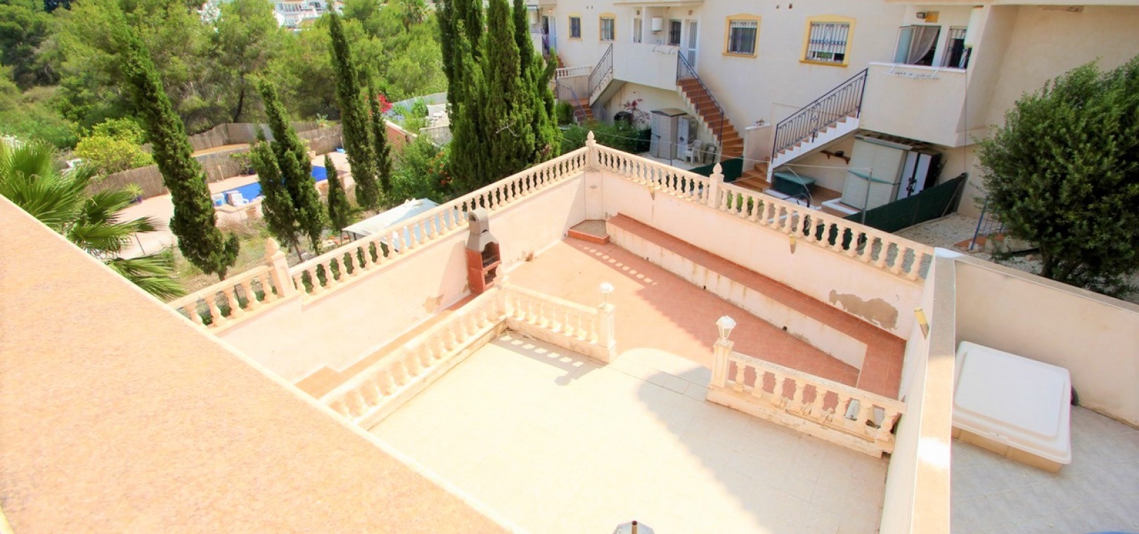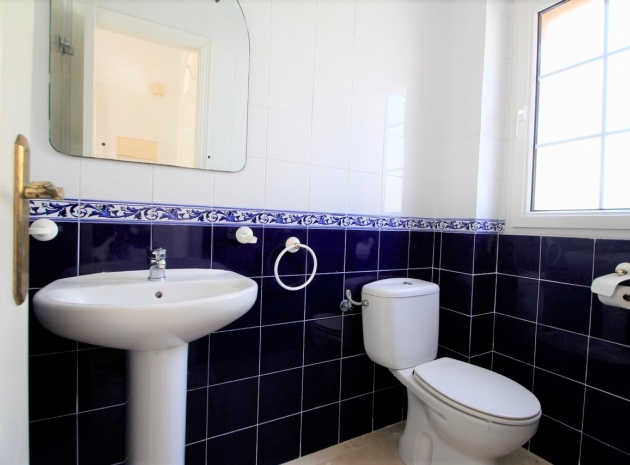 Ett parhus med 3 sovrum och 2,5 badrum beläget i Villamartin, Costa Blanca. Denna härliga fastighet säljs i mycket gott skick, säljs omöblerad och består mycket kortfattat av följande:- På bottenvåningen finns ett vardagsrum/matrum med takfläktar, öppen planlösning fullt utrustat kök & 1 x W/C. På 1:a våningen finns 2 x dubbelrum med inbyggda garderober och 1 x duschrum. Det finns också en underbyggnad och ägaren har omvandlat detta utrymme till ett stort beboeligt rum med en invändig trappa som leder upp till husets bottenvåning. Utanför finns en fram- och sidoträdgård med en uppfart för terrängparkering, stor trädgård på baksidan, balkong på första våningen, privat takterrass, gemensam pool och mycket mer. Denna fastighet ligger bara en kort promenad till alla bekvämligheter, 5 minuter med bil till stranden La Zenia eller så kan du hoppa på lokalbussen, Mindre än 5 minuter med bil till 4 golfbanor. 50 minuter till Alicantes flygplats.