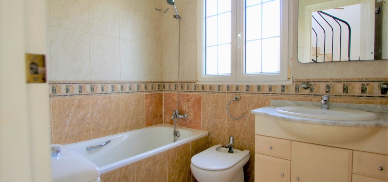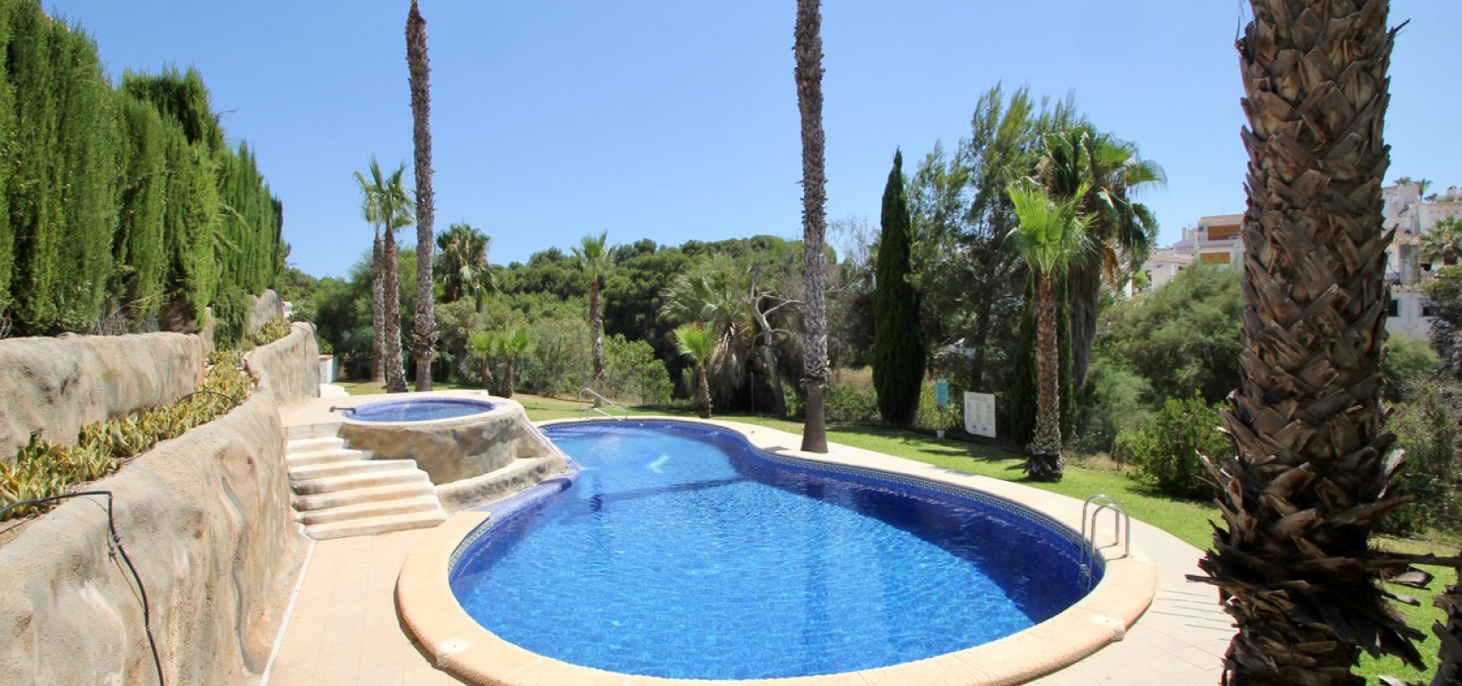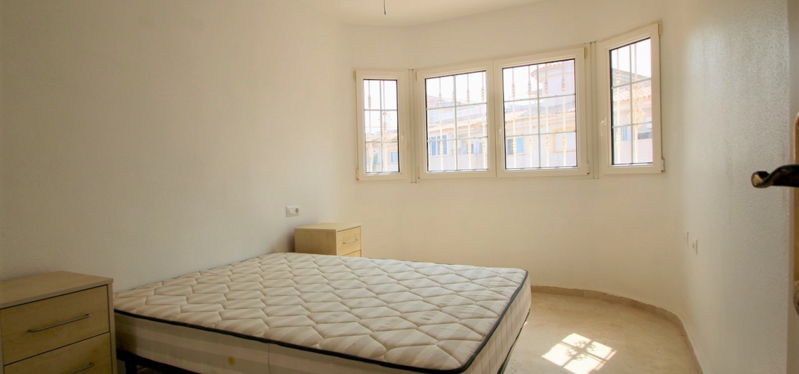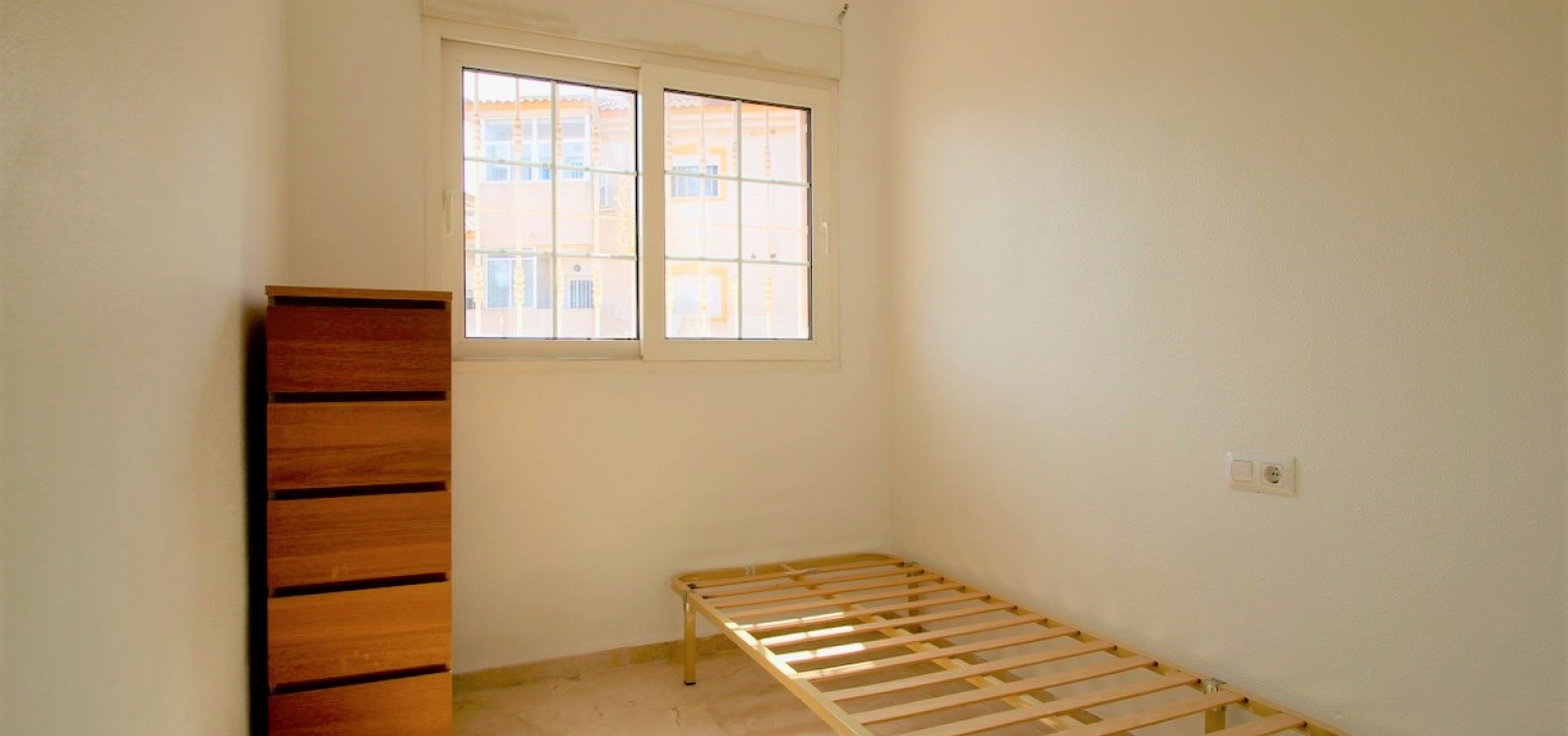 Ett parhus med 3 sovrum och 2,5 badrum beläget i Villamartin, Costa Blanca. Denna härliga fastighet säljs i mycket gott skick, säljs omöblerad och består mycket kortfattat av följande:- På bottenvåningen finns ett vardagsrum/matrum med takfläktar, öppen planlösning fullt utrustat kök & 1 x W/C. På 1:a våningen finns 2 x dubbelrum med inbyggda garderober och 1 x duschrum. Det finns också en underbyggnad och ägaren har omvandlat detta utrymme till ett stort beboeligt rum med en invändig trappa som leder upp till husets bottenvåning. Utanför finns en fram- och sidoträdgård med en uppfart för terrängparkering, stor trädgård på baksidan, balkong på första våningen, privat takterrass, gemensam pool och mycket mer. Denna fastighet ligger bara en kort promenad till alla bekvämligheter, 5 minuter med bil till stranden La Zenia eller så kan du hoppa på lokalbussen, Mindre än 5 minuter med bil till 4 golfbanor. 50 minuter till Alicantes flygplats.