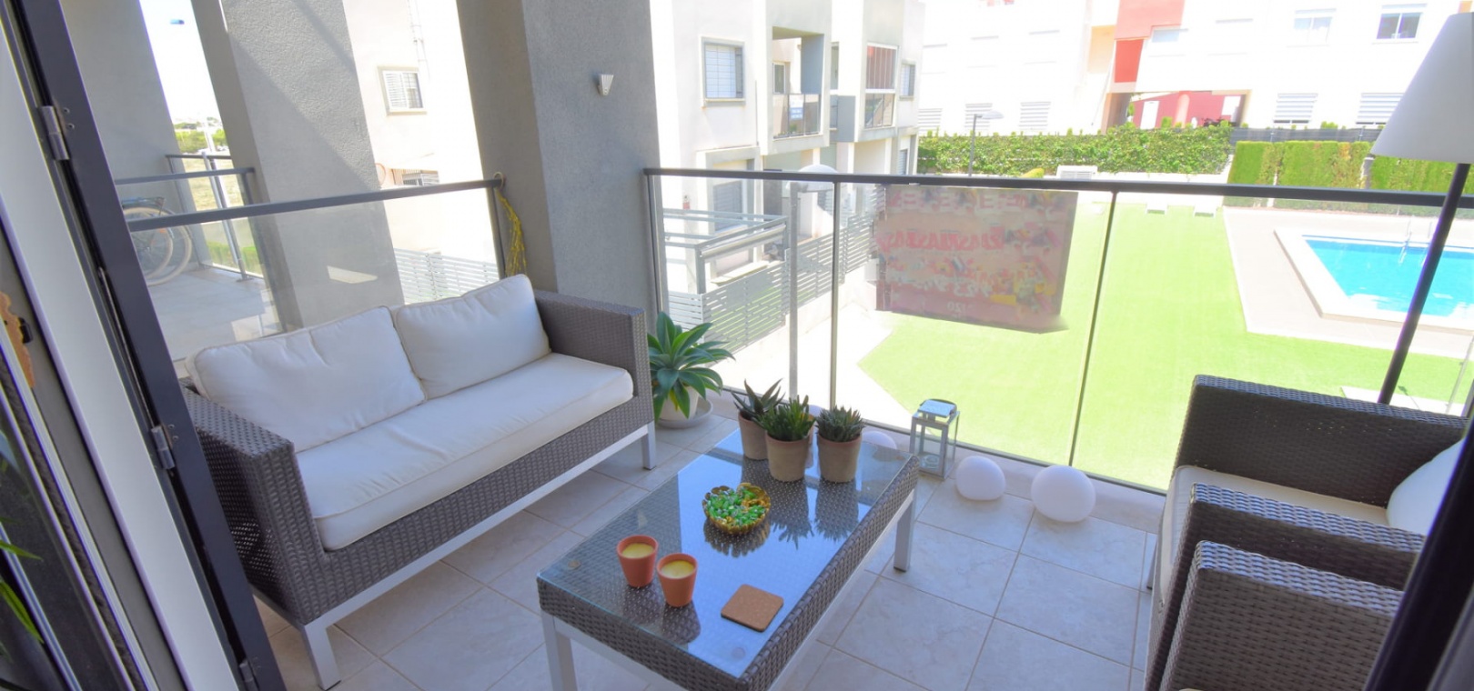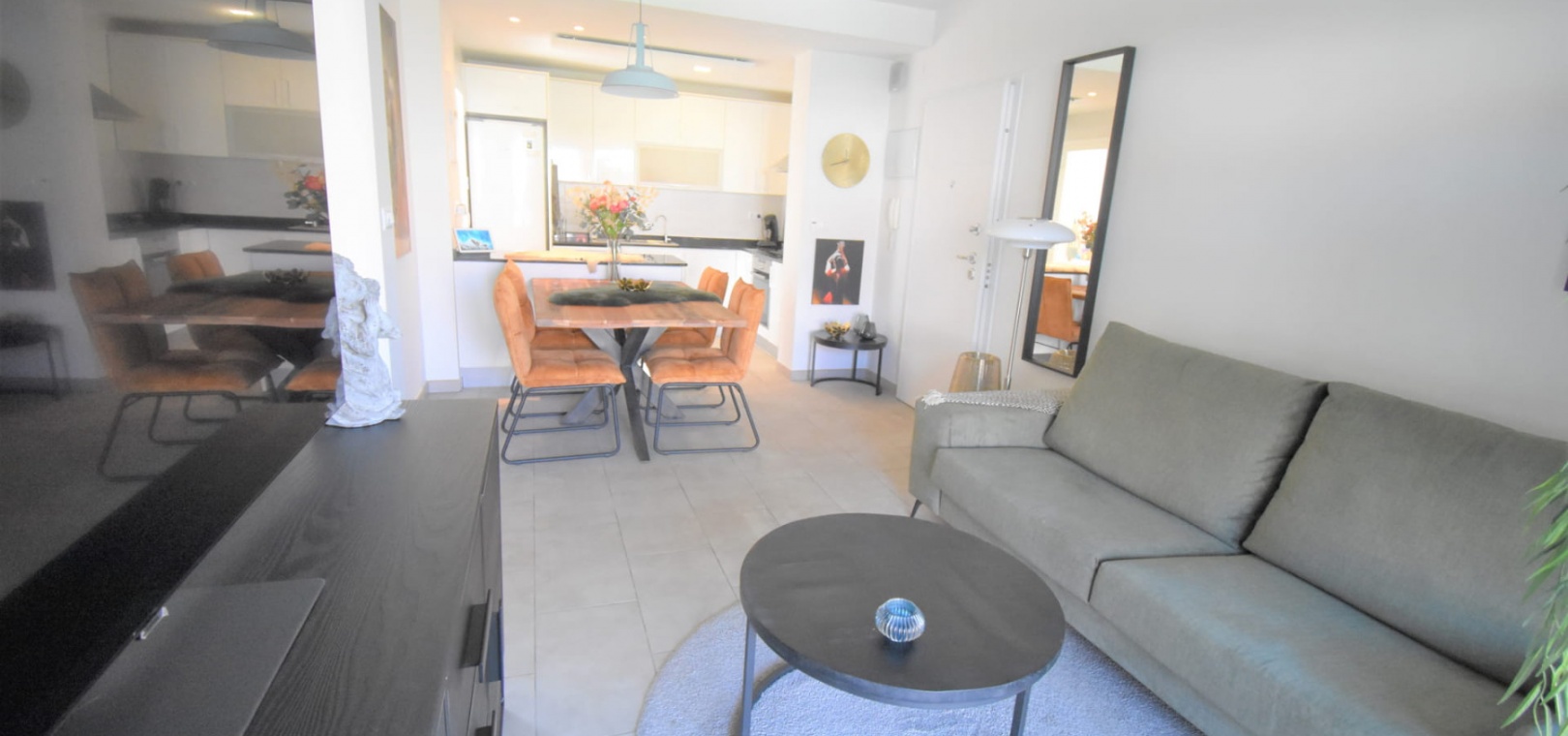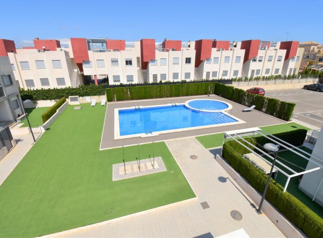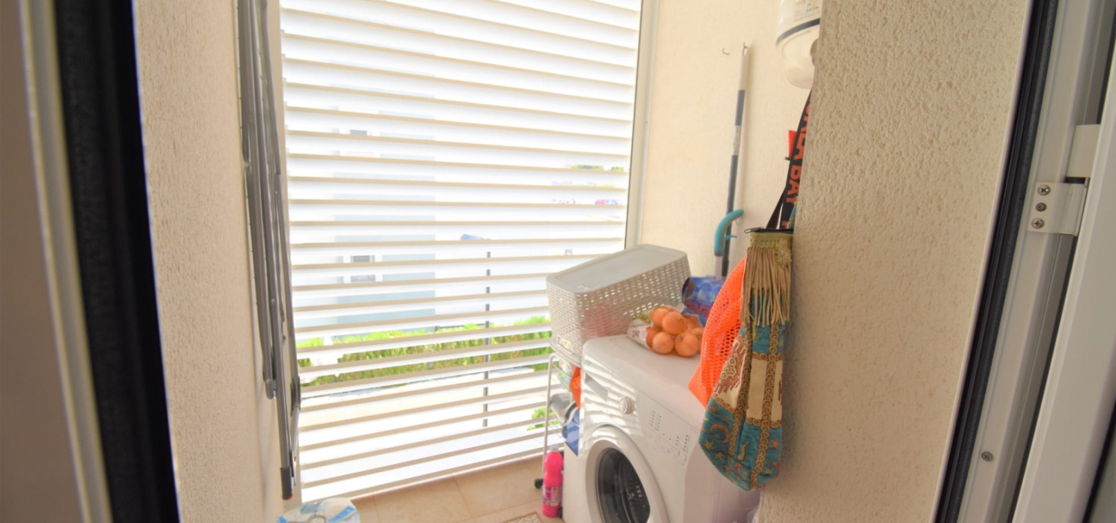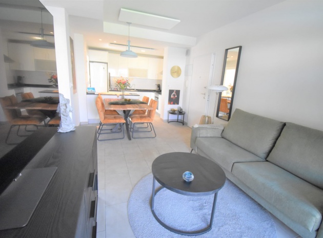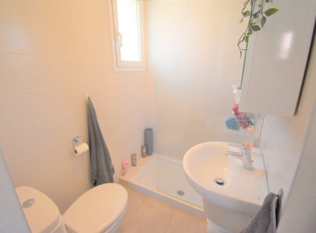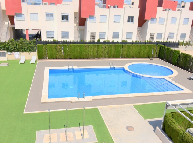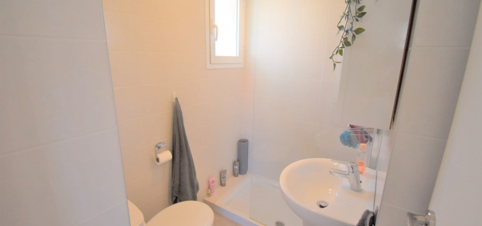 En lägenhet med 2 sovrum och 2 badrum på översta våningen med ett privat takterrass i Residencial Aqua, Aguas Nuevas, Torrevieja, Costa Blanca. Denna fastighet säljs i mycket gott skick, säljs möblerad och består mycket kortfattat av följande: - vardagsrum/matsal, fullt utrustat kök med öppen planlösning, separat tvättstuga, 2 x dubbelrum med inbyggda garderober, det största sovrummet har ett badrum svit duschrum, 1 x gästduschrum, balkong utanför loungen, privat takterrass, utsikt över den gemensamma poolen och trädgårdarna, säker gated community och mycket mer. Några extra tillbehör är toppmoderna exklusiva möbler, vitvaror och varm- och kallkanalig A/C. Lokala barer, restauranger och stormarknader ligger mycket nära fastigheten och det är cirka fem minuters bilresa till havet. Köpcentret Habaneras och Carrefour ligger mindre än 10 minuters bilresa bort och det går regelbunden busstrafik till centrala Torrevieja och La Mata. Alicantes flygplats ligger cirka 40 minuters bilresa bort.