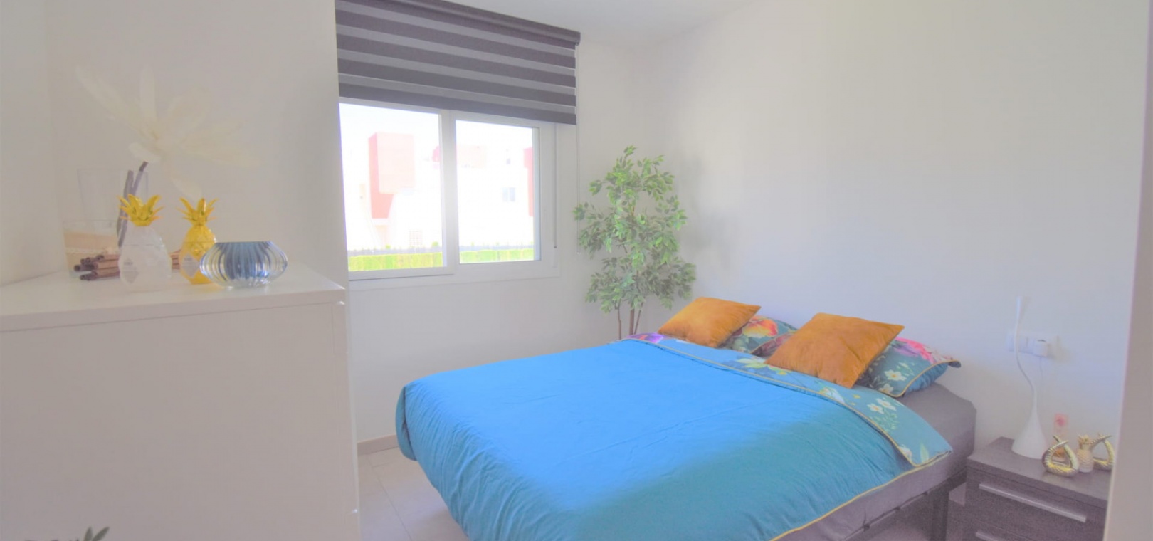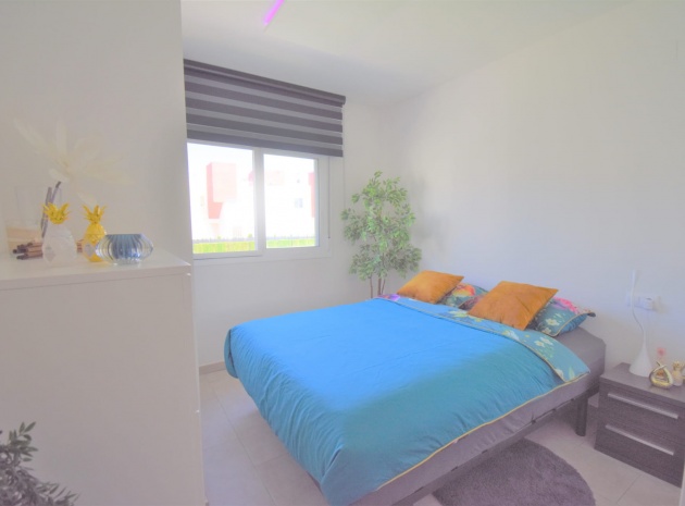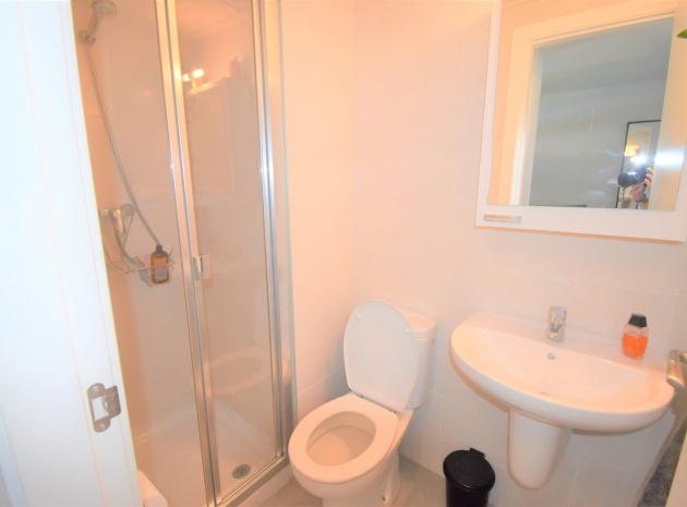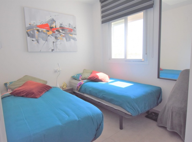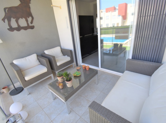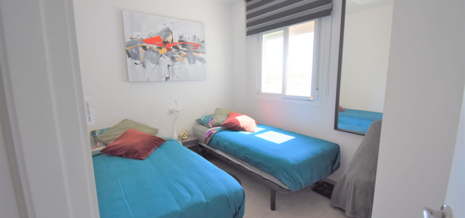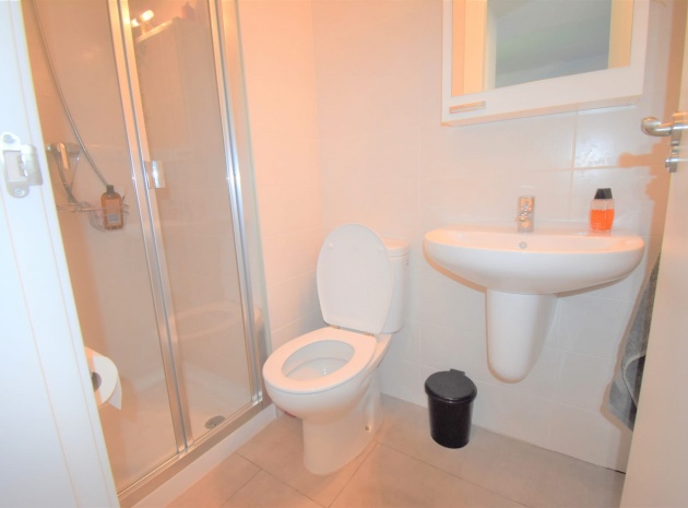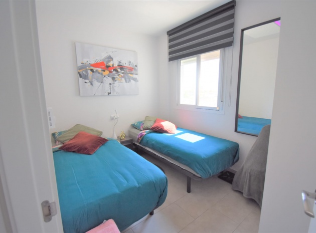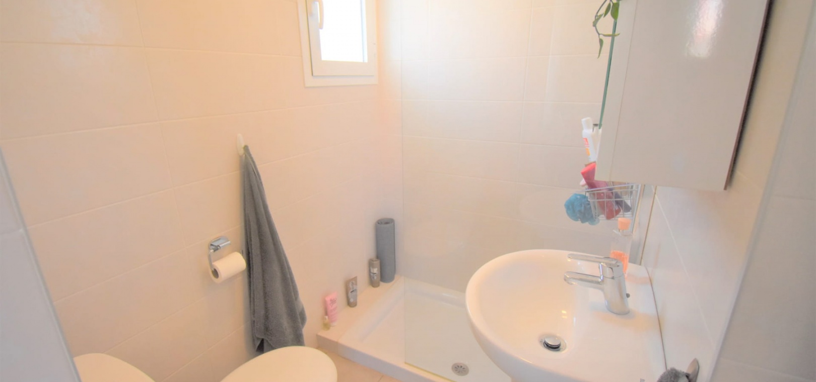 En lägenhet med 2 sovrum och 2 badrum på översta våningen med ett privat takterrass i Residencial Aqua, Aguas Nuevas, Torrevieja, Costa Blanca. Denna fastighet säljs i mycket gott skick, säljs möblerad och består mycket kortfattat av följande: - vardagsrum/matsal, fullt utrustat kök med öppen planlösning, separat tvättstuga, 2 x dubbelrum med inbyggda garderober, det största sovrummet har ett badrum svit duschrum, 1 x gästduschrum, balkong utanför loungen, privat takterrass, utsikt över den gemensamma poolen och trädgårdarna, säker gated community och mycket mer. Några extra tillbehör är toppmoderna exklusiva möbler, vitvaror och varm- och kallkanalig A/C. Lokala barer, restauranger och stormarknader ligger mycket nära fastigheten och det är cirka fem minuters bilresa till havet. Köpcentret Habaneras och Carrefour ligger mindre än 10 minuters bilresa bort och det går regelbunden busstrafik till centrala Torrevieja och La Mata. Alicantes flygplats ligger cirka 40 minuters bilresa bort.