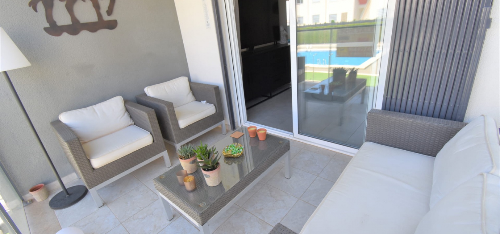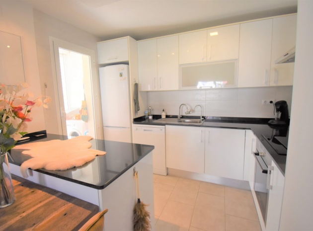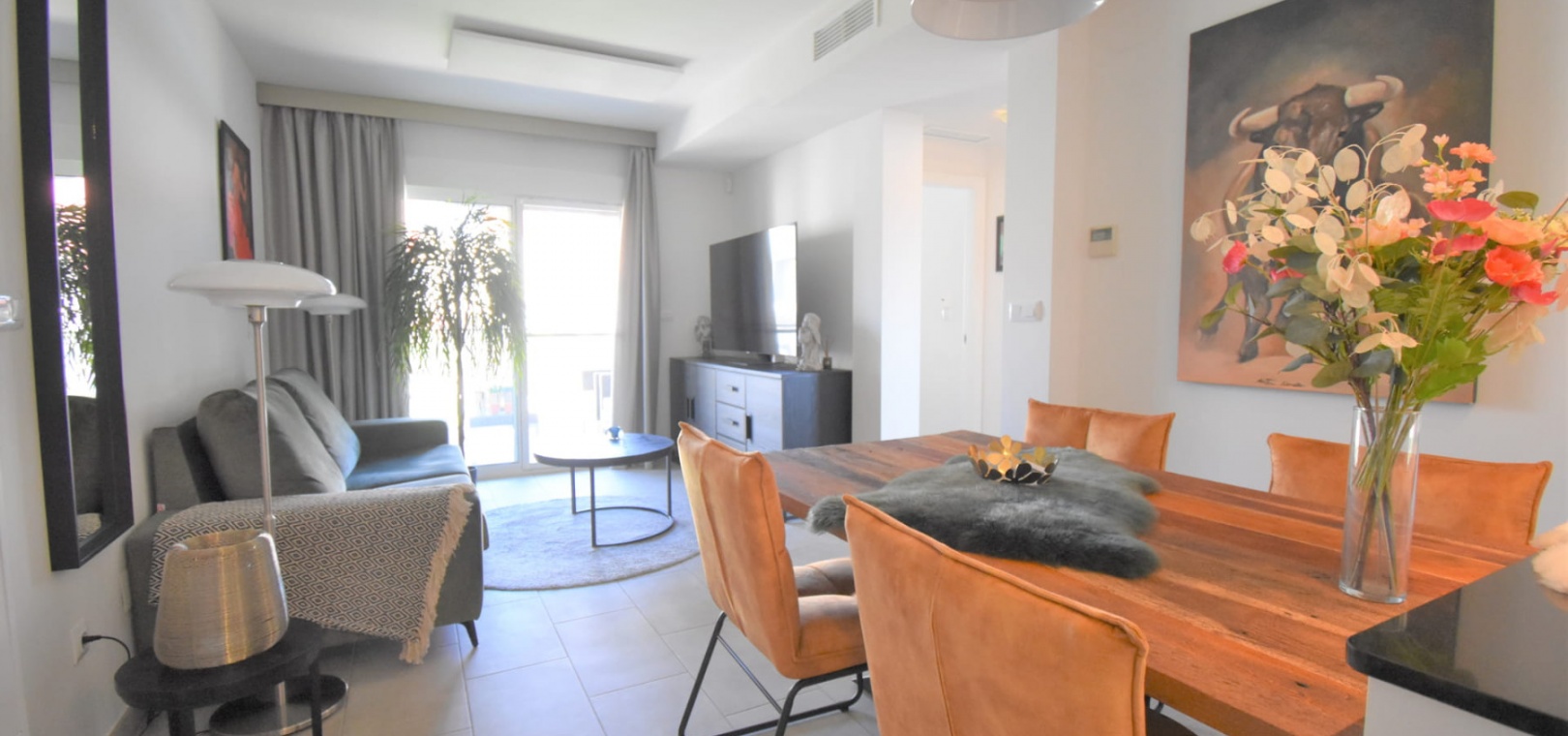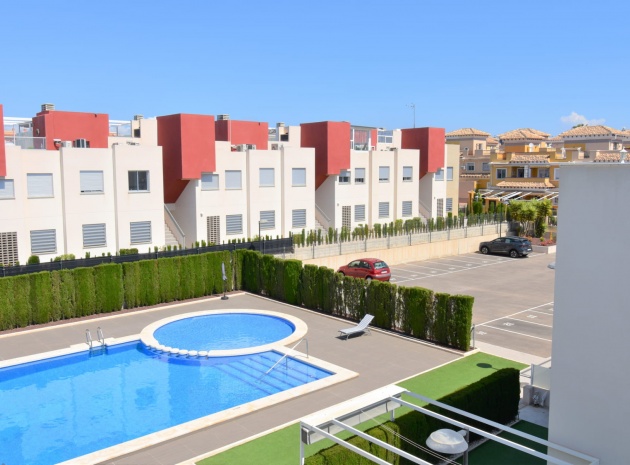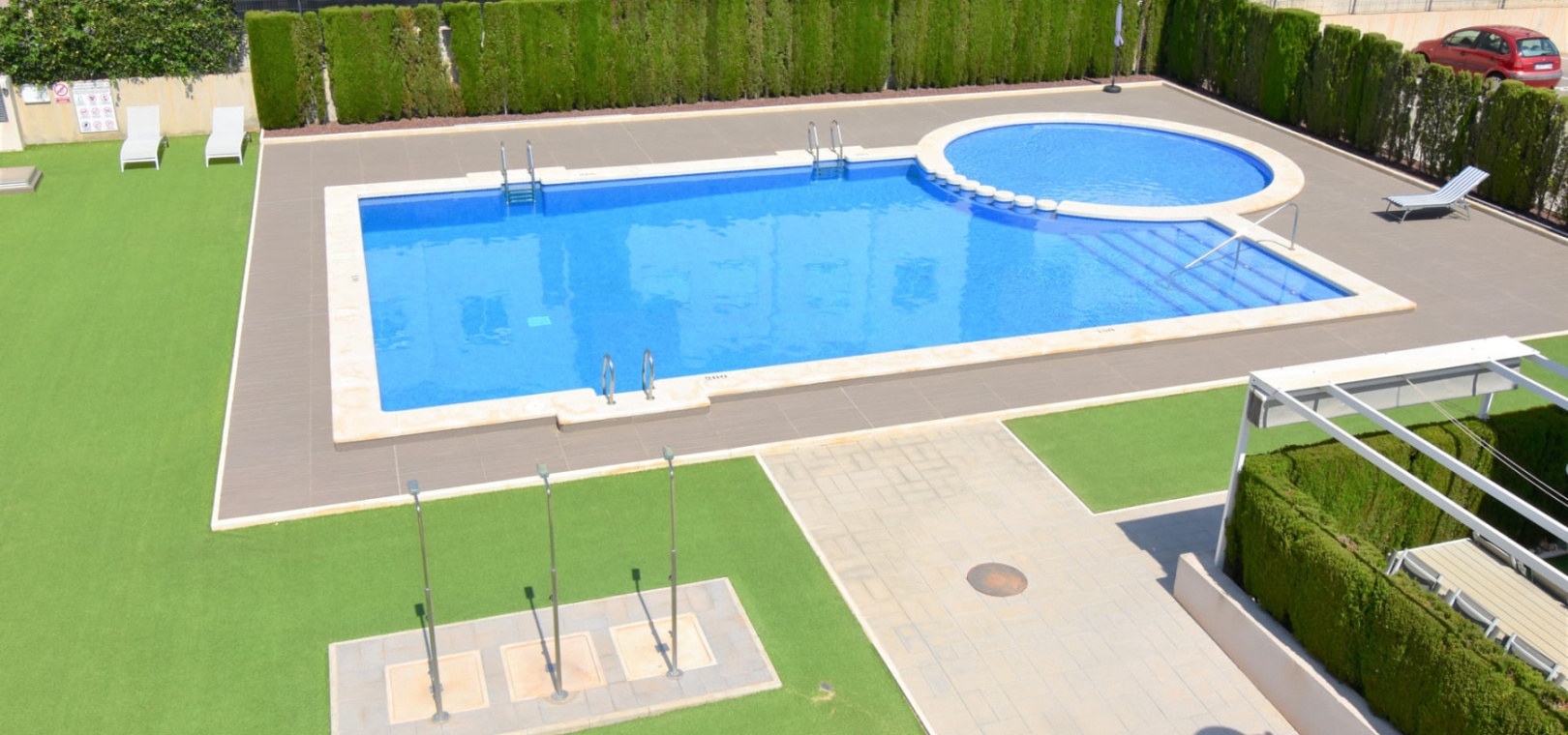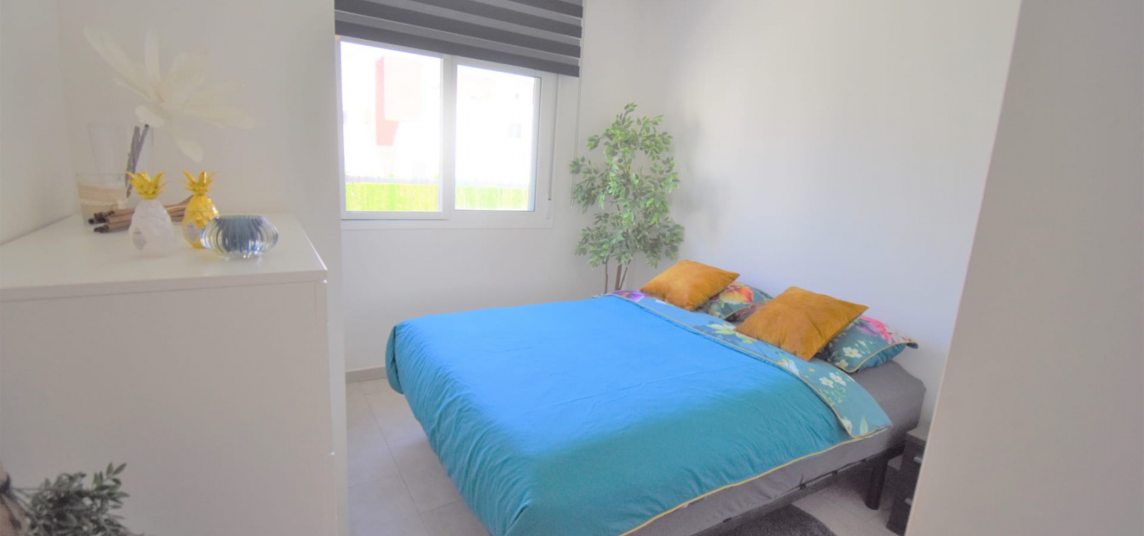 En lägenhet med 2 sovrum och 2 badrum på översta våningen med ett privat takterrass i Residencial Aqua, Aguas Nuevas, Torrevieja, Costa Blanca. Denna fastighet säljs i mycket gott skick, säljs möblerad och består mycket kortfattat av följande: - vardagsrum/matsal, fullt utrustat kök med öppen planlösning, separat tvättstuga, 2 x dubbelrum med inbyggda garderober, det största sovrummet har ett badrum svit duschrum, 1 x gästduschrum, balkong utanför loungen, privat takterrass, utsikt över den gemensamma poolen och trädgårdarna, säker gated community och mycket mer. Några extra tillbehör är toppmoderna exklusiva möbler, vitvaror och varm- och kallkanalig A/C. Lokala barer, restauranger och stormarknader ligger mycket nära fastigheten och det är cirka fem minuters bilresa till havet. Köpcentret Habaneras och Carrefour ligger mindre än 10 minuters bilresa bort och det går regelbunden busstrafik till centrala Torrevieja och La Mata. Alicantes flygplats ligger cirka 40 minuters bilresa bort.