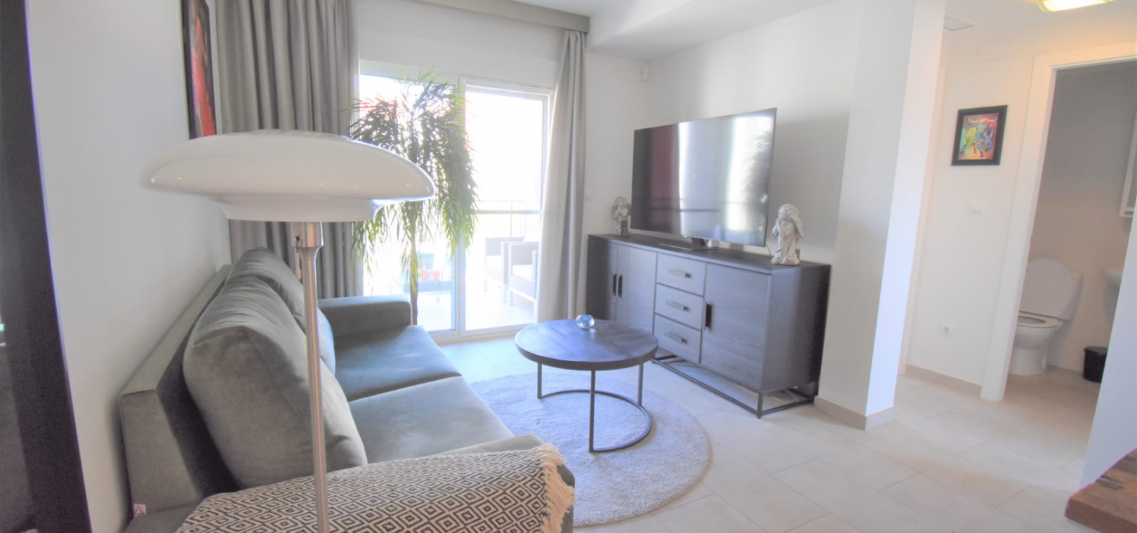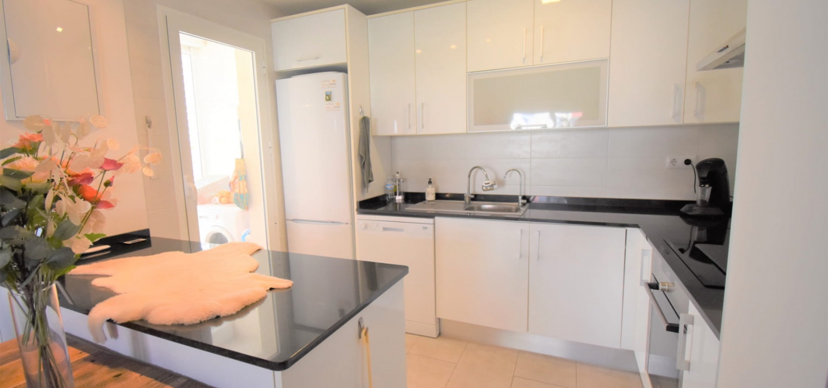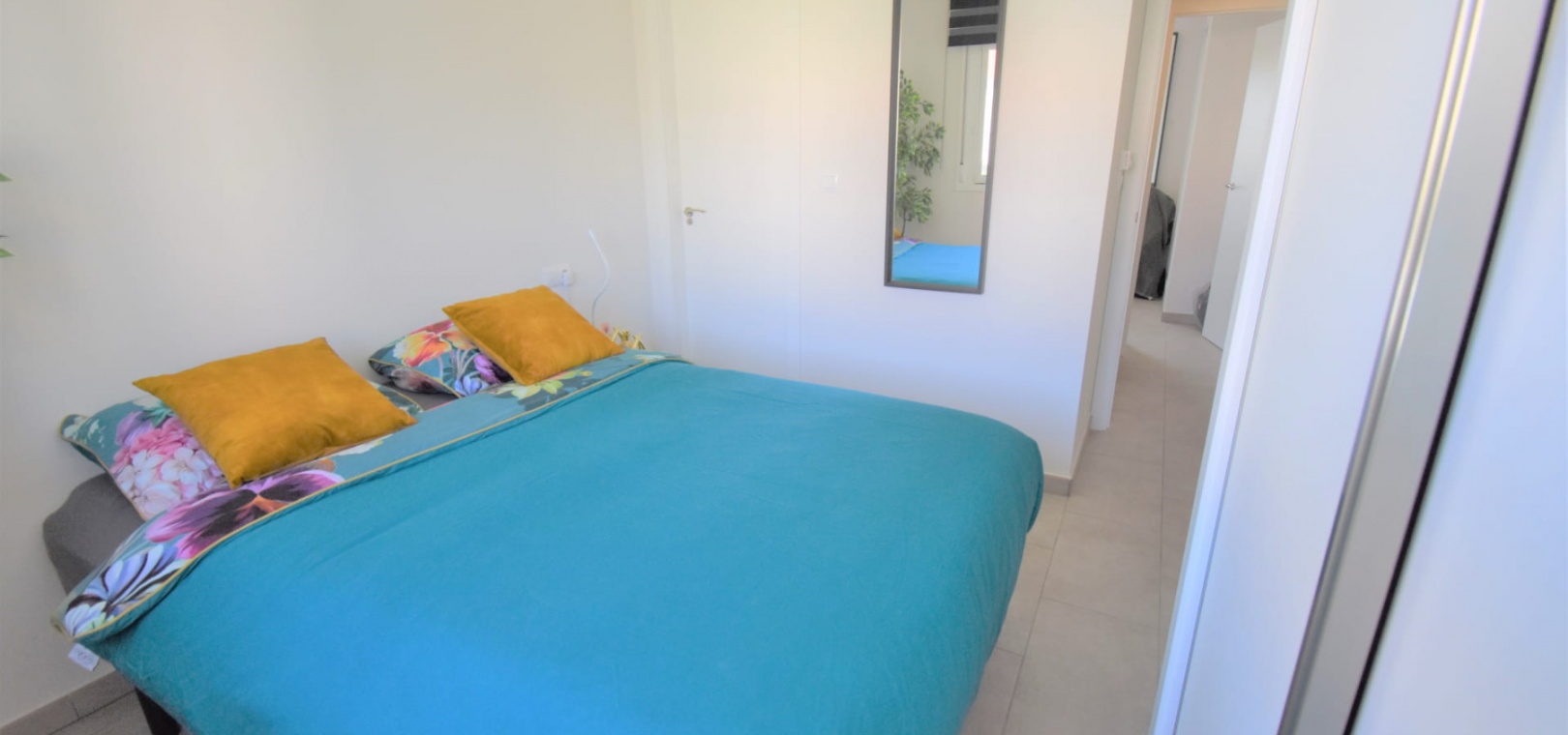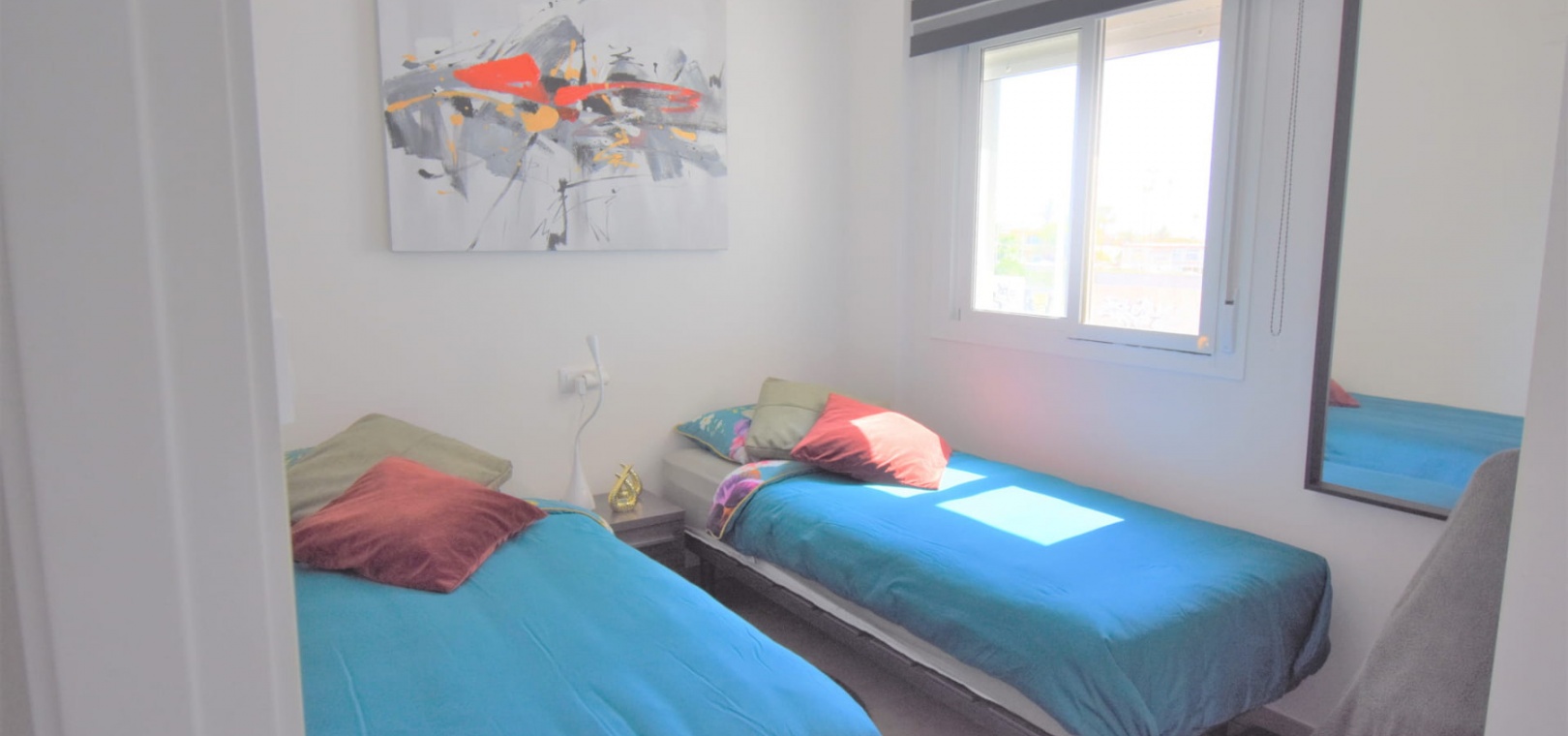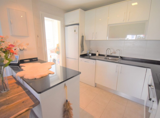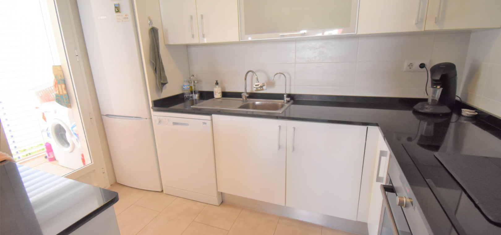 En lägenhet med 2 sovrum och 2 badrum på översta våningen med ett privat takterrass i Residencial Aqua, Aguas Nuevas, Torrevieja, Costa Blanca. Denna fastighet säljs i mycket gott skick, säljs möblerad och består mycket kortfattat av följande: - vardagsrum/matsal, fullt utrustat kök med öppen planlösning, separat tvättstuga, 2 x dubbelrum med inbyggda garderober, det största sovrummet har ett badrum svit duschrum, 1 x gästduschrum, balkong utanför loungen, privat takterrass, utsikt över den gemensamma poolen och trädgårdarna, säker gated community och mycket mer. Några extra tillbehör är toppmoderna exklusiva möbler, vitvaror och varm- och kallkanalig A/C. Lokala barer, restauranger och stormarknader ligger mycket nära fastigheten och det är cirka fem minuters bilresa till havet. Köpcentret Habaneras och Carrefour ligger mindre än 10 minuters bilresa bort och det går regelbunden busstrafik till centrala Torrevieja och La Mata. Alicantes flygplats ligger cirka 40 minuters bilresa bort.