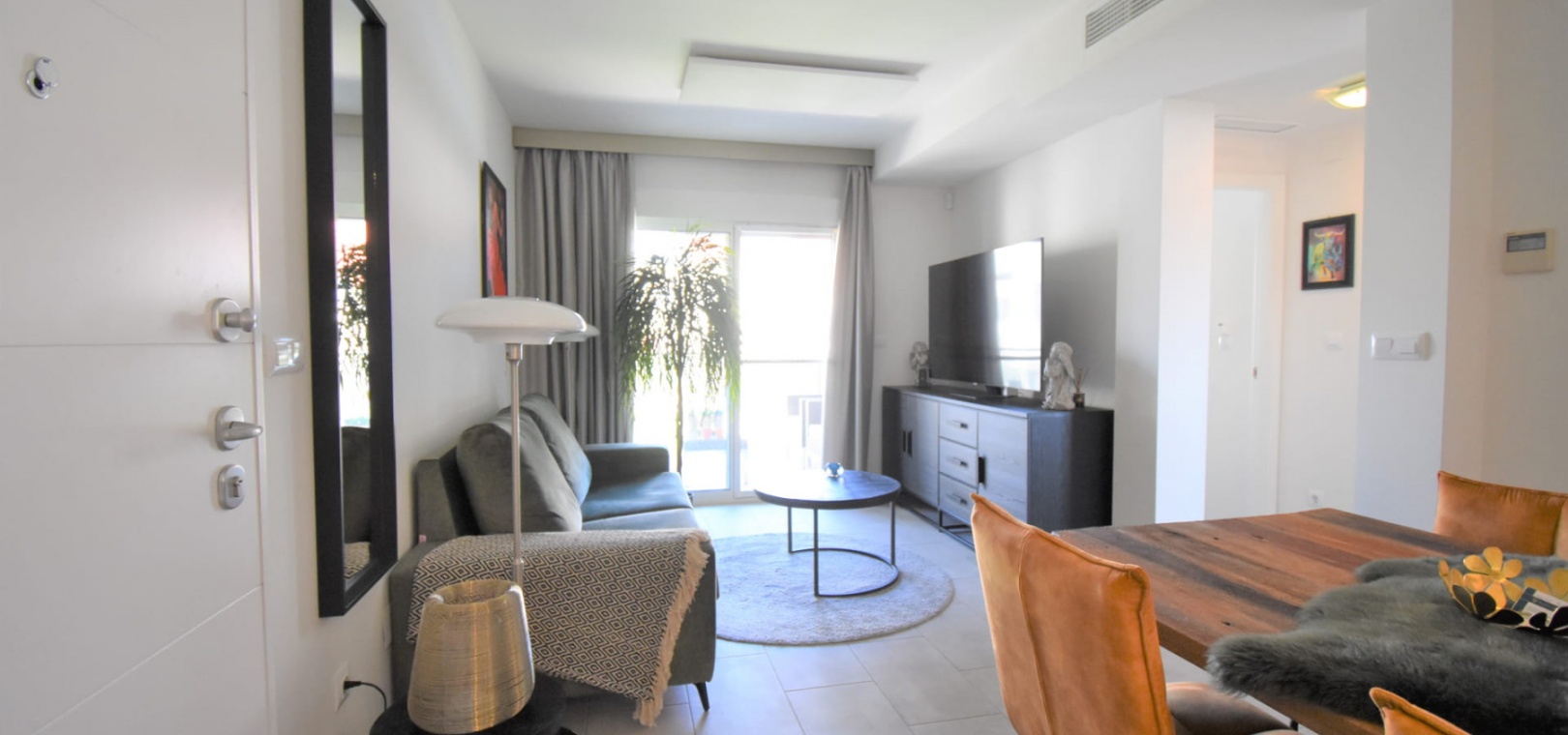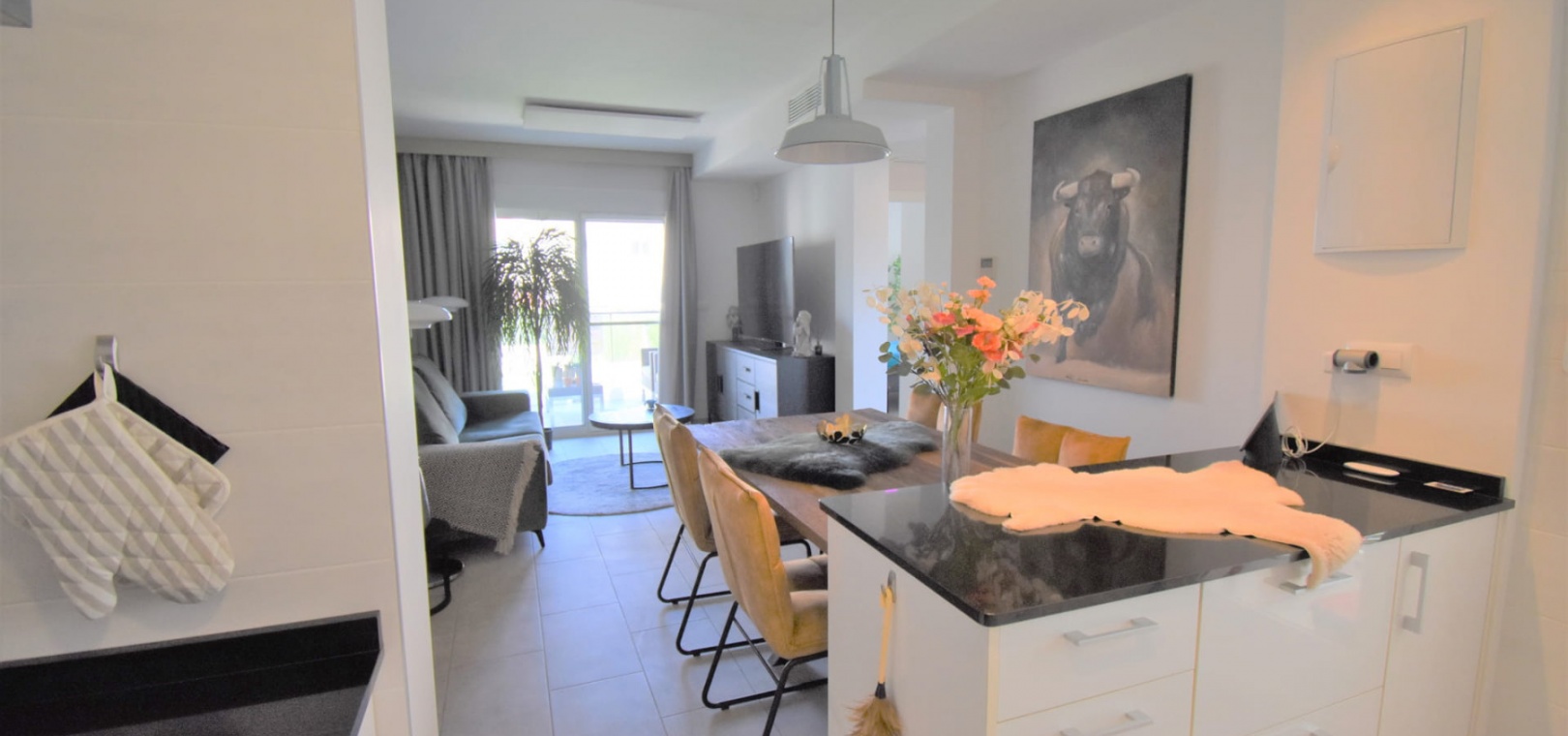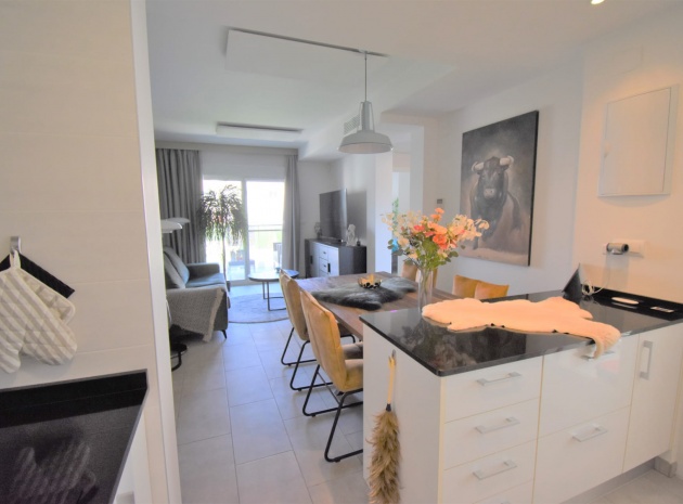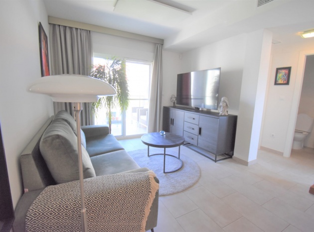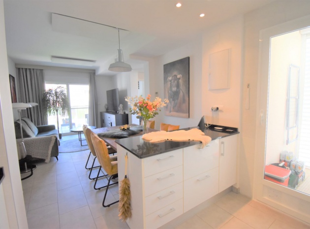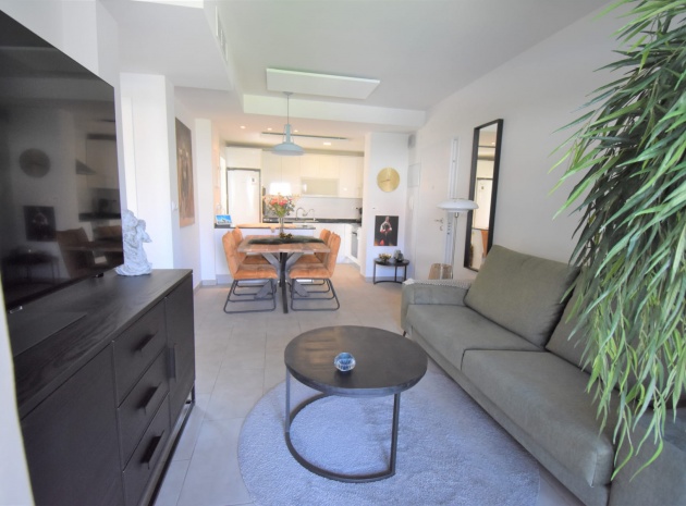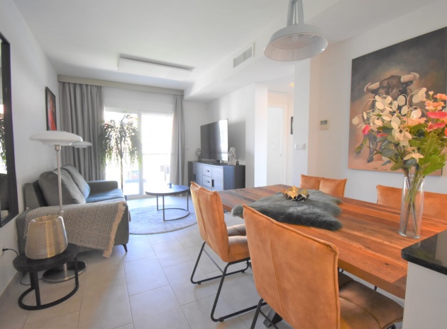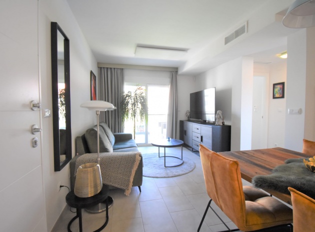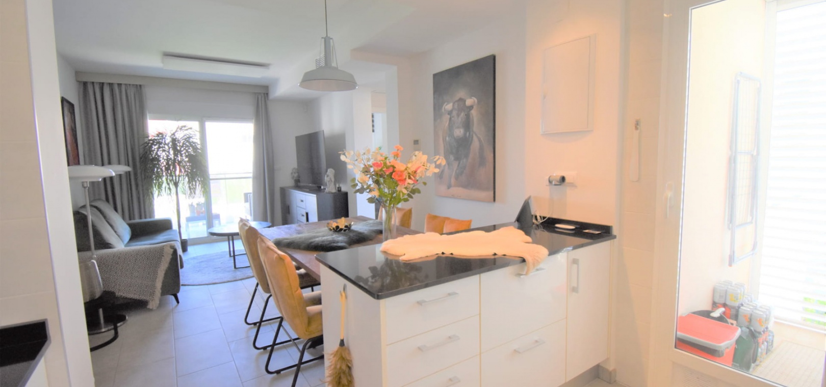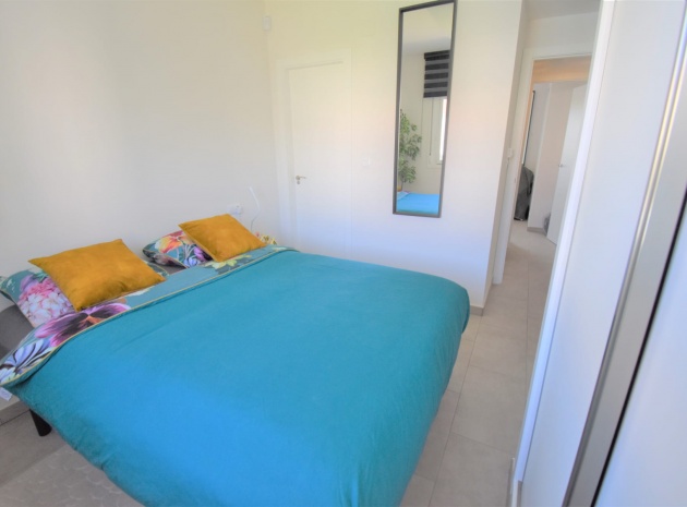En lägenhet med 2 sovrum och 2 badrum på översta våningen med ett privat takterrass i Residencial Aqua, Aguas Nuevas, Torrevieja, Costa Blanca. Denna fastighet säljs i mycket gott skick, säljs möblerad och består mycket kortfattat av följande: - vardagsrum/matsal, fullt utrustat kök med öppen planlösning, separat tvättstuga, 2 x dubbelrum med inbyggda garderober, det största sovrummet har ett badrum svit duschrum, 1 x gästduschrum, balkong utanför loungen, privat takterrass, utsikt över den gemensamma poolen och trädgårdarna, säker gated community och mycket mer. Några extra tillbehör är toppmoderna exklusiva möbler, vitvaror och varm- och kallkanalig A/C. Lokala barer, restauranger och stormarknader ligger mycket nära fastigheten och det är cirka fem minuters bilresa till havet. Köpcentret Habaneras och Carrefour ligger mindre än 10 minuters bilresa bort och det går regelbunden busstrafik till centrala Torrevieja och La Mata. Alicantes flygplats ligger cirka 40 minuters bilresa bort.