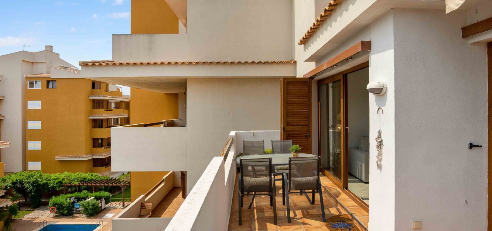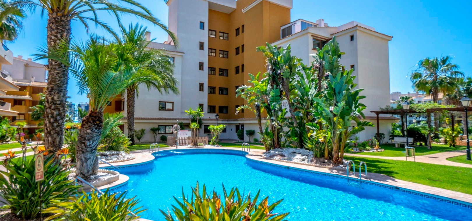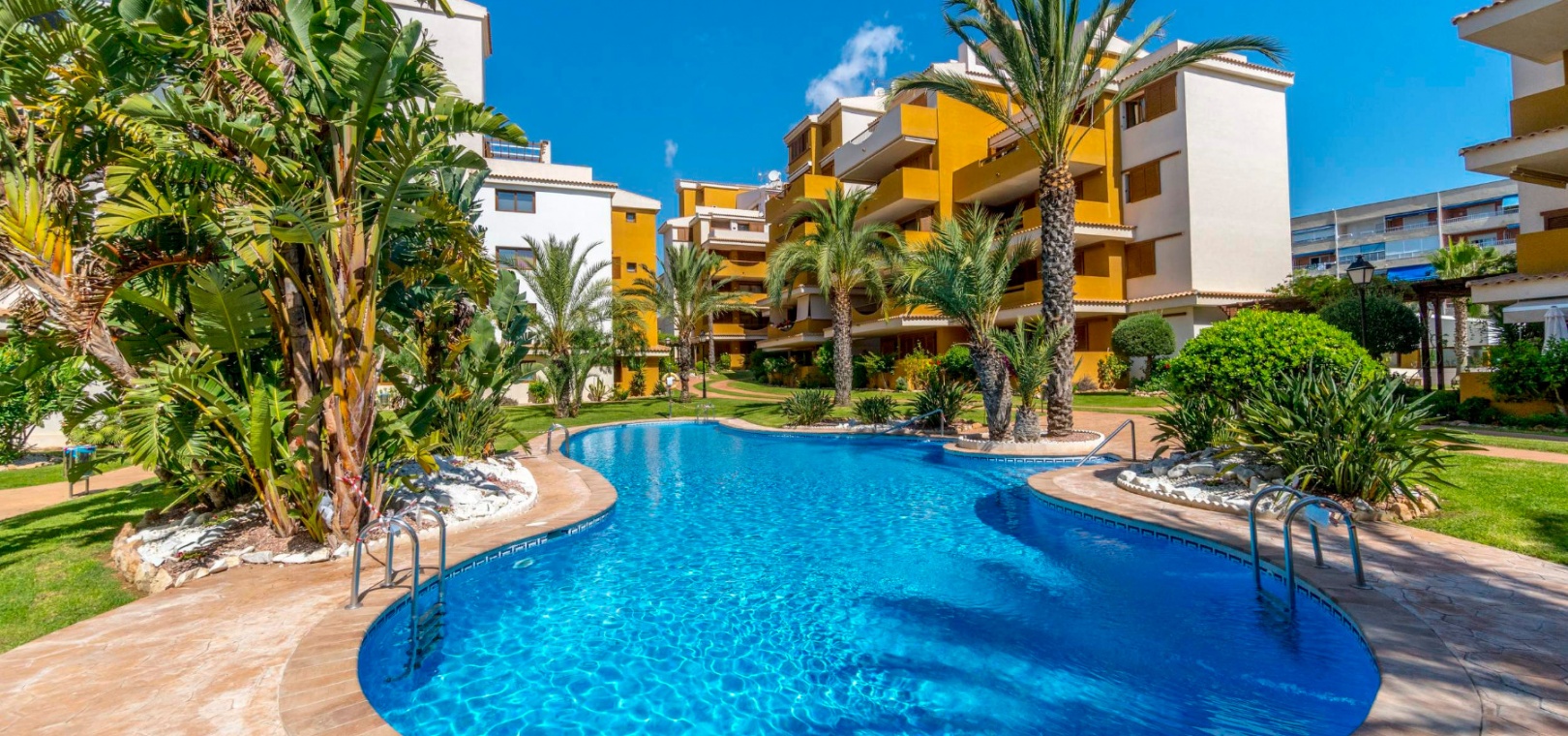 La Entrada-komplexet har vackra trädgårdar och 3 x pooler och det är ett säkert inhägnat komplex med 24 timmars bevakning på plats.
