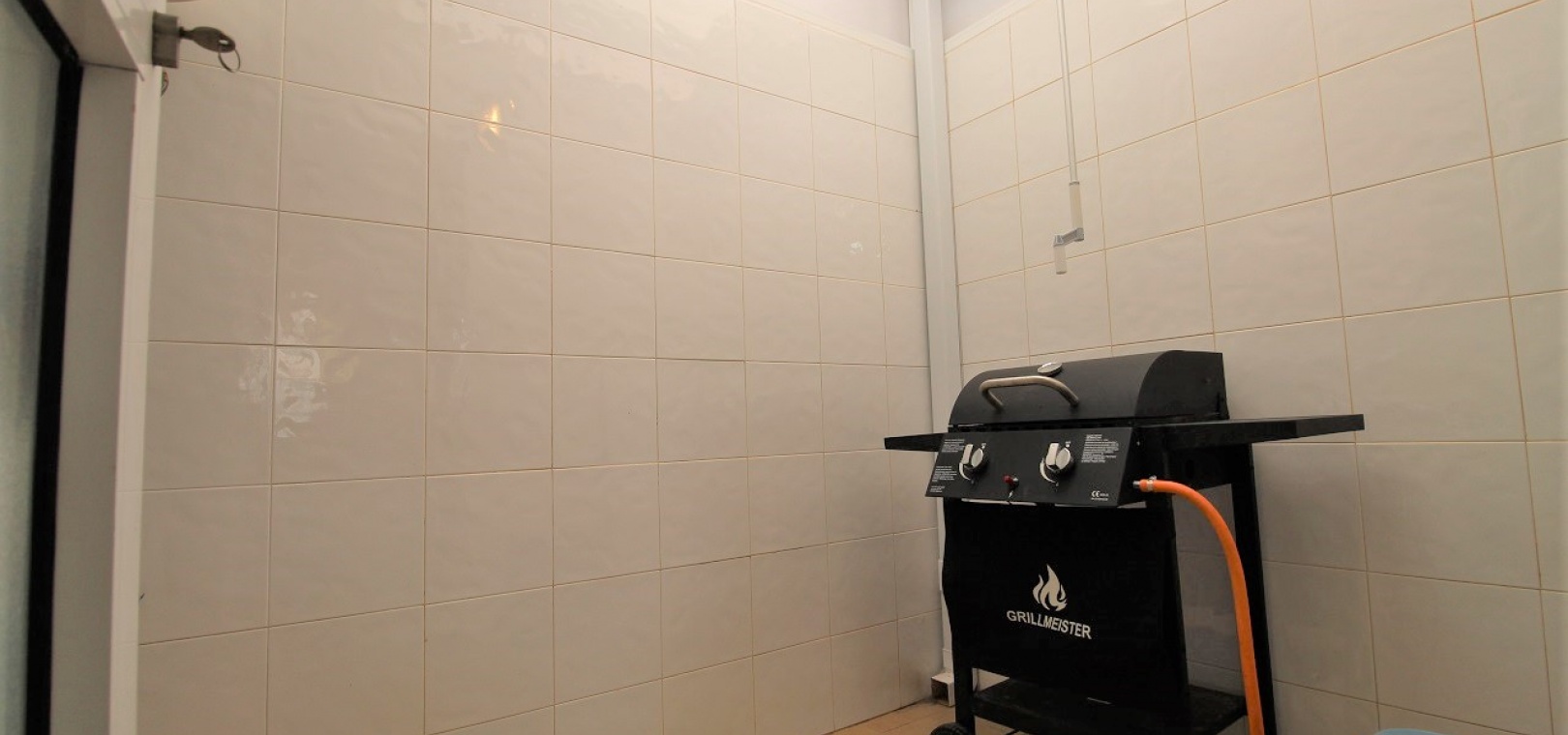 På bottenvåningen finns ett vardagsrum/matrum, separat utrustat kök med en utgångsdörr till bruksområdet, 1 x dubbelrum med inbyggd garderob och 1 x duschrum.