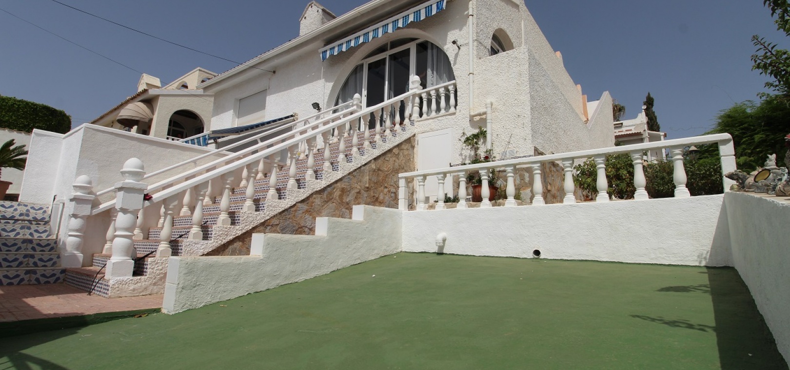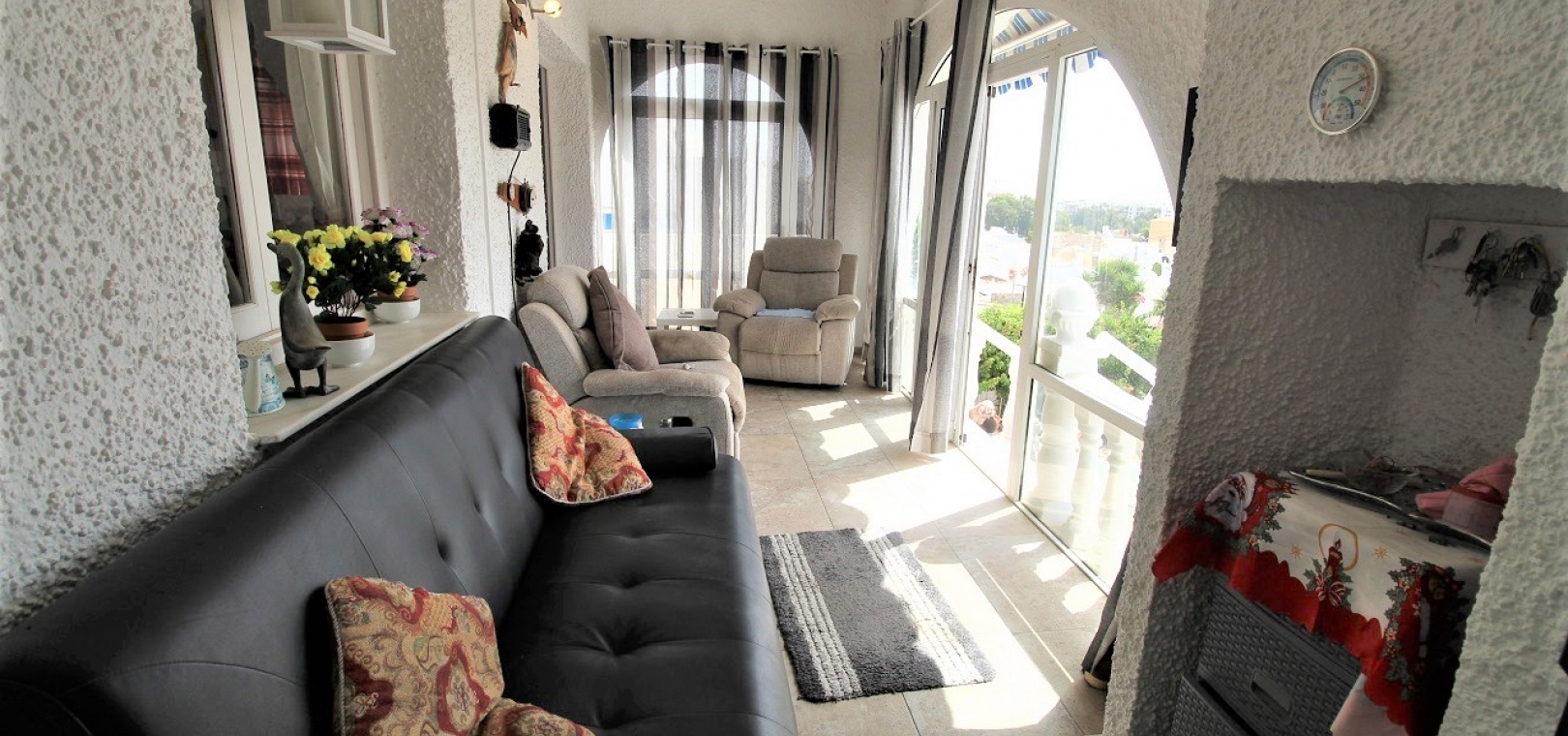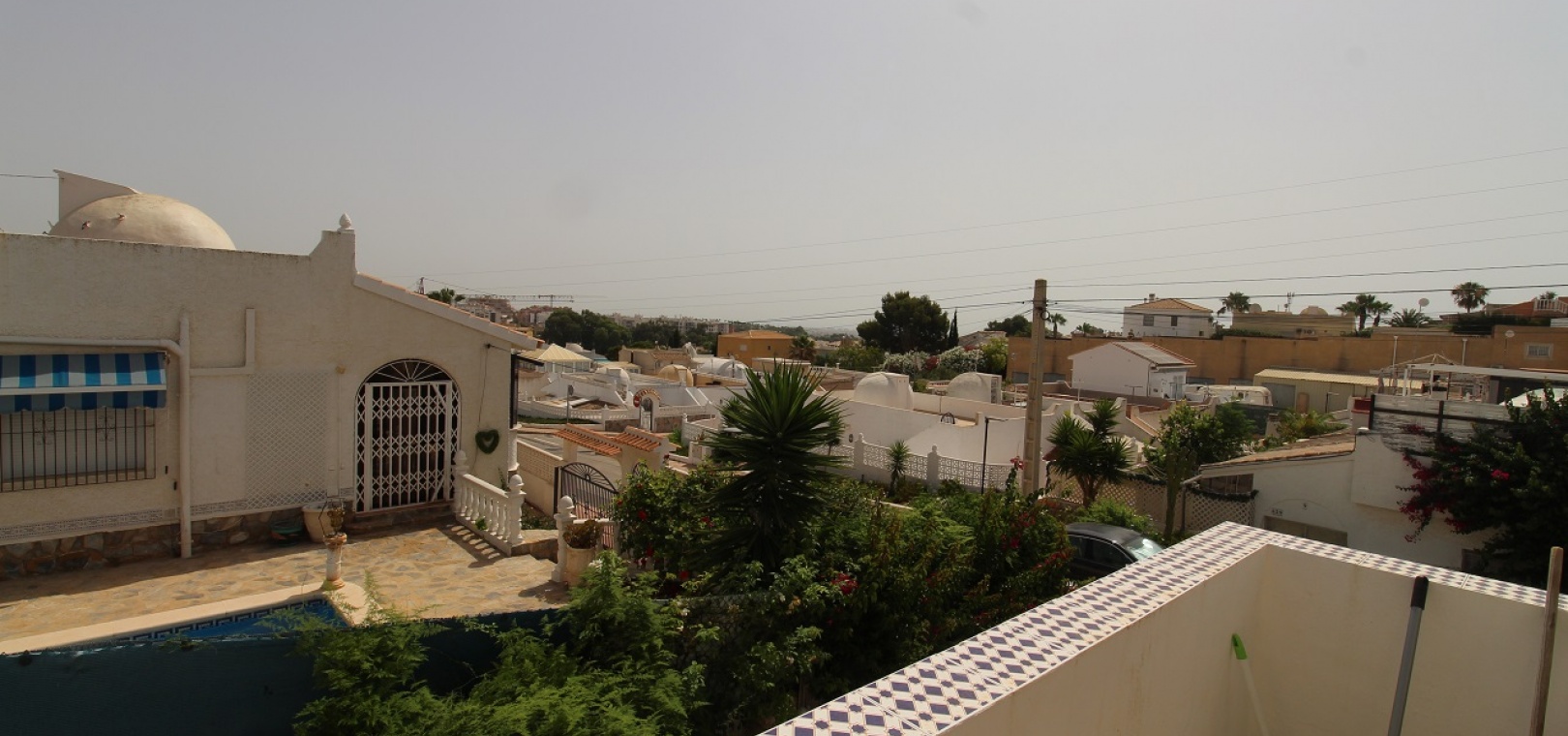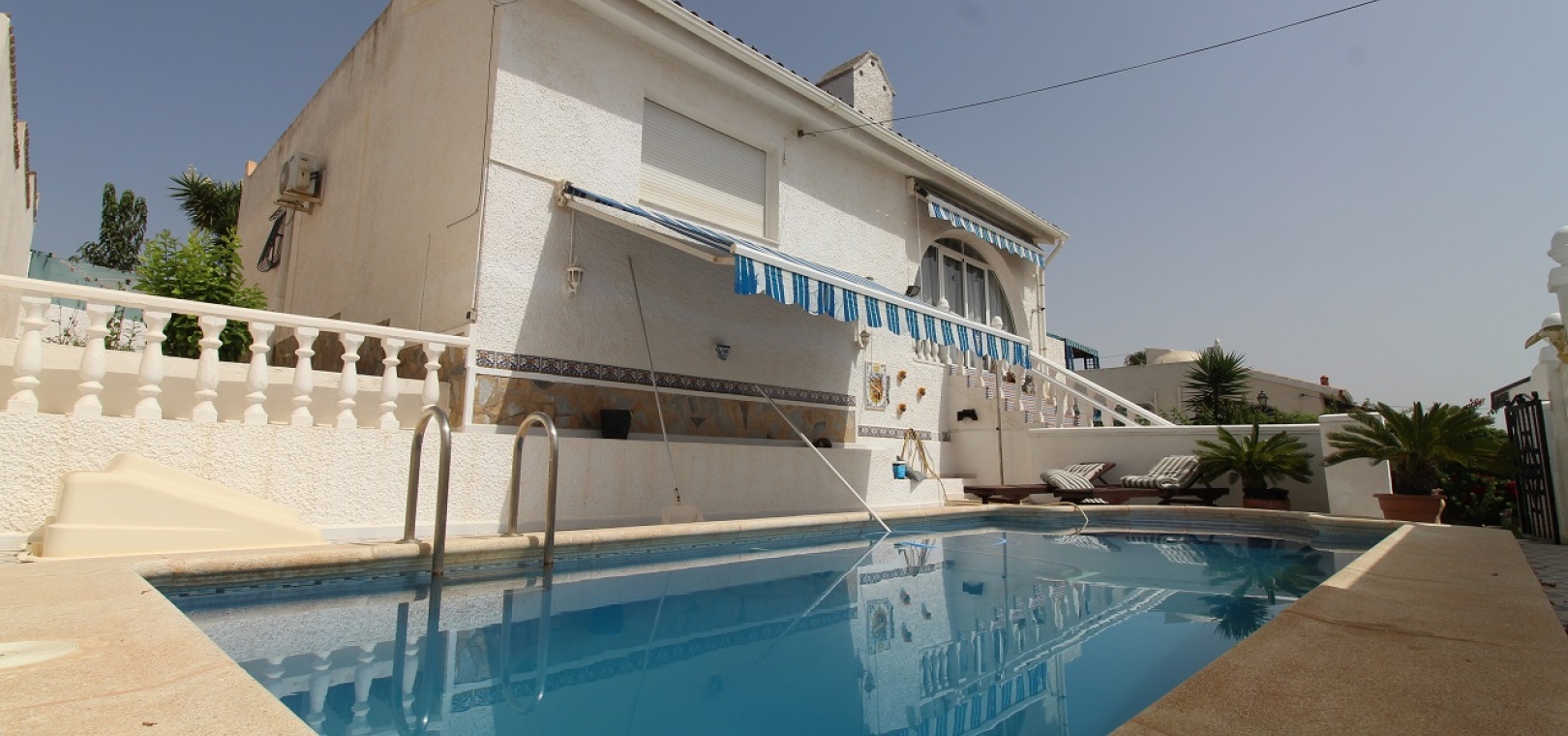 En fristående villa med 3 sovrum och 2 badrum i sydvästläge med en privat pool belägen i Blue Lagoon, Villamartin, Costa Blanca. Denna härliga fastighet säljs i gott skick, säljs möblerad och består mycket kortfattat av följande:- Lounge/matsal med varm och kall luftkonditionering, nyutrustat kök med öppen planlösning, 2 x dubbelrum, 1 x enkelrum, 1 x duschrum & 1 x familjebadrum. Utanför finns en inglasad terrass på framsidan med en soltält, privat takterrass, stor trädgård med privat pool, separat tvättstuga, off-road parkering och mycket mer. Det är varmt och kallt A/C, gas centralvärme och mycket mer. Denna fastighet ligger bara en kort promenad från lokala barer, butiker och restauranger. Stränderna Golden Orihuela Costa ligger bara 10 minuters bilresa bort eller så kan du använda den lokala bussen. Det finns 4 golfbanor alla inom 5 minuters bilresa. Murcia Corvera flygplats ligger 35 minuter bort och Alicantes flygplats ligger 40 minuters bilresa bort.