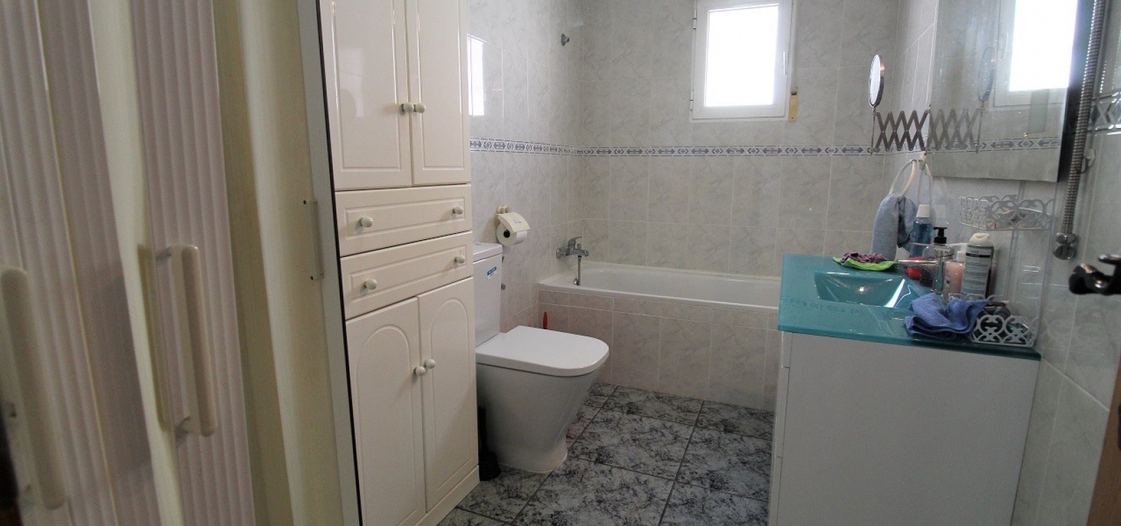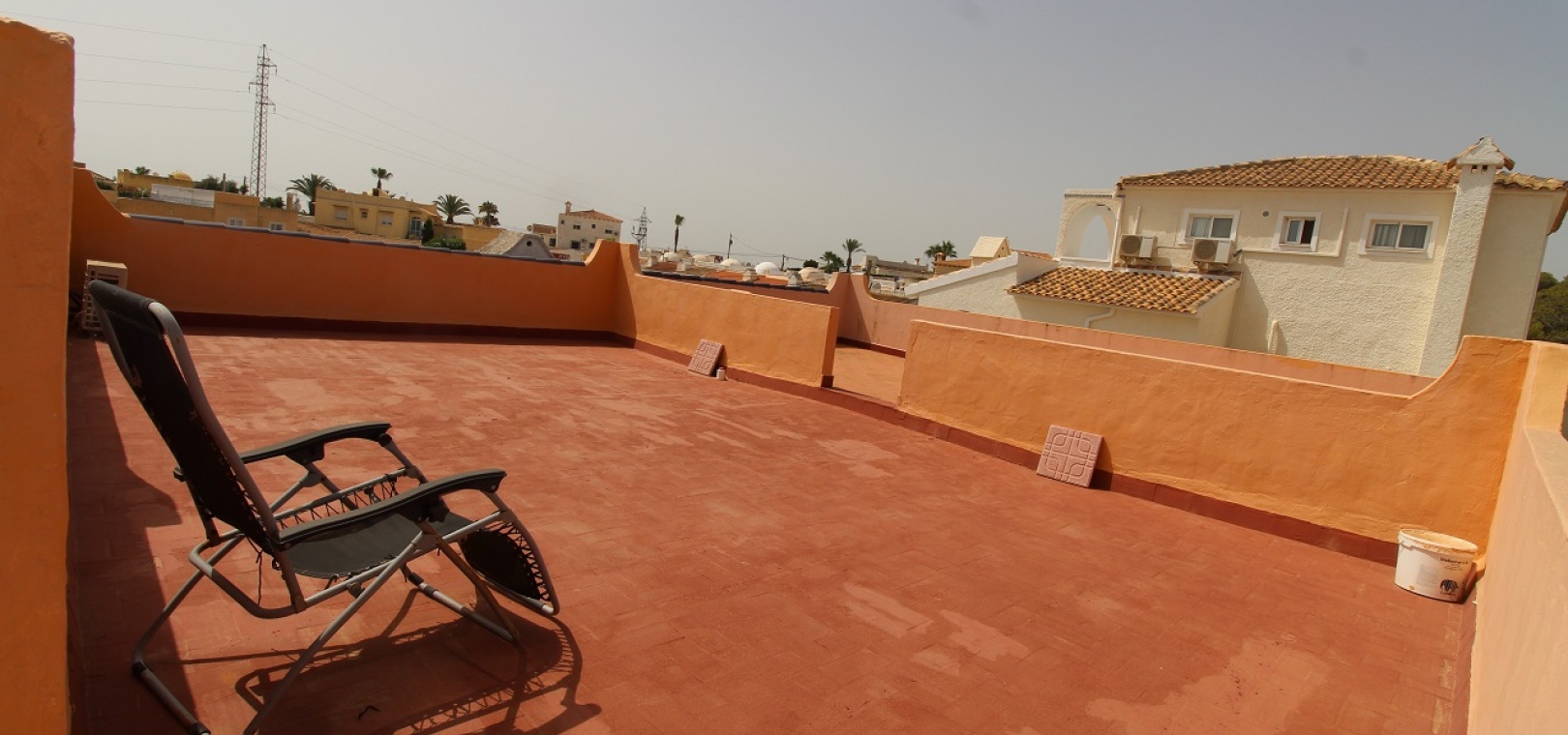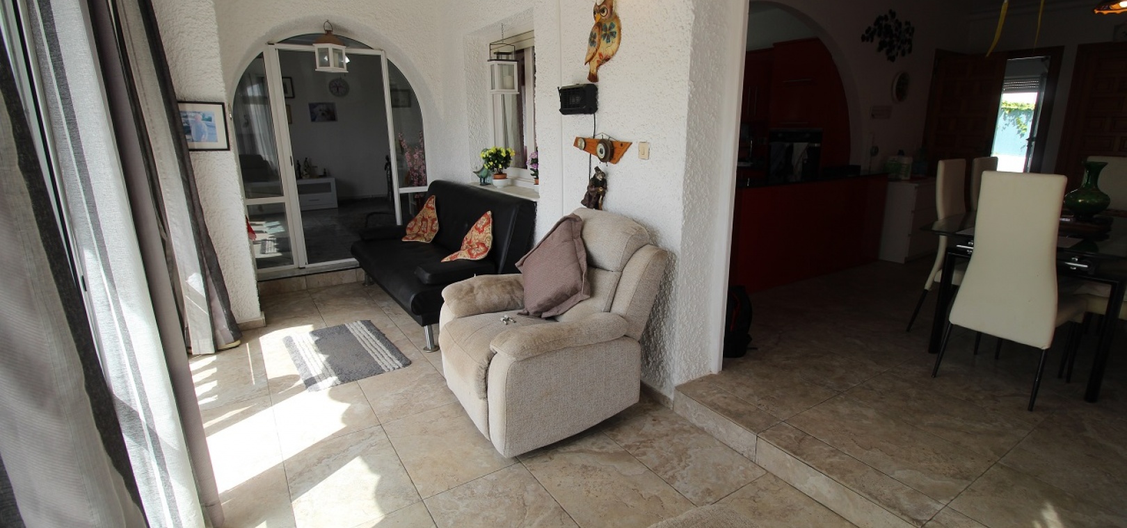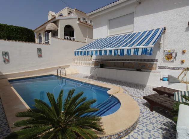 En fristående villa med 3 sovrum och 2 badrum i sydvästläge med en privat pool belägen i Blue Lagoon, Villamartin, Costa Blanca. Denna härliga fastighet säljs i gott skick, säljs möblerad och består mycket kortfattat av följande:- Lounge/matsal med varm och kall luftkonditionering, nyutrustat kök med öppen planlösning, 2 x dubbelrum, 1 x enkelrum, 1 x duschrum & 1 x familjebadrum. Utanför finns en inglasad terrass på framsidan med en soltält, privat takterrass, stor trädgård med privat pool, separat tvättstuga, off-road parkering och mycket mer. Det är varmt och kallt A/C, gas centralvärme och mycket mer. Denna fastighet ligger bara en kort promenad från lokala barer, butiker och restauranger. Stränderna Golden Orihuela Costa ligger bara 10 minuters bilresa bort eller så kan du använda den lokala bussen. Det finns 4 golfbanor alla inom 5 minuters bilresa. Murcia Corvera flygplats ligger 35 minuter bort och Alicantes flygplats ligger 40 minuters bilresa bort.