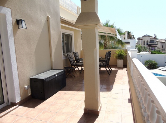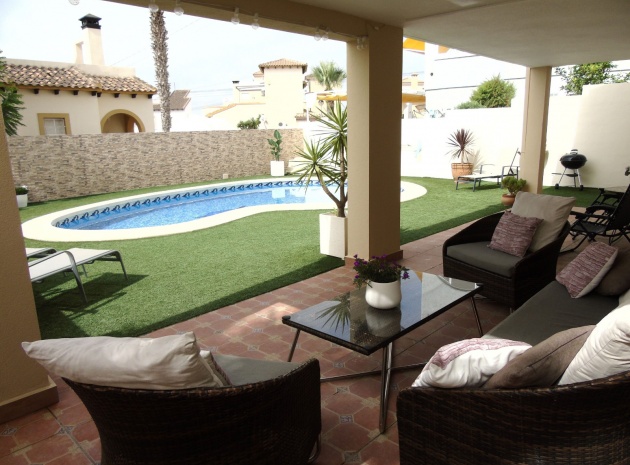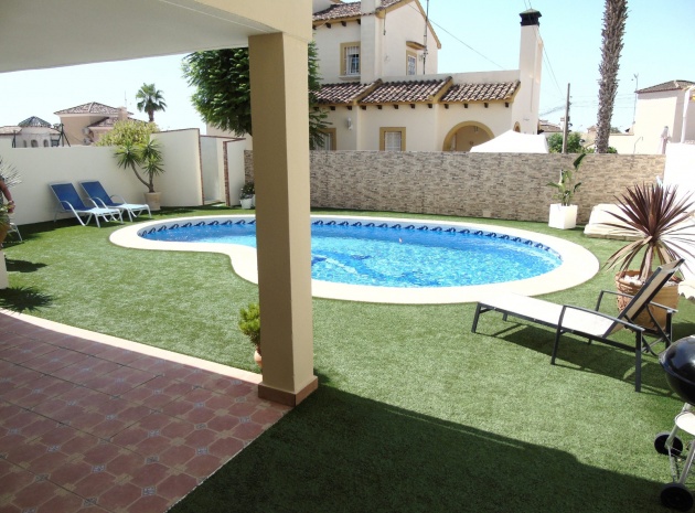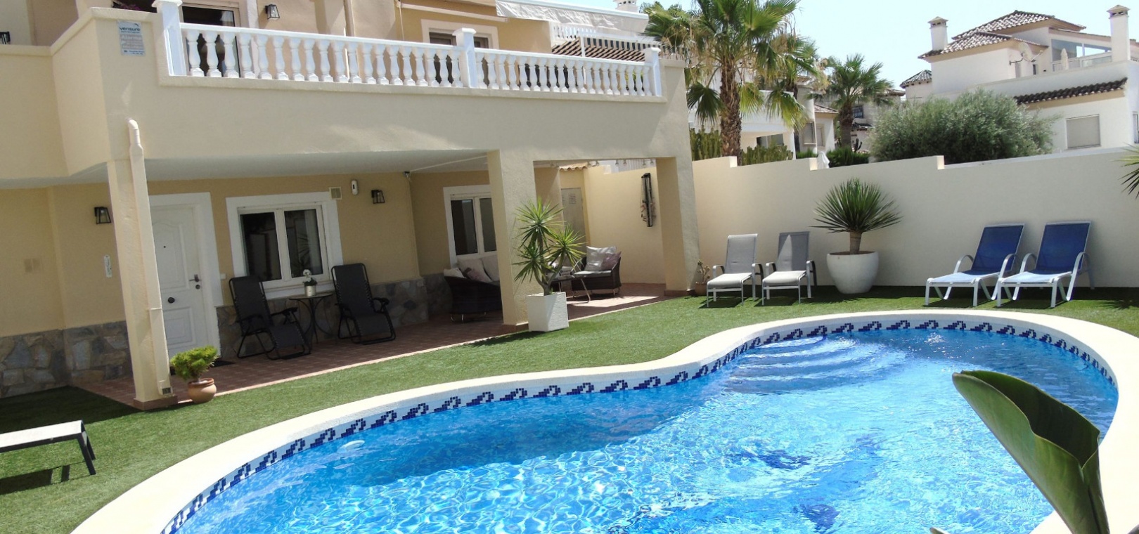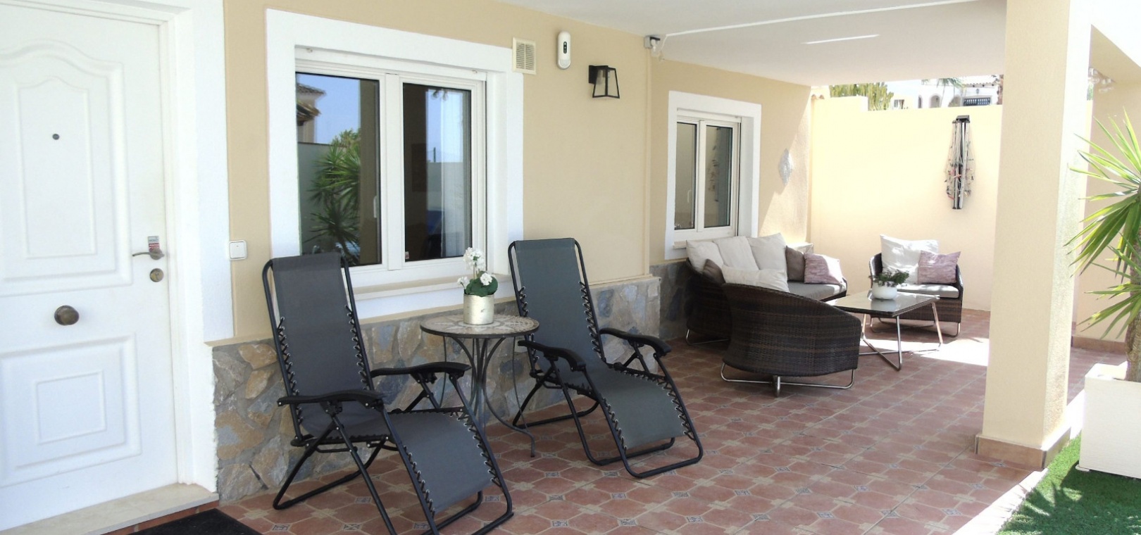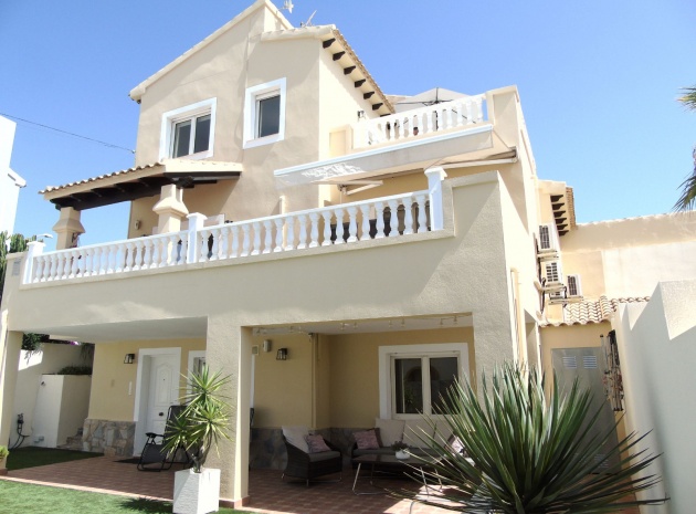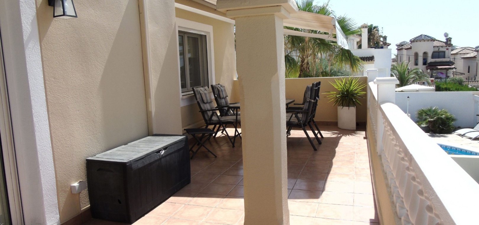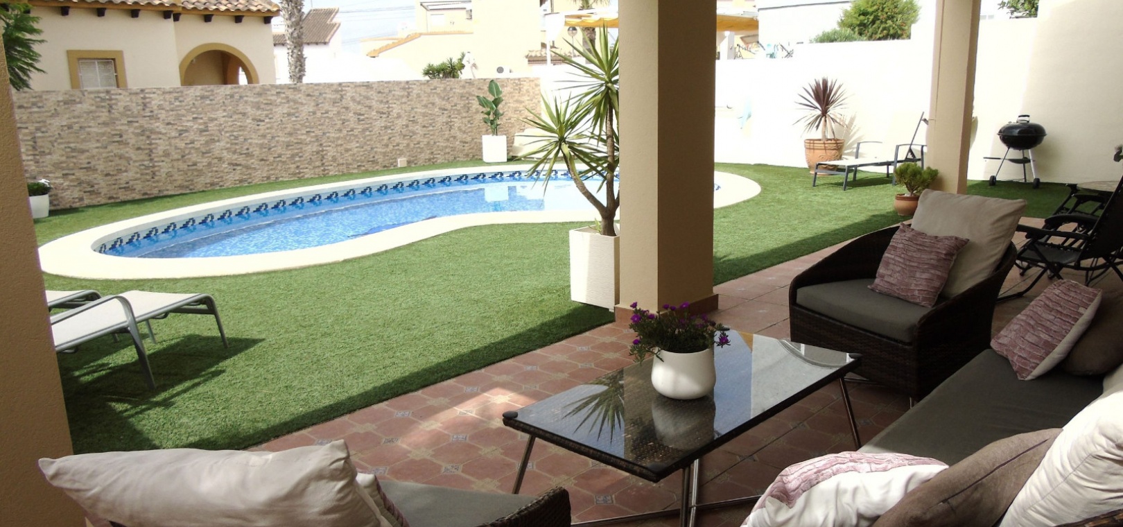 En fristående villa med 4 bäddar och 2 badrum med privat pool belägen i Blue Lagoon, Villamartin, Costa Blanca South. Vi är mycket glada över att kunna erbjuda till försäljning en fantastisk villa med turistlicens. Denna villa ligger på en tomt på 600 m2 och har elektriska grindar till en trevlig asfalterad uppfart med gott om plats för 2 bilar. Utsidan av villan är fullt anlagd och har bevattning till alla krukor och är lättskött på grund av dess låga underhåll i hela trädgårdsområdet, och du har också användningen av en härlig privat pool med massor av utrymme runt om för att sola och njuta av solen. Villan i sig har en fantastisk planlösning med en stor familjelounge och matplats vid entrén med mycket ljus på grund av dess södra aspekt, loungen har direkt tillgång till en stor balkong med utsikt över den vackra trädgården och privat pool och har mer än tillräckligt med utrymme för att ha en BBQ och ett stort matbord för att passa hela familjen och vännerna, på denna nivå har du också ett sovrum med ett stort badrum plus ett bra kök i öppen planlösning, en W/C för gäster. Den översta våningen har intern tillgång till ytterligare 2 dubbelrum och ett badrum i familjestorlek och har även tillgång till ett stort solarium med panoramautsikt över saltsjöarna och fantastisk havsutsikt. Denna fastighet har också den extra bonusen av en fristående fullt fungerande lägenhet som har separat tillgång till huvudvillan, den har ett stort vardagsrum med ett eget fullt fungerande kök och separat förråd, och har även ett stort dubbelrum med eget badrum. svit och har direkt tillgång ut till den härliga poolen och trädgården. Denna fastighet ligger bara en kort promenad från lokala barer, butiker och restauranger. Stränderna Golden Orihuela Costa ligger bara 10 minuters bilresa bort eller så kan du använda den lokala bussen. Det finns 4 golfbanor alla inom 5 minuters bilresa. Murcia Corvera flygplats ligger 35 minuter bort och Alicantes flygplats ligger 40 minuters bilresa bort.