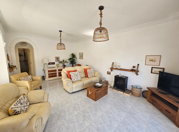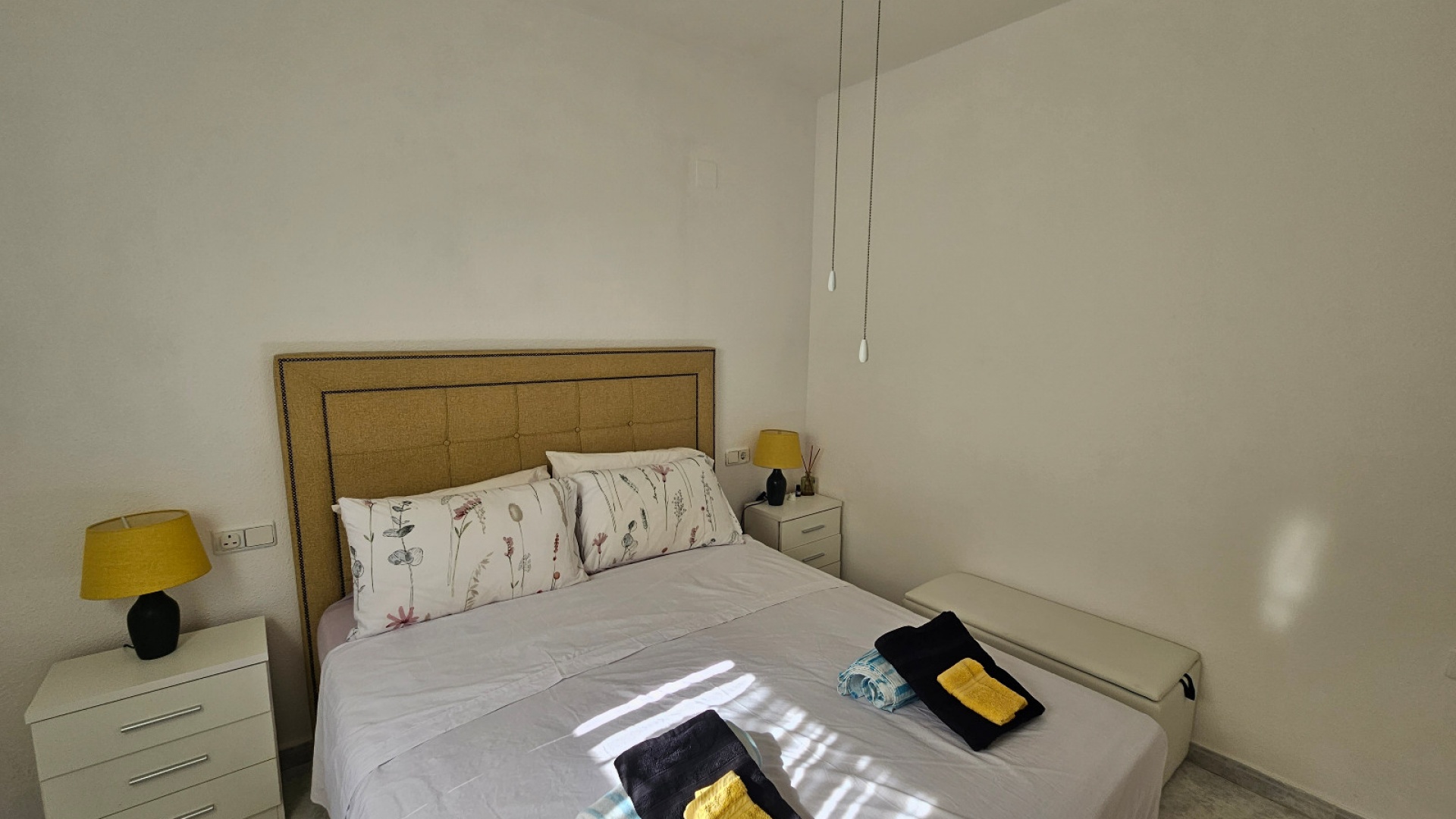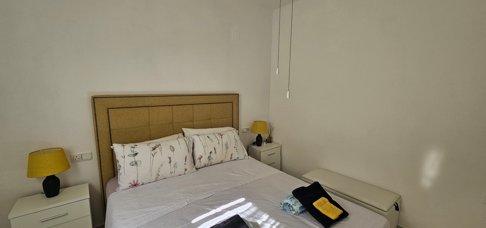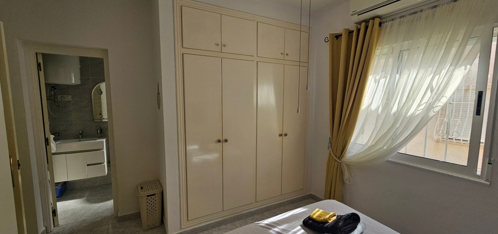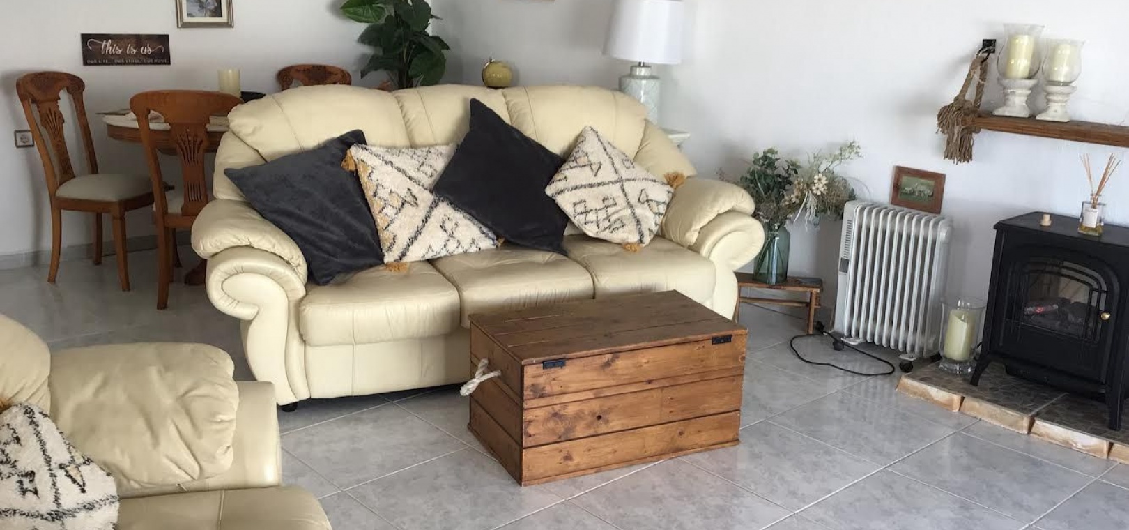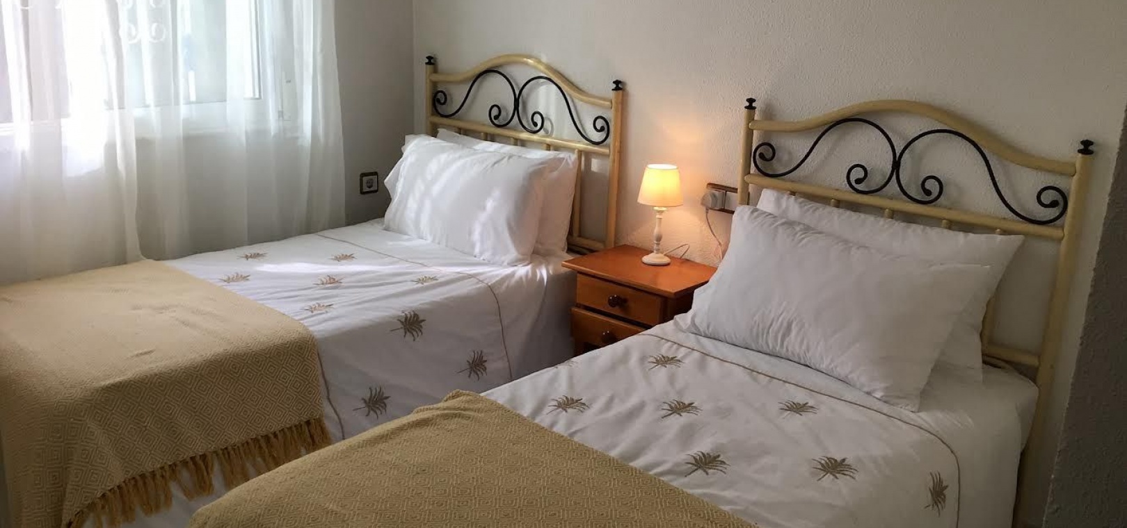 Inne i fastigheten hittar du ett stort vardagsrum/matsal, ett kök med öppen planlösning med varm och kall A/C, 2 x stora dubbelrum med inbyggda garderober och takfläktar och det största sovrummet har ett eget duschrum och varm- och kall A/C. Det finns också ett familjeduschrum som delvis har moderniserats.