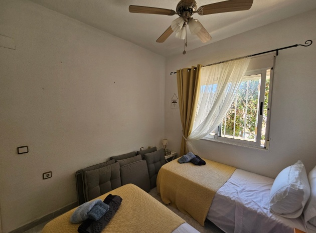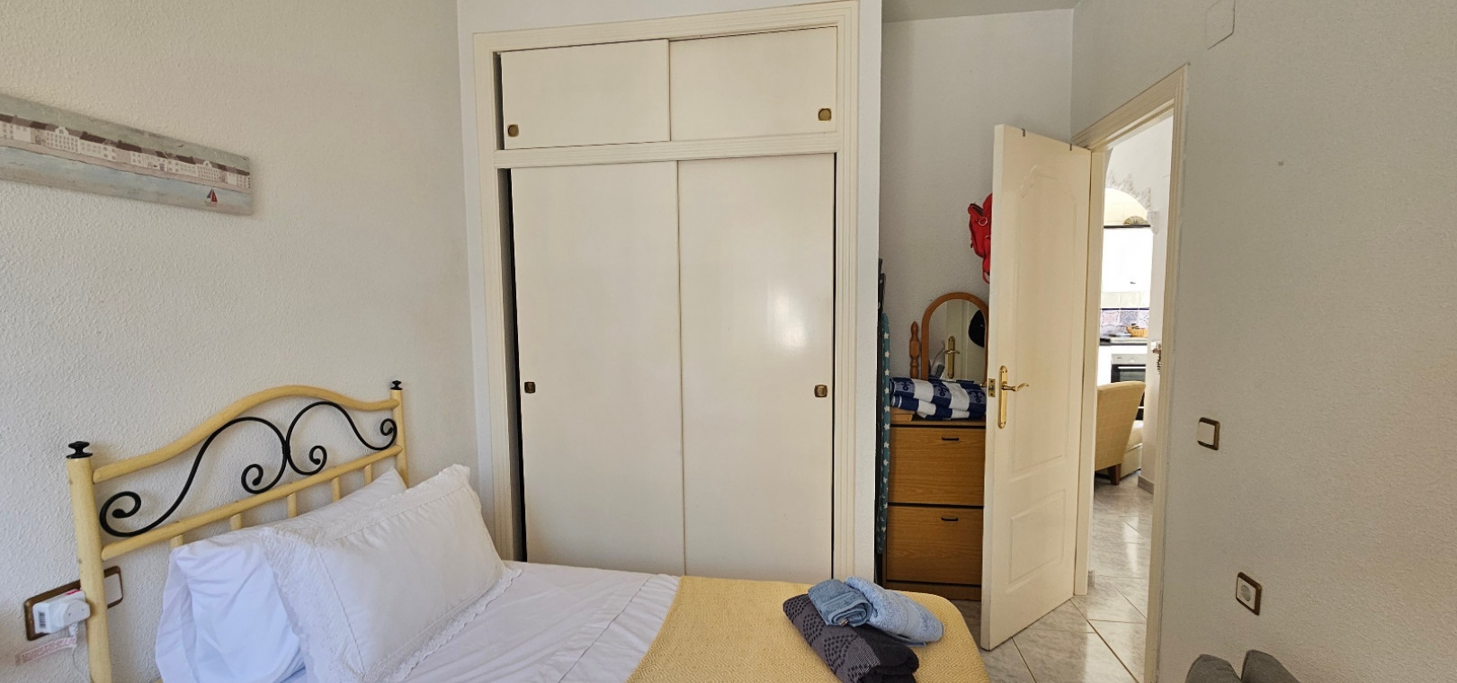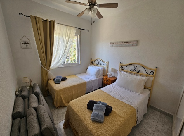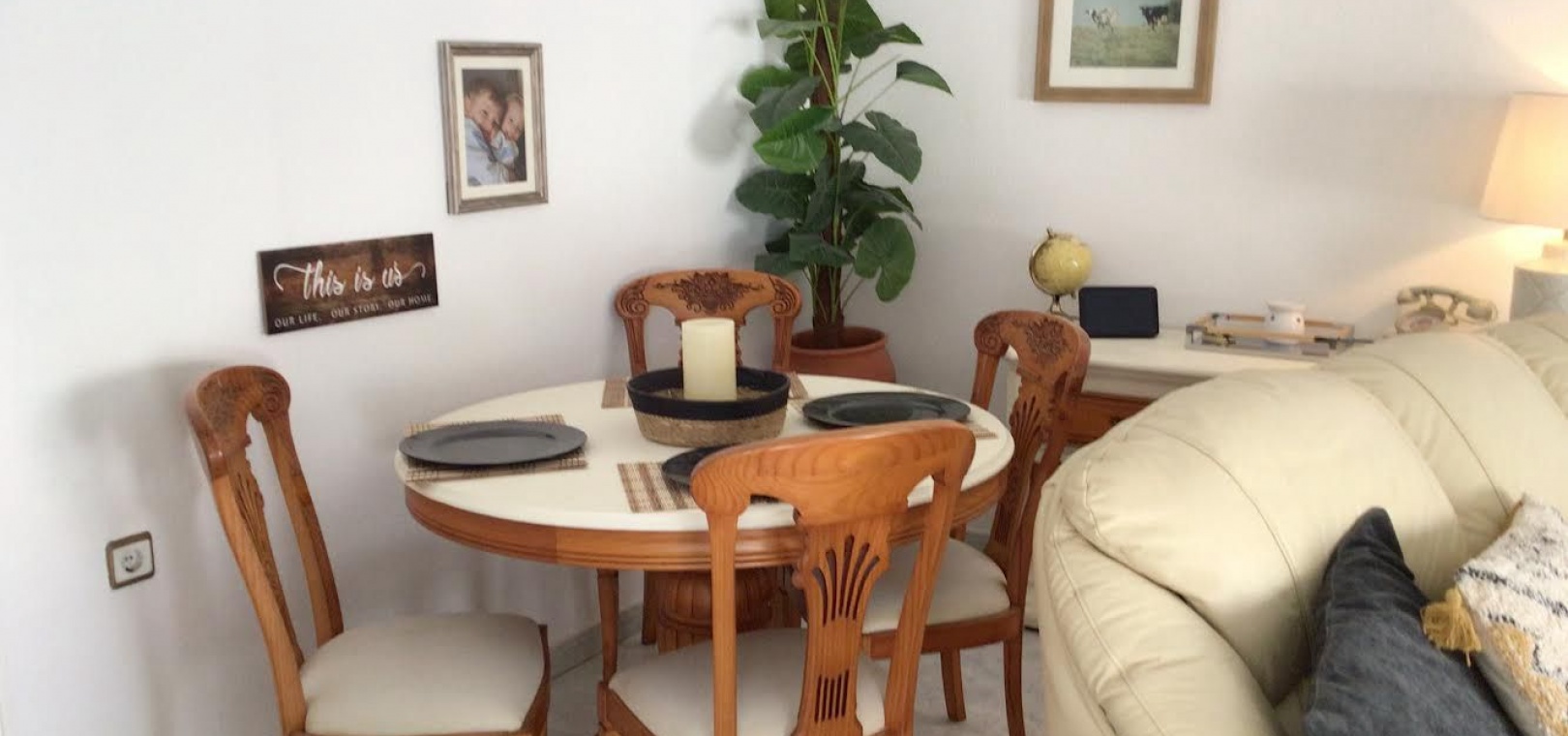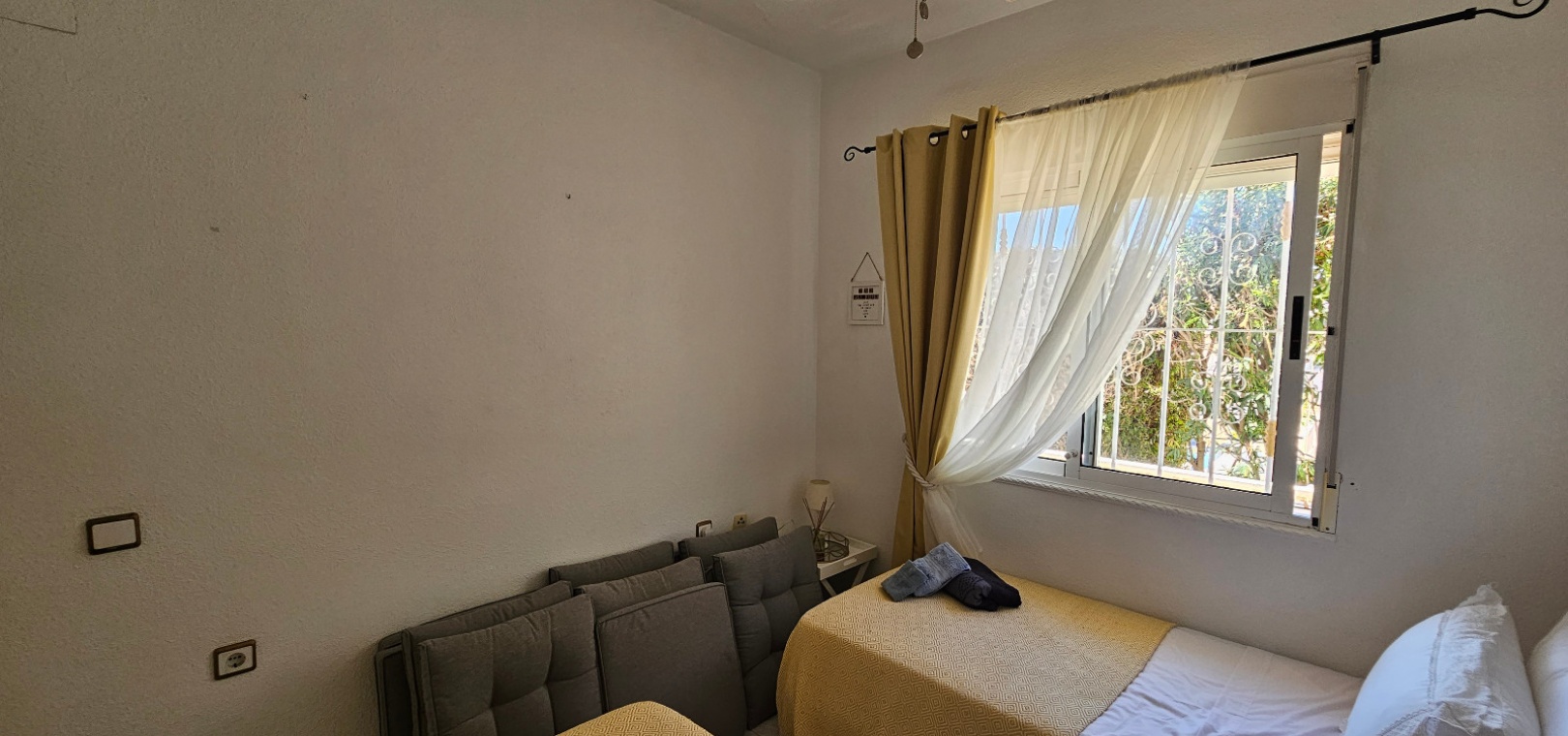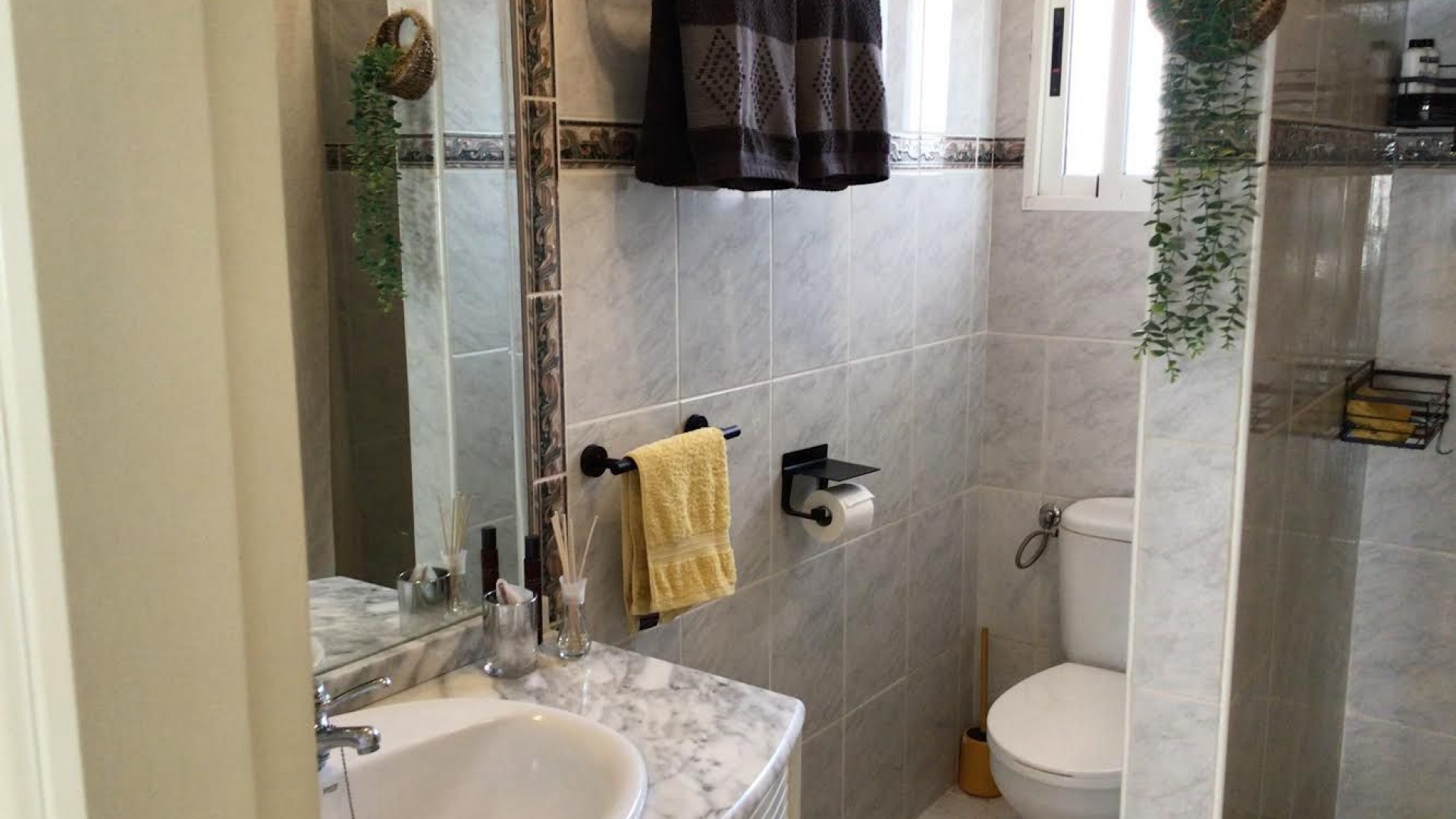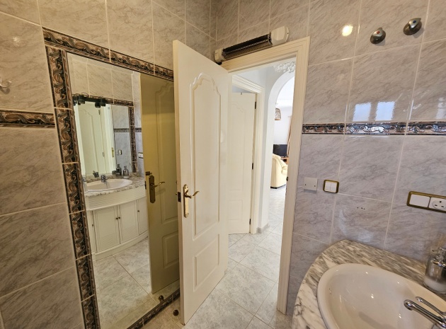 Inne i fastigheten hittar du ett stort vardagsrum/matsal, ett kök med öppen planlösning med varm och kall A/C, 2 x stora dubbelrum med inbyggda garderober och takfläktar och det största sovrummet har ett eget duschrum och varm- och kall A/C. Det finns också ett familjeduschrum som delvis har moderniserats.