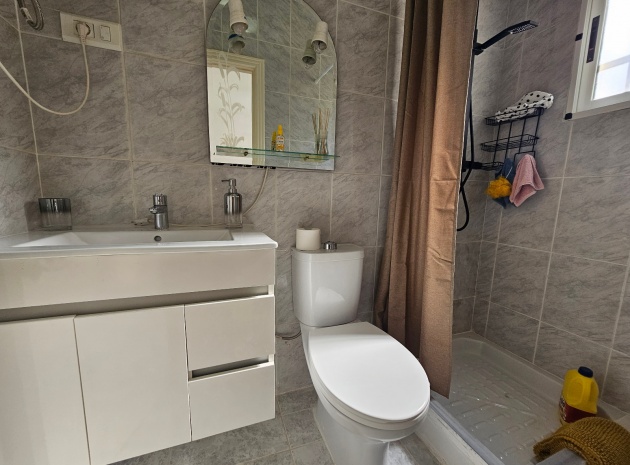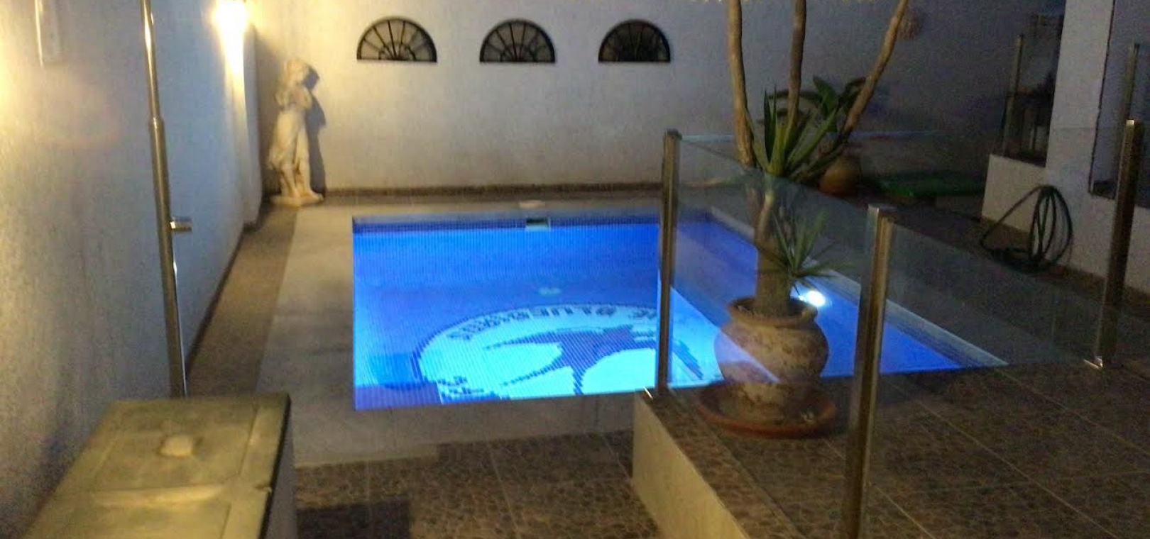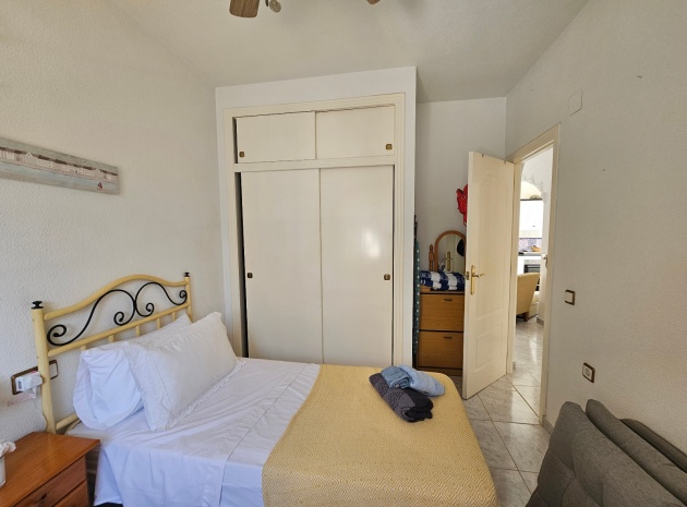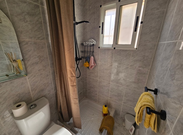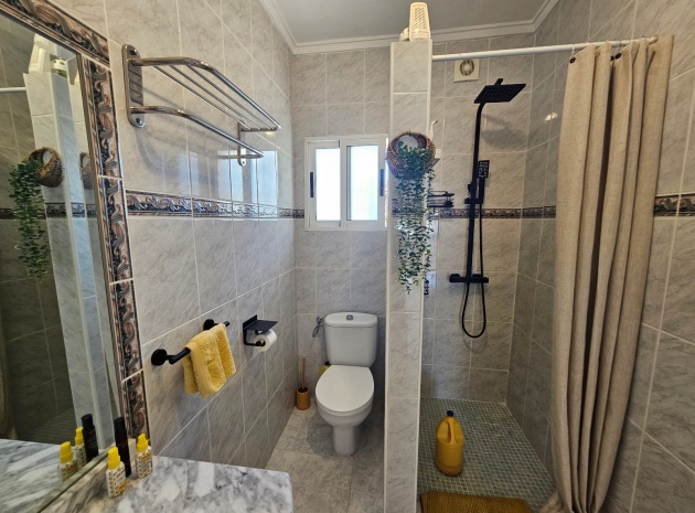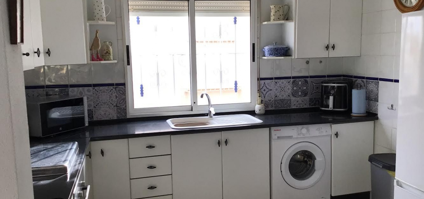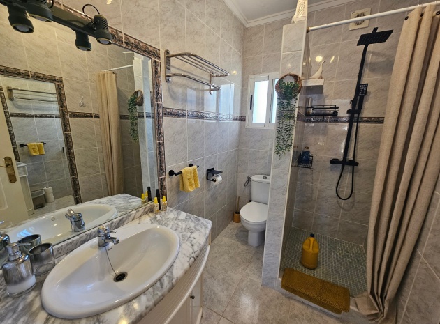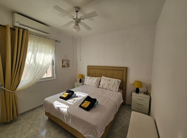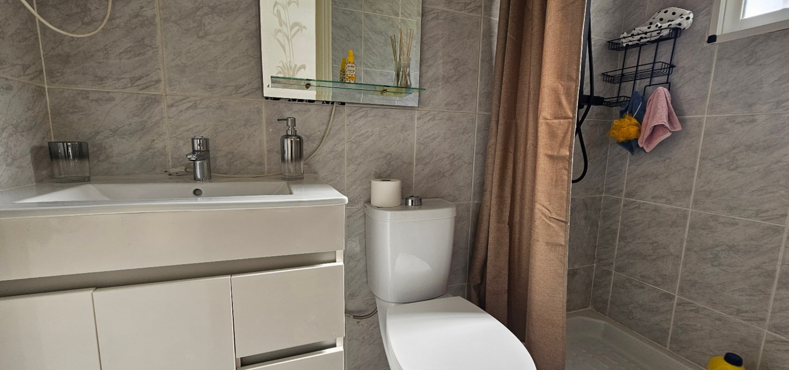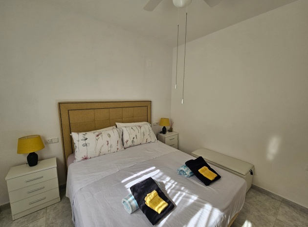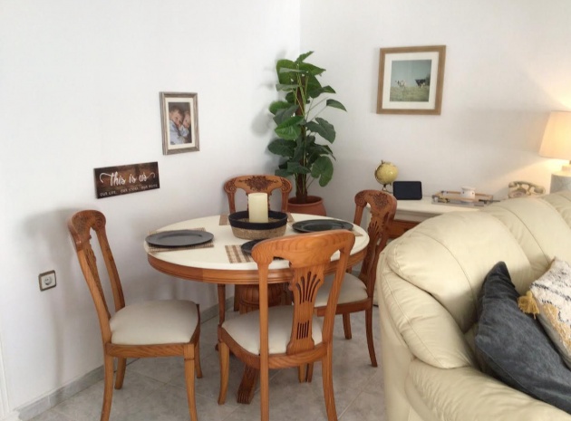 Inne i fastigheten hittar du ett stort vardagsrum/matsal, ett kök med öppen planlösning med varm och kall A/C, 2 x stora dubbelrum med inbyggda garderober och takfläktar och det största sovrummet har ett eget duschrum och varm- och kall A/C. Det finns också ett familjeduschrum som delvis har moderniserats.