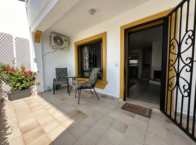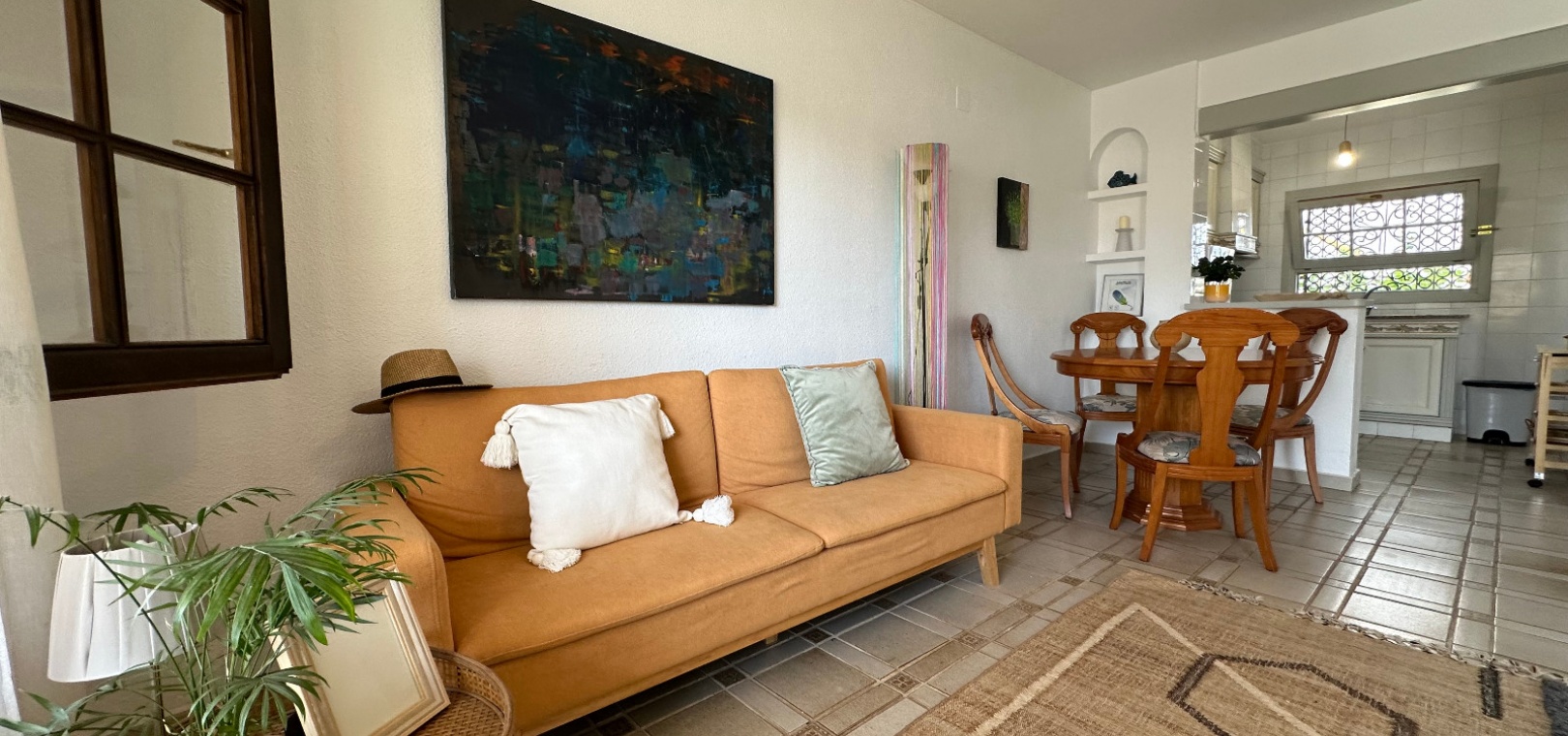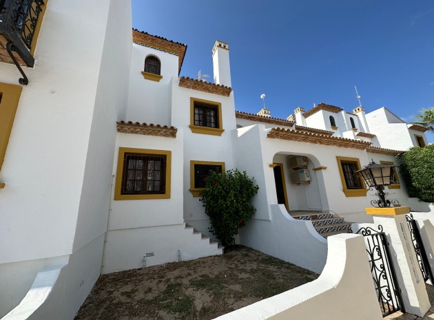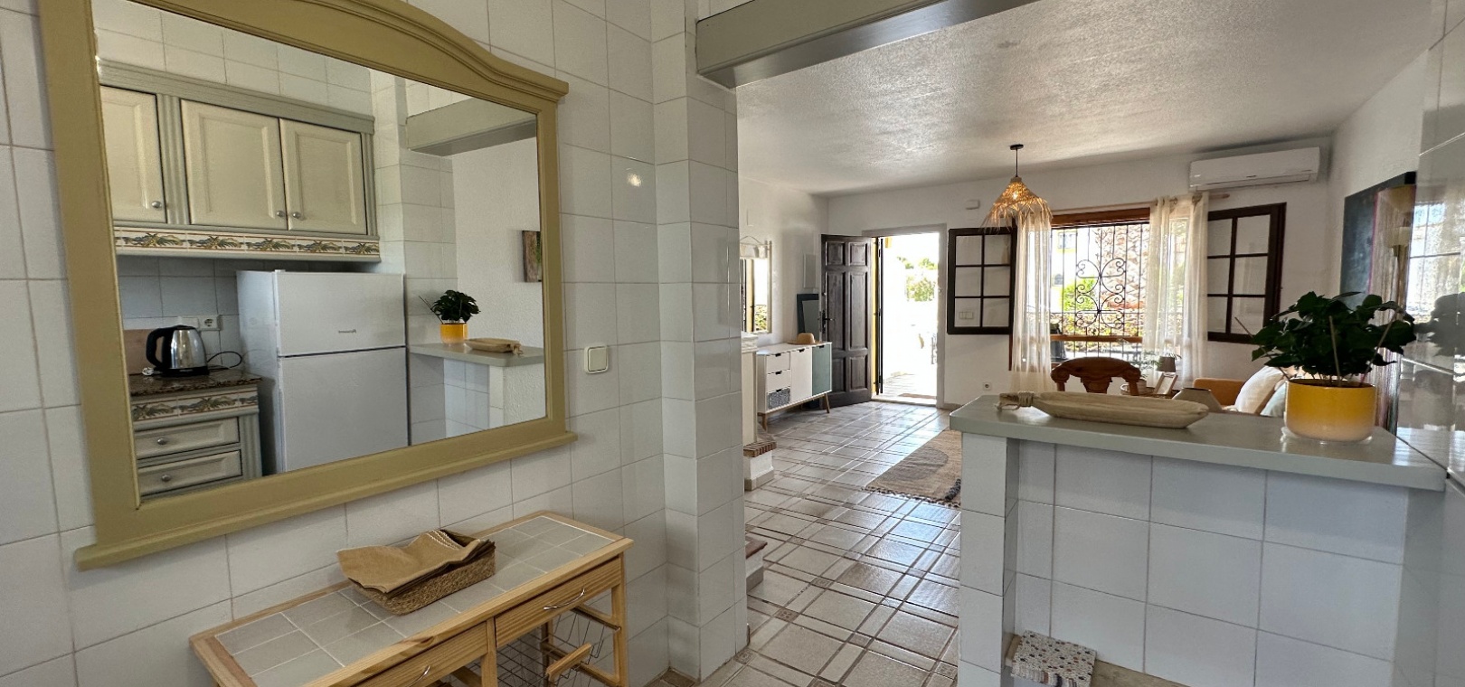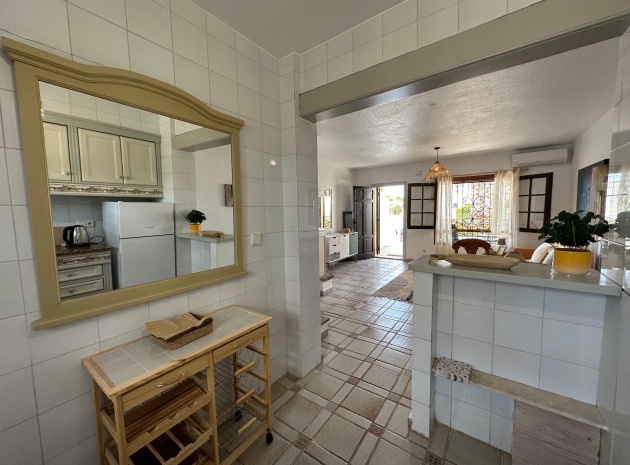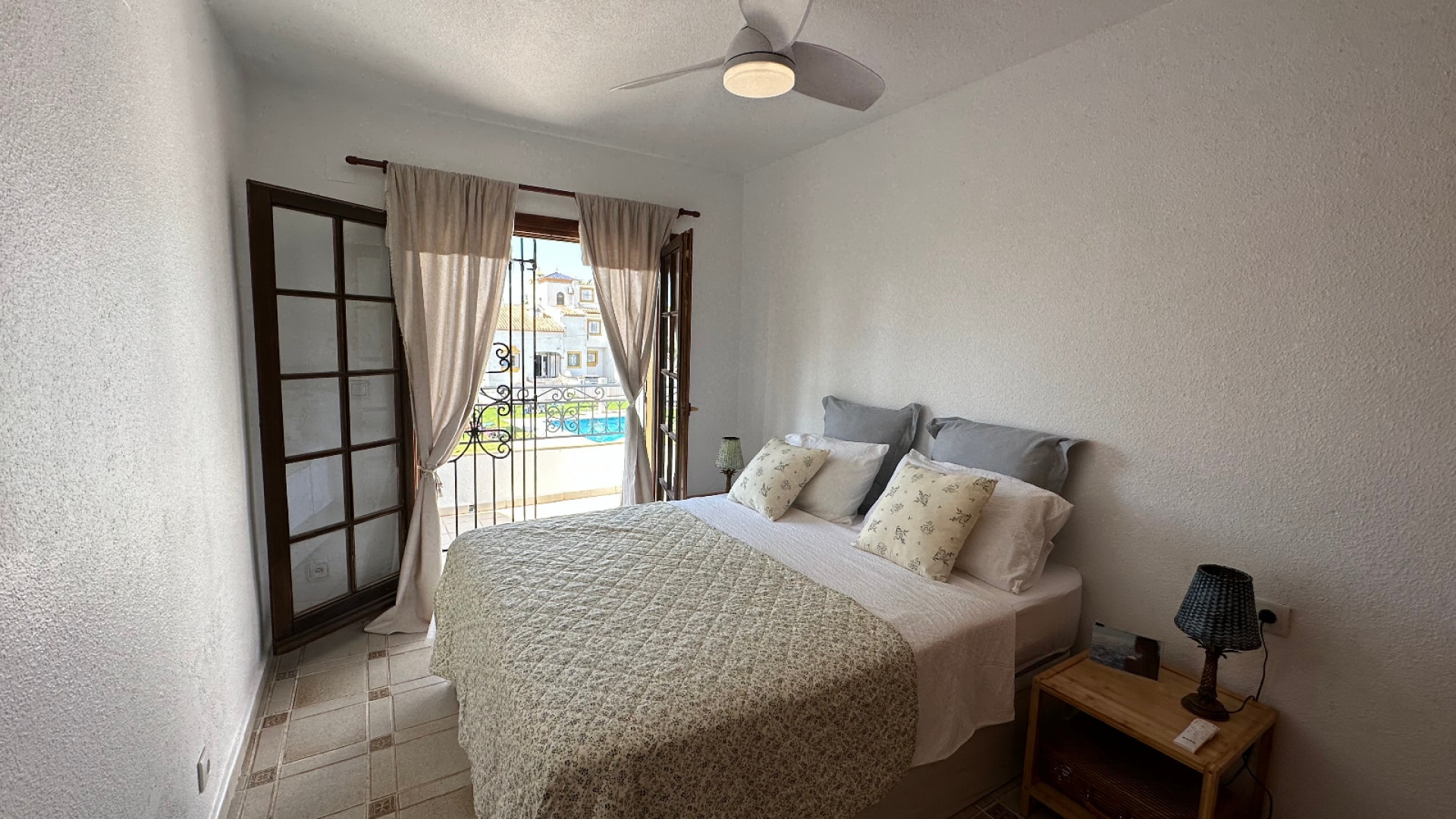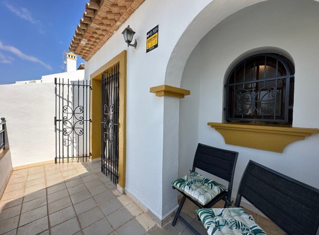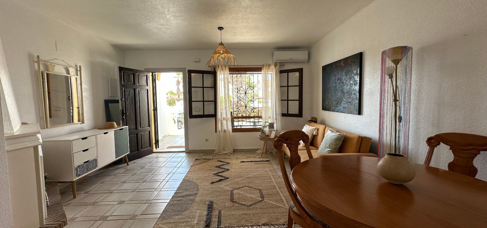 Ett radhus i söderläge med 2 sovrum och 1,5 badrum i Sofia stil med ett privat takterrass med utsikt över den gemensamma poolen i Valencias, Villamartin, Costa Blanca.