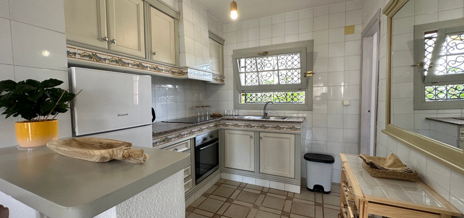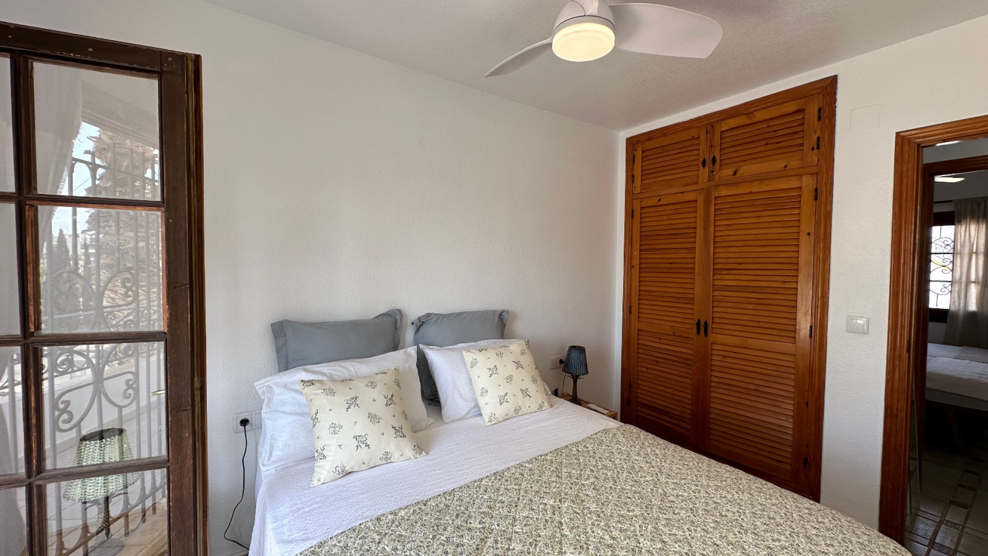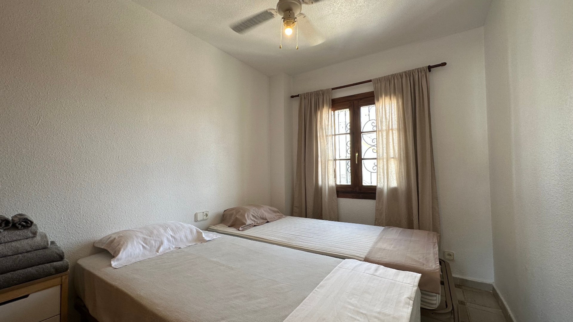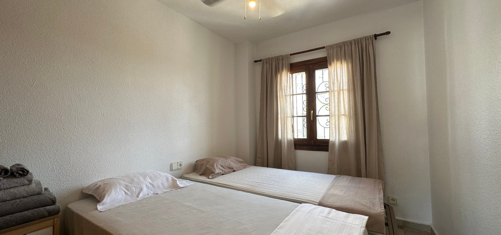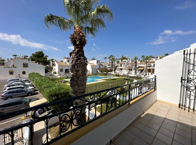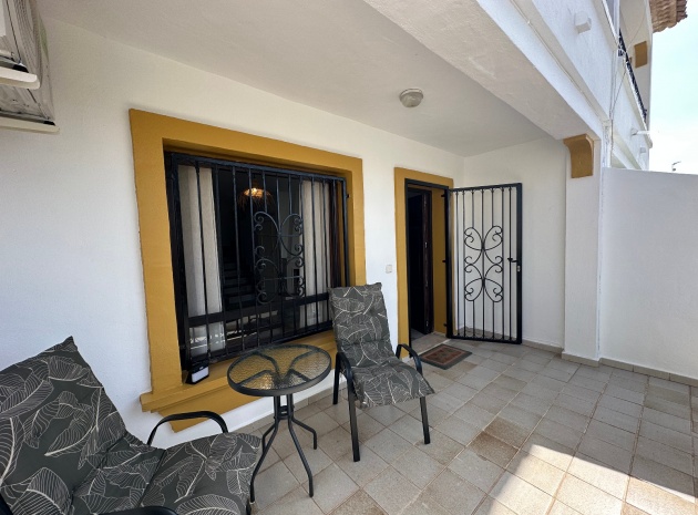 Ett radhus i söderläge med 2 sovrum och 1,5 badrum i Sofia stil med ett privat takterrass med utsikt över den gemensamma poolen i Valencias, Villamartin, Costa Blanca.