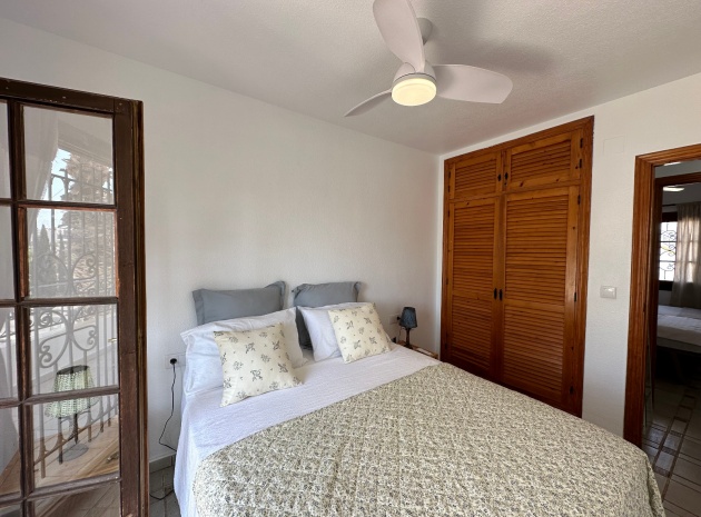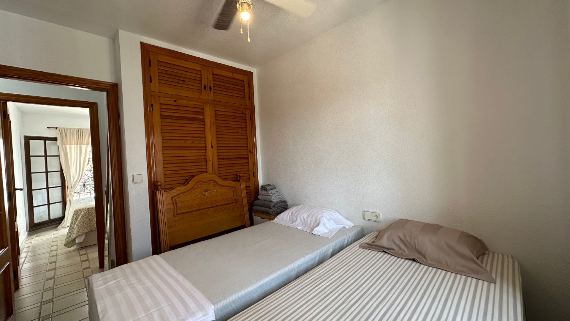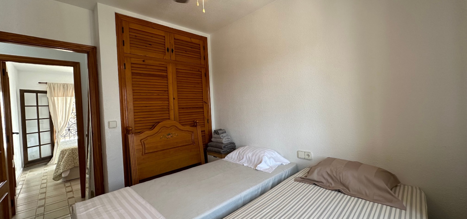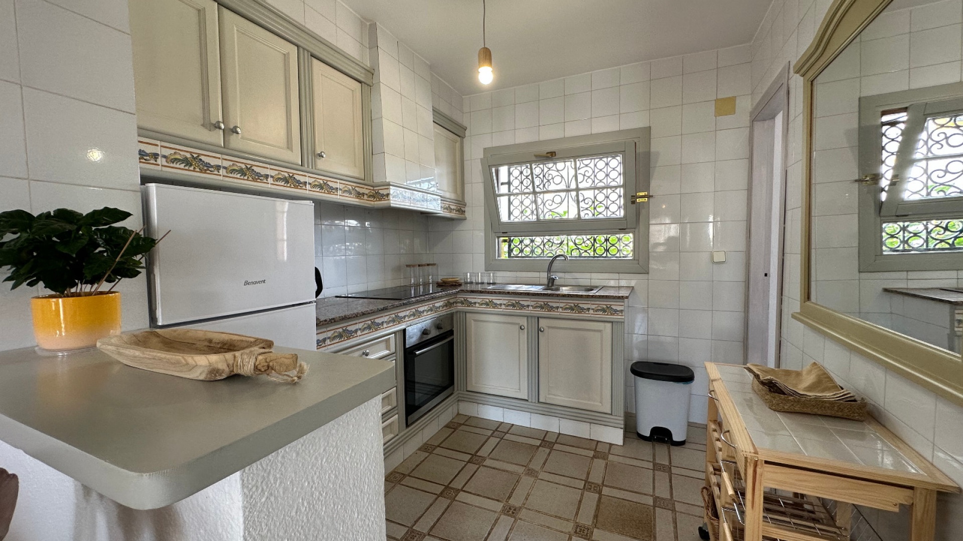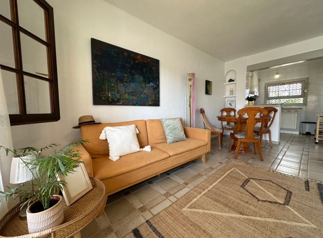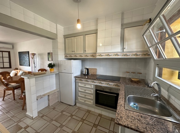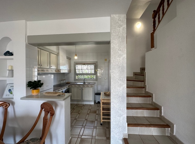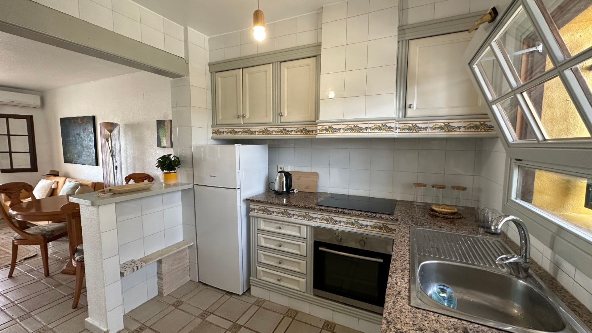 Ett radhus i söderläge med 2 sovrum och 1,5 badrum i Sofia stil med ett privat takterrass med utsikt över den gemensamma poolen i Valencias, Villamartin, Costa Blanca.