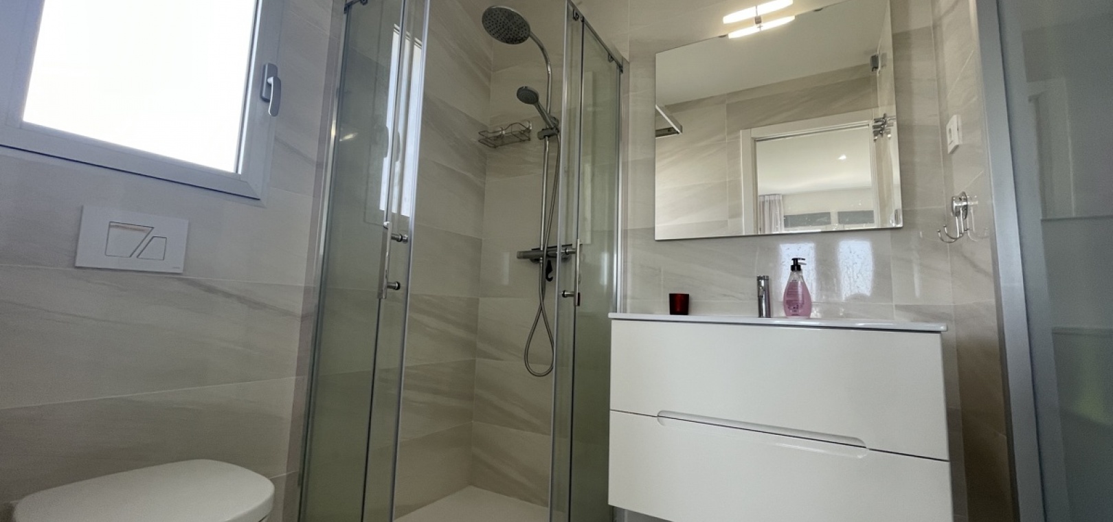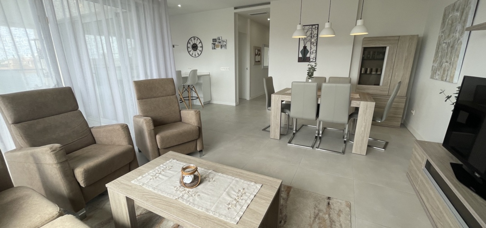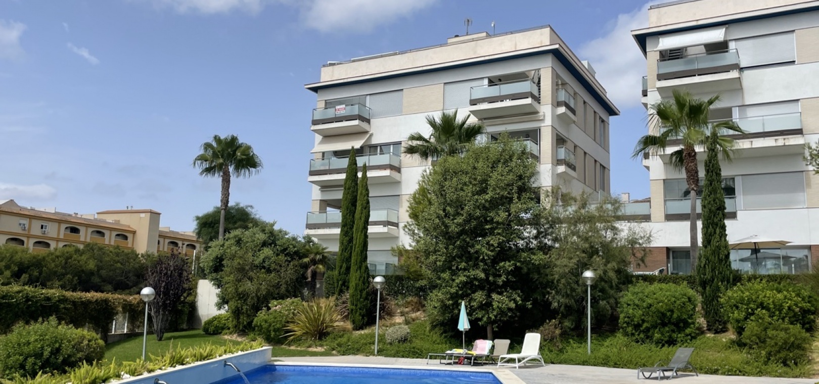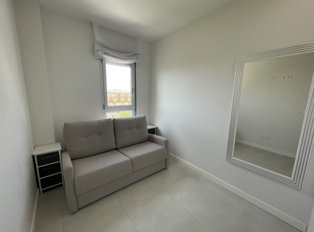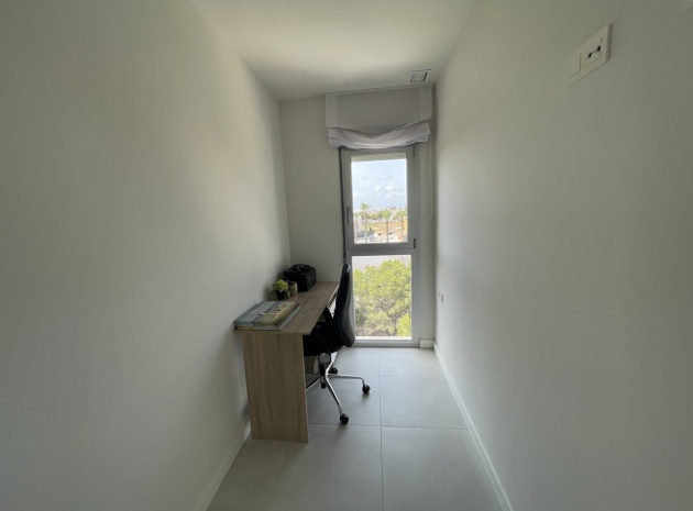 En lyxig lägenhet på översta våningen med 3 bäddar och 2 badrum i sydost med ett privat takterrass i Res. Mirador de Villamartin, Los Dolses, Villamartin, Costa Blanca. Denna härliga fastighet i modern stil säljs i nyskick, säljs möblerad och består mycket kortfattat av följande: - Stort vardagsrum/matsal, kök med öppen planlösning, 2 x dubbelrum med inbyggda garderober, 1 x enkelrum, det största Sovrummet har ett eget duschrum, 1 x moderna duschrum, stor inglasad terrass på framsidan, stort privat takterrass med öppen utsikt, 2 x gemensamma pooler och trädgårdar, gemensam parkering och mycket mer. Denna fastighet är idealiskt belägen inom gångavstånd till affärer, barer och restauranger. Stränderna i La Zenia och Playa Flamenca ligger bara några minuter bort med bil - liksom köpcentret Zenia Boulevard. Alicantes flygplats ligger 50 minuters bilresa bort.