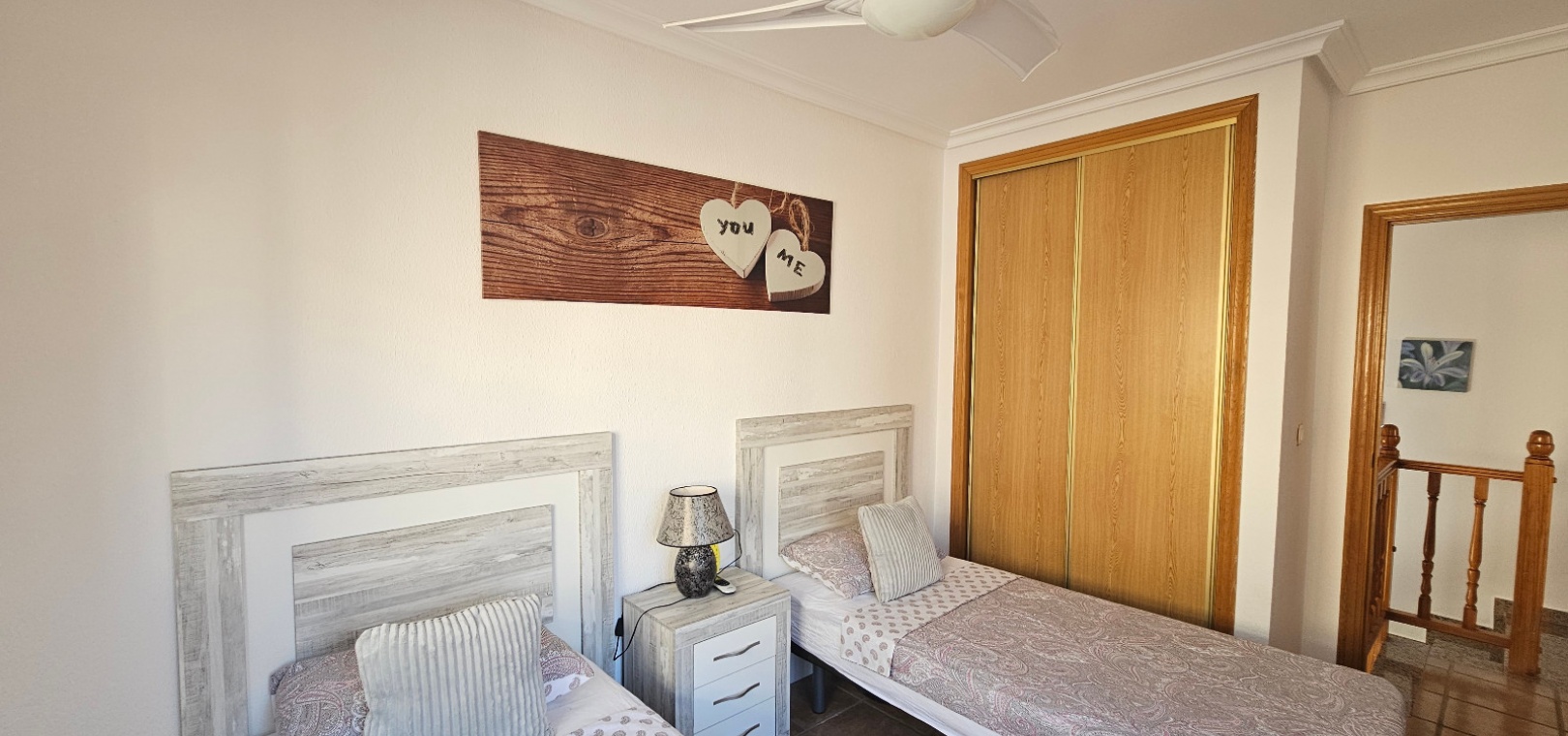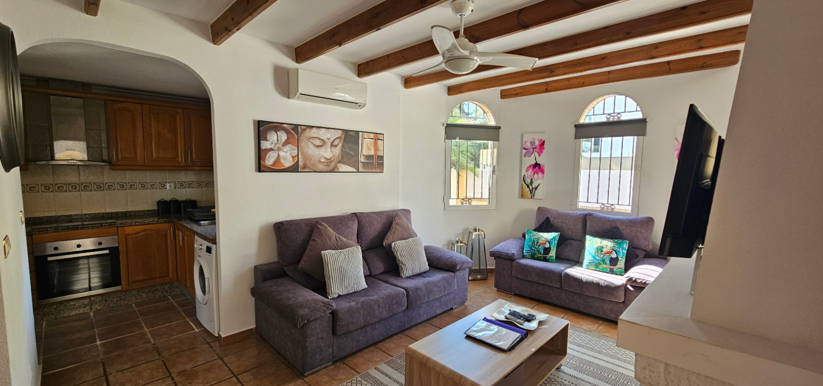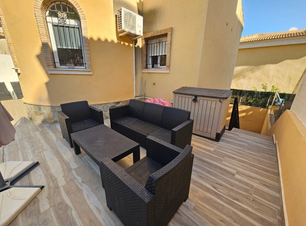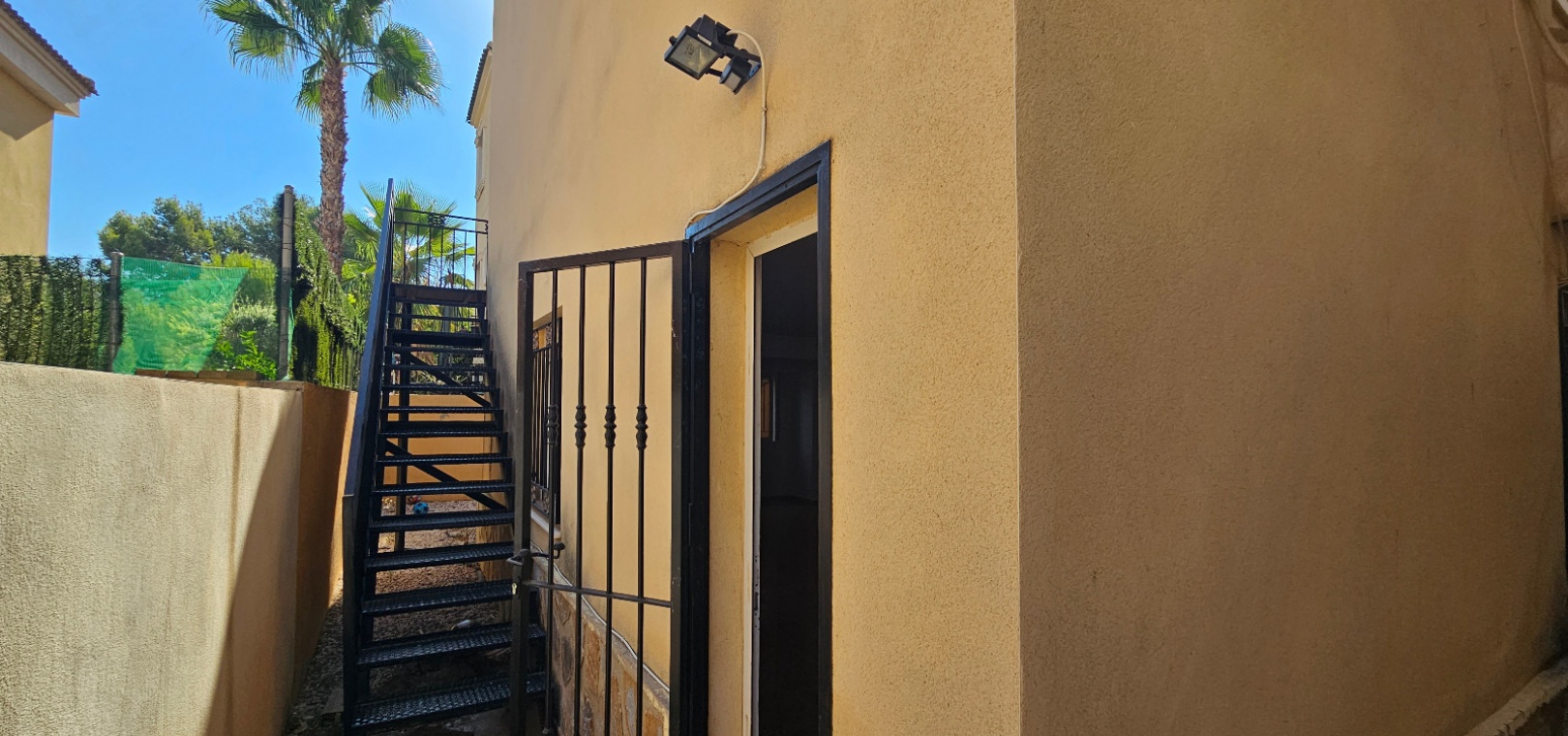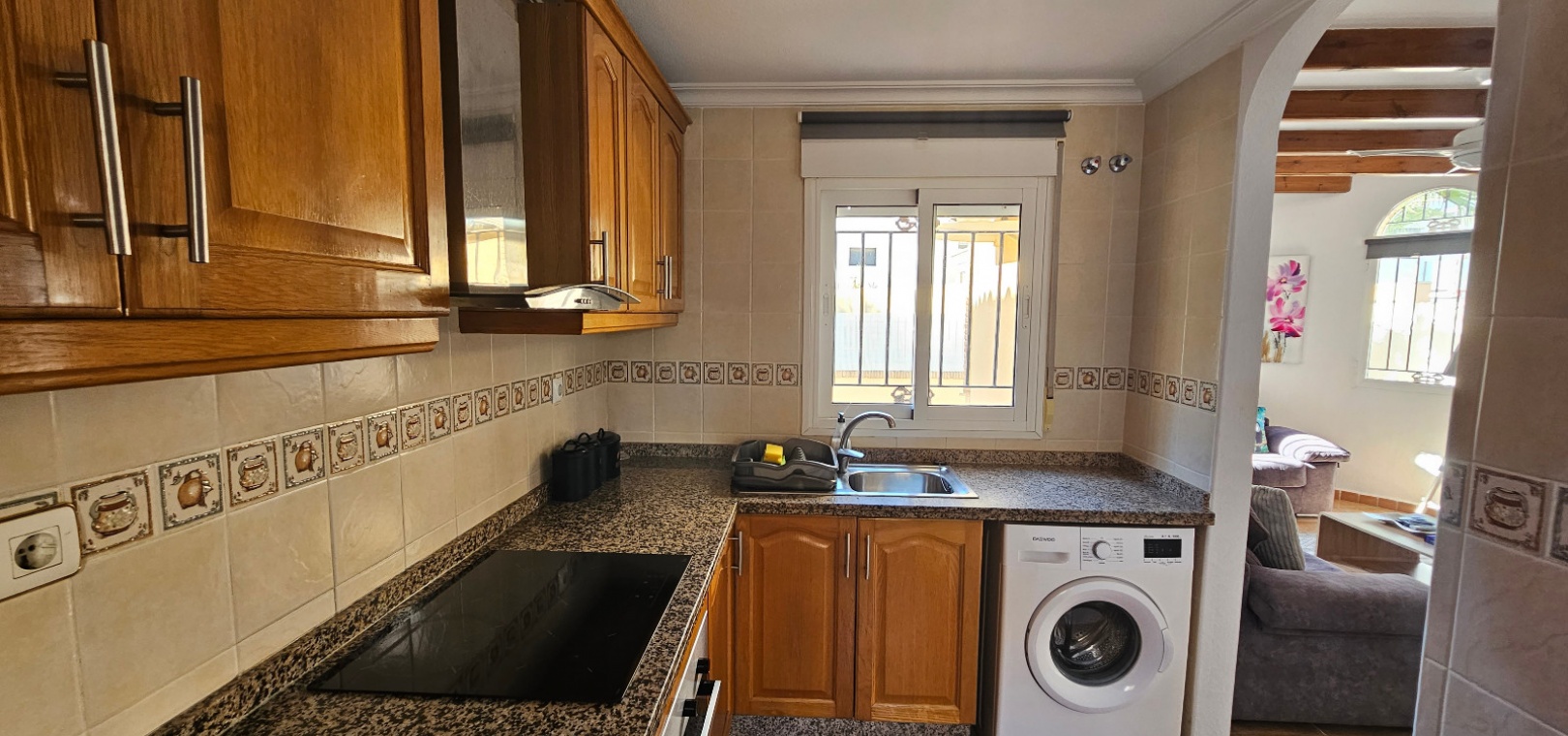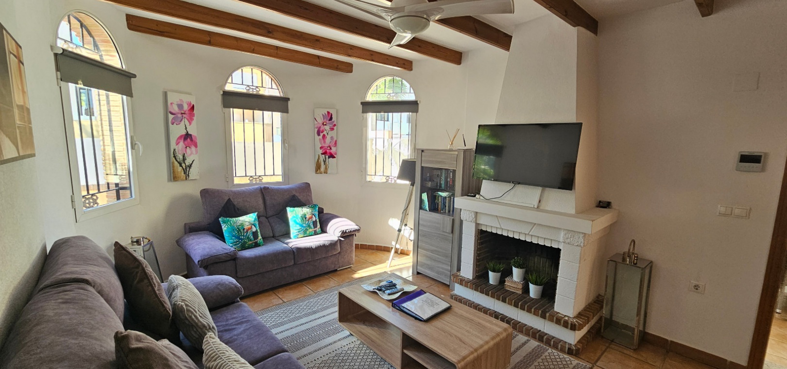 En fristående villa med 3 sovrum och 2 badrum i söderläge med privat pool i Las Filipinas, Villamartin, Costa Blanca. Denna härliga fastighet ligger i en återvändsgränd och säljs i mycket gott skick, säljs möblerad och består mycket kortfattat av följande:- På bottenvåningen finns en lounge/matsal med varm och kall A/C , en takfläkt och träbjälkar i taket, ett fullt utrustat kök i öppen planlösning, 1 x dubbelrum med inbyggda garderober, varm och kall luftkonditionering och takfläkt och 1 x duschrum. På första våningen finns 2 x stora dubbelrum båda med inbyggda garderober, varm och kall A/C, takfläktar och privata balkonger och 1 x familjebadrum. Utanför finns en inglasad terrass på framsidan, nykaklat trädgårdsområde med privat pool och mycket mycket mer. Det finns också en stor underbyggnad med en separat entré med ett stort vardagsrum/matrum, 1 x duschrum och 1 x litet sovrum, detta har utmärkt potential att bli en fristående lägenhet. Denna fastighet har utmärkt uthyrnings-/investeringspotential eftersom den har en turistlicens. Denna fastighet ligger bara en kort promenad till alla bekvämligheter, 5 minuter med bil till stranden La Zenia eller så kan du hoppa på lokalbussen, Mindre än 5 minuter med bil till 4 golfbanor och 50 minuter till Alicantes flygplats.