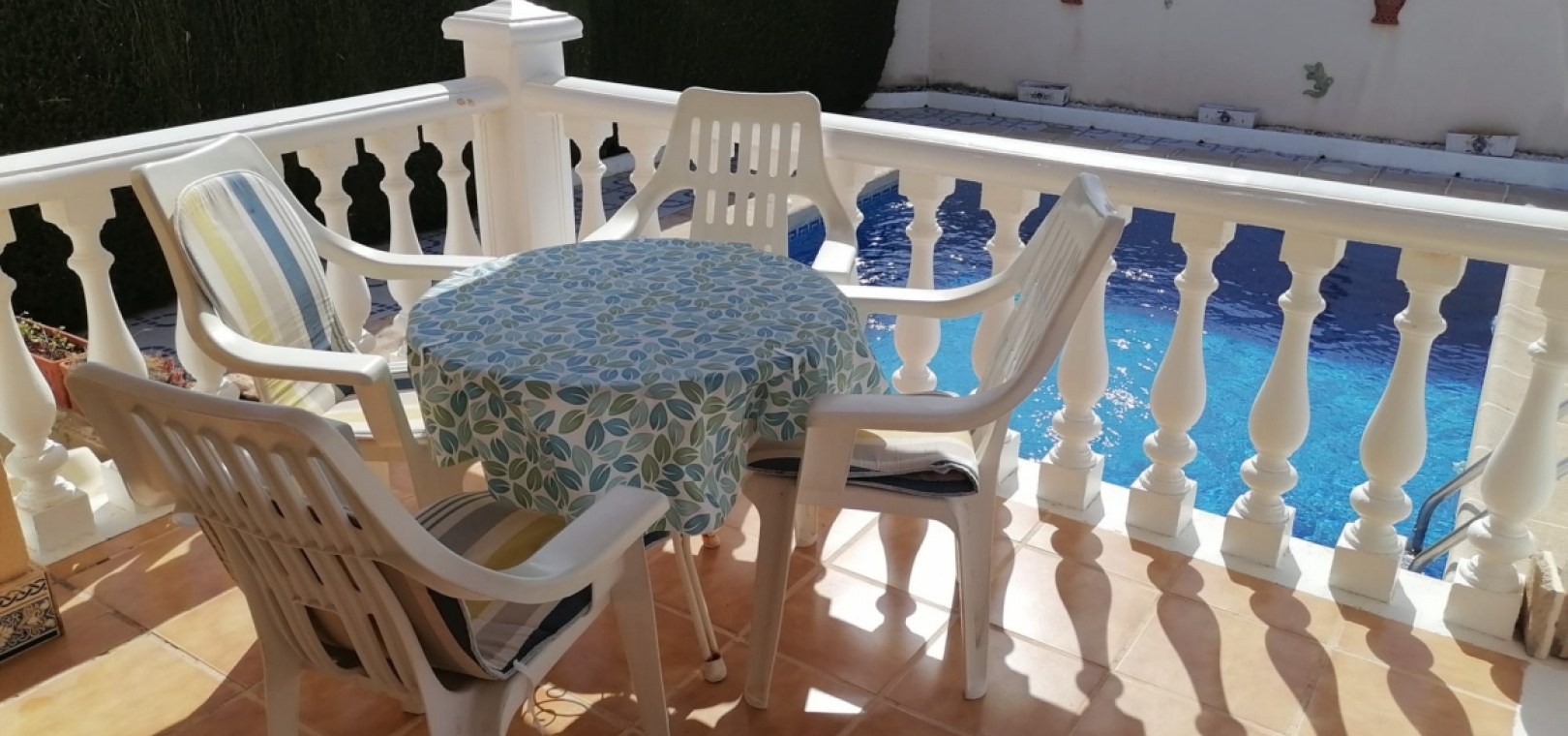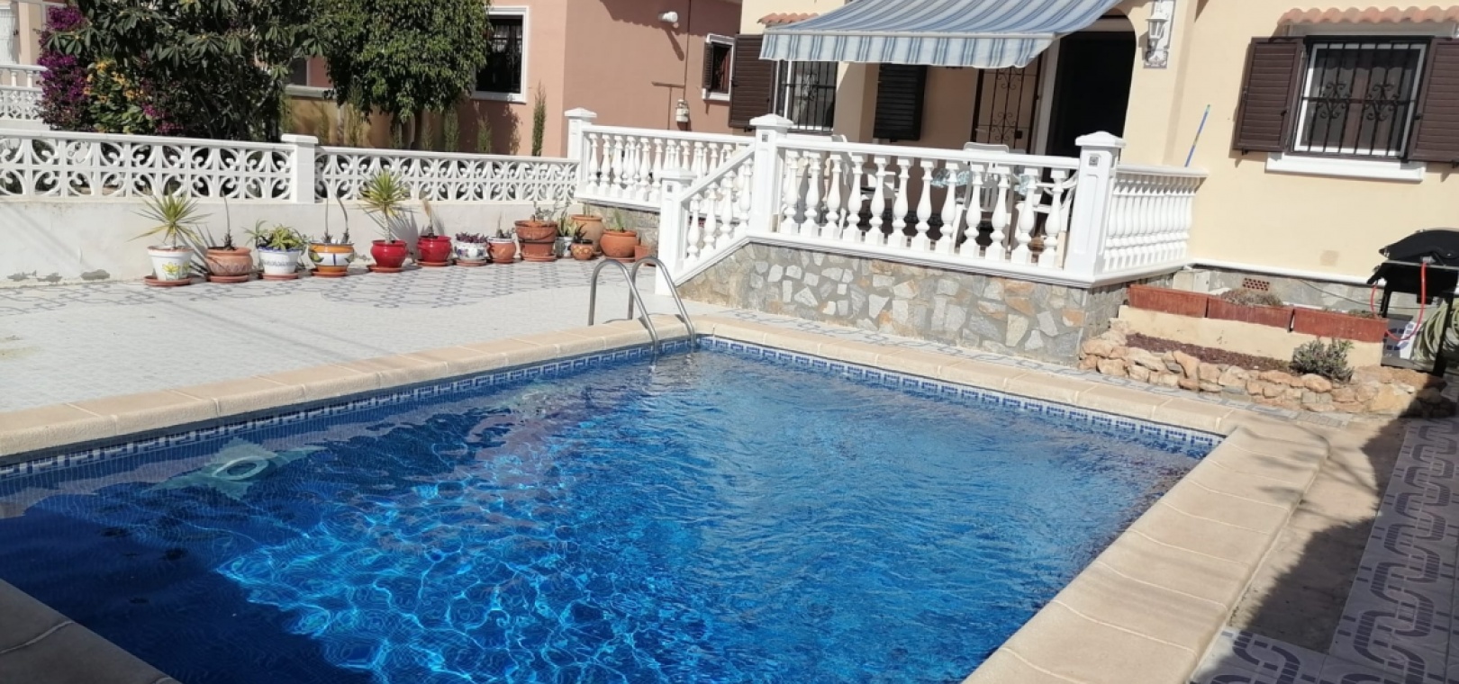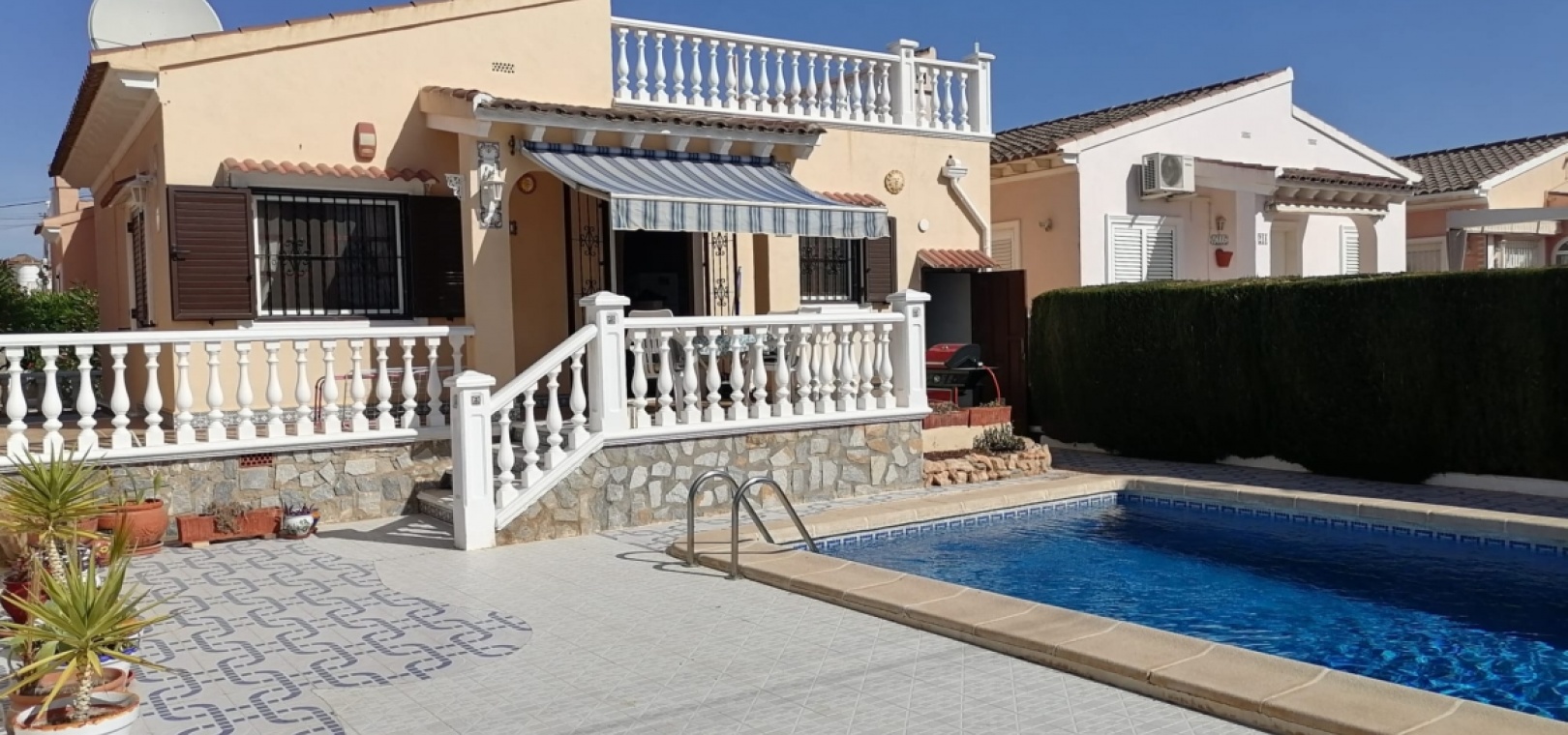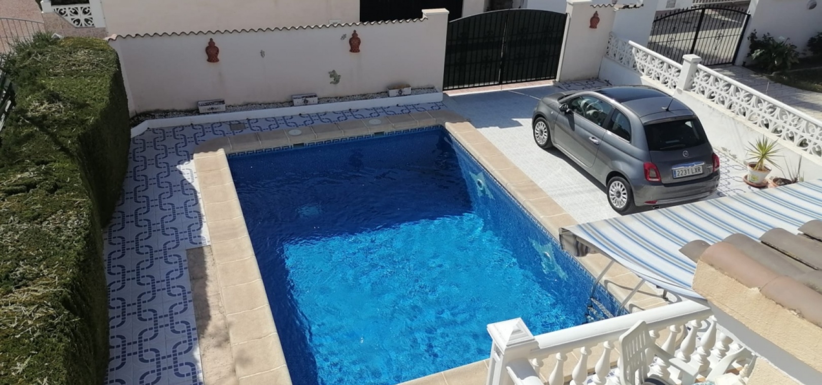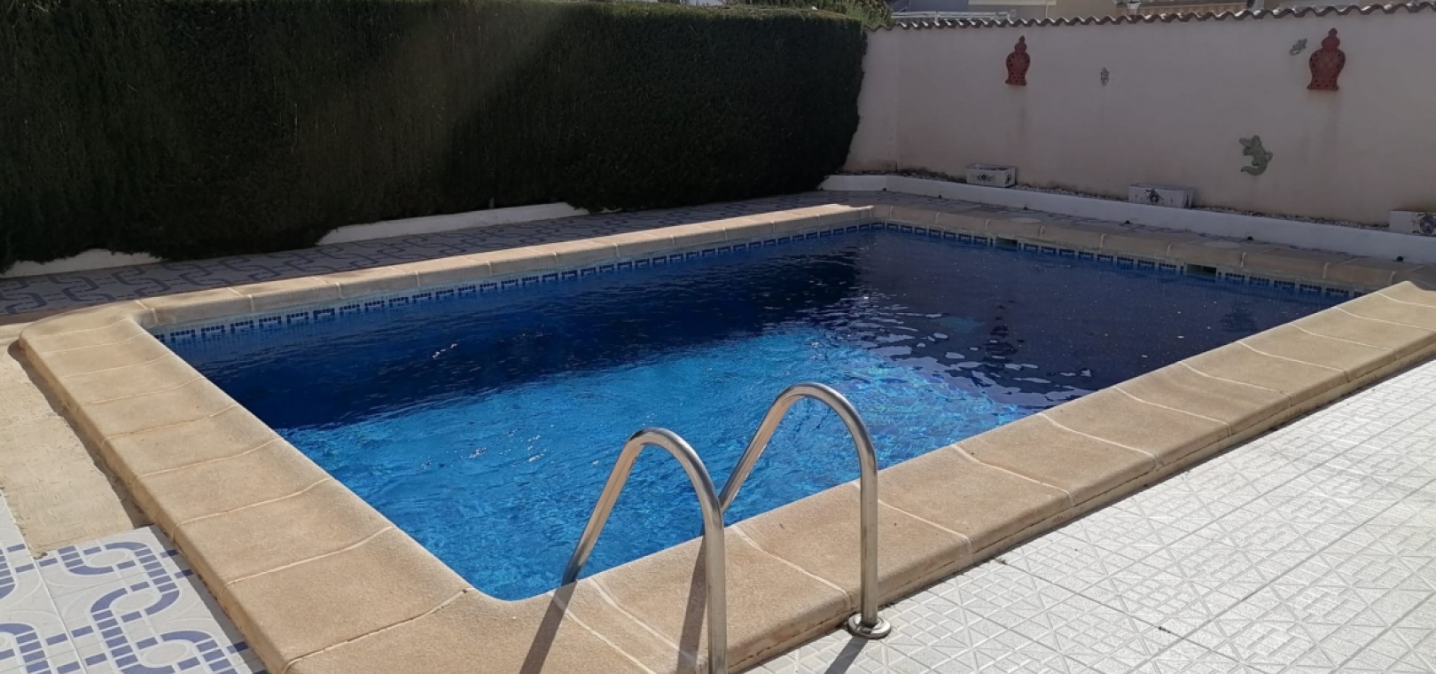 En fristående villa med 2 sovrum och 2 badrum i söderläge med privat pool i Urb Horizonte, Playa Flamenca, Costa Blanca.