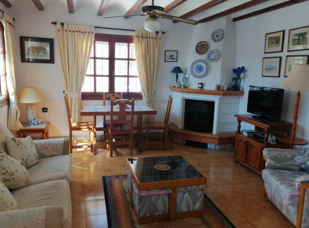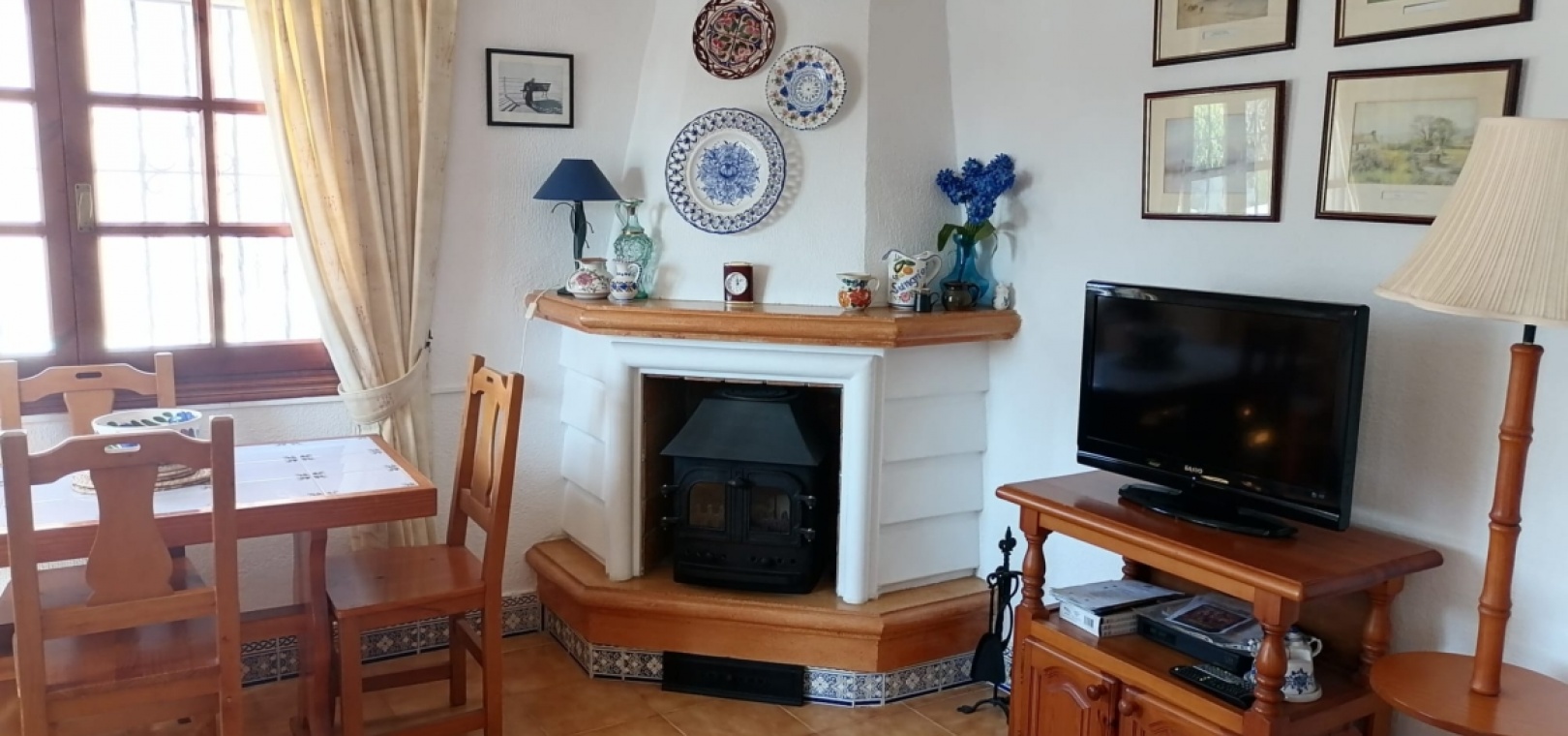 Vardagsrum/matrum med öppen spis och takfläkt, separat fullt utrustat kök, 2 x dubbelrum båda med inbyggda garderober, det största sovrummet har ett eget badrum och 1 x duschrum.