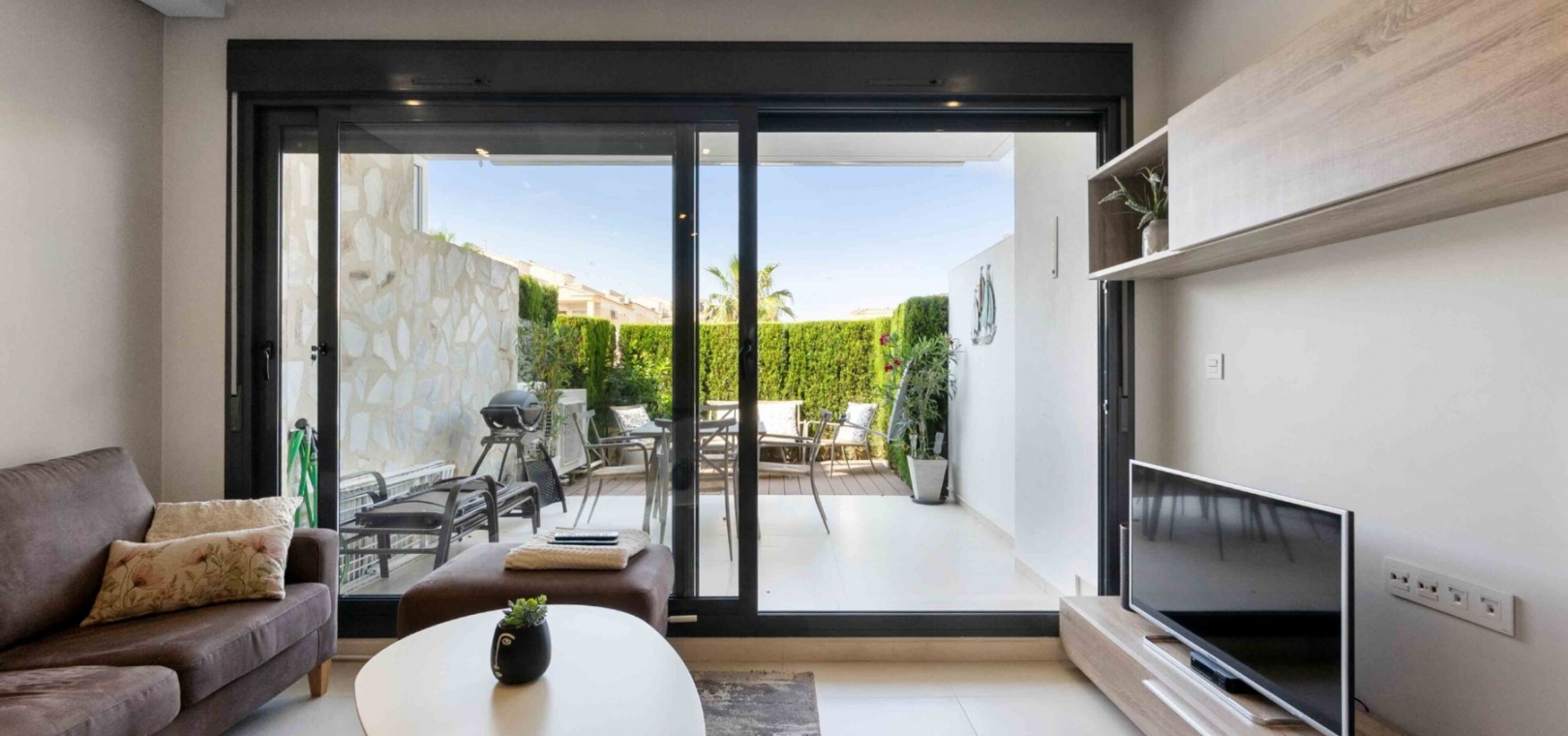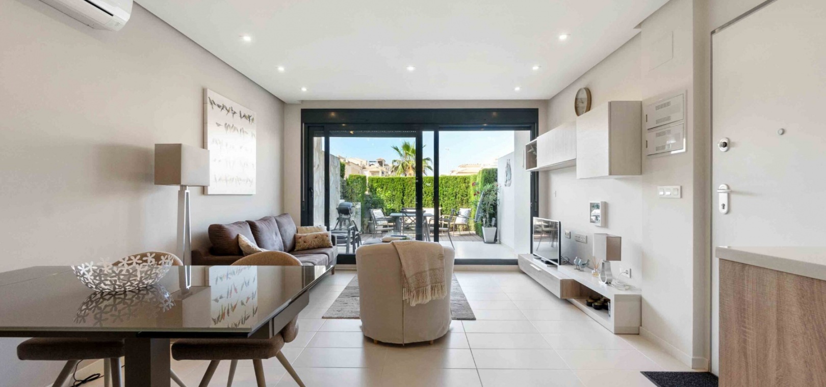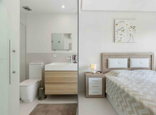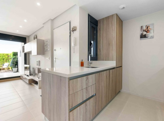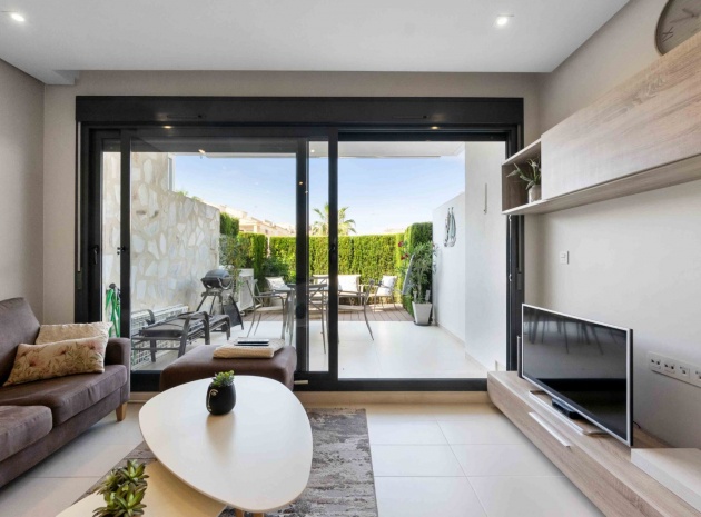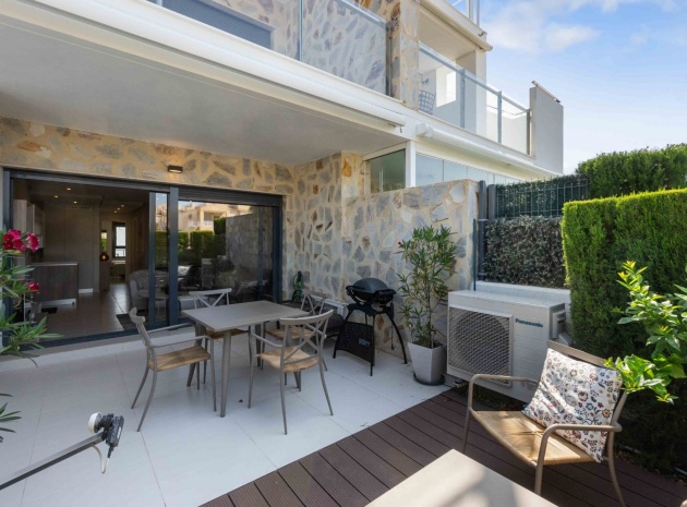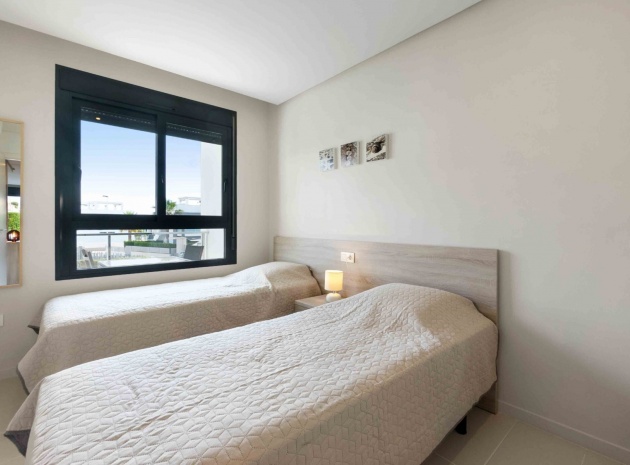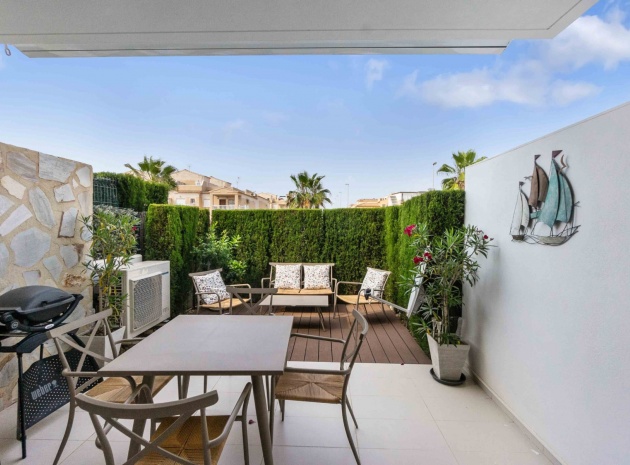 En lägenhet i sydvästläge med 2 sovrum och 2 badrum i modern stil på bottenvåningen belägen i Res. La Ceñuela, Punta Prima, Costa Blanca. Denna underbara lägenhet är färdig till den allra högsta specifikationen med endast högkvalitativa produkter och material. Den säljs i utmärkt skick, säljs delvis möblerad och består mycket kortfattat av följande: - Lounge / matsal med varm och kall A/C, öppen planlösning med fullt utrustat kök, 2 x dubbelrum båda med inbyggda garderober, det stora sovrummet har ett eget duschrum, 1 x gästduschrum, täckt terrass på framsidan, trädgård på framsidan, vackert designade gemensamma trädgårdar och gemensamma pooler, varm och kall A/C, underjordisk parkeringsplats och förråd, säker gated community och mycket mer. Denna fantastiska fastighet ligger bara några minuters promenad från Punta Marinas kommersiella centrum där du hittar många barer, butiker och restauranger och sedan är det bara ytterligare 700 meter ner till stranden. Denna fastighet ligger 10 minuters bilresa från 4 mästerskapsgolfbanor och 45 minuter från Alicantes flygplats.