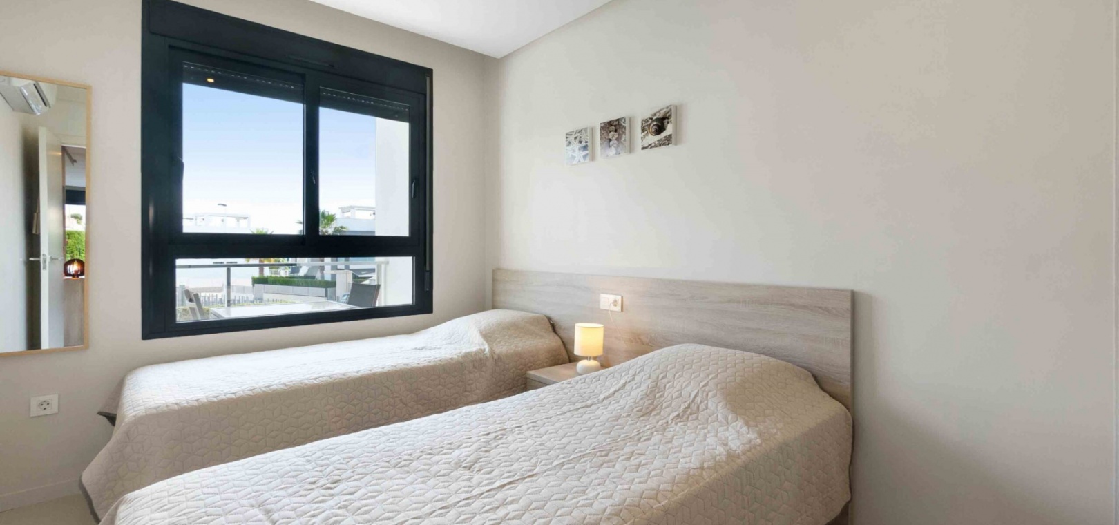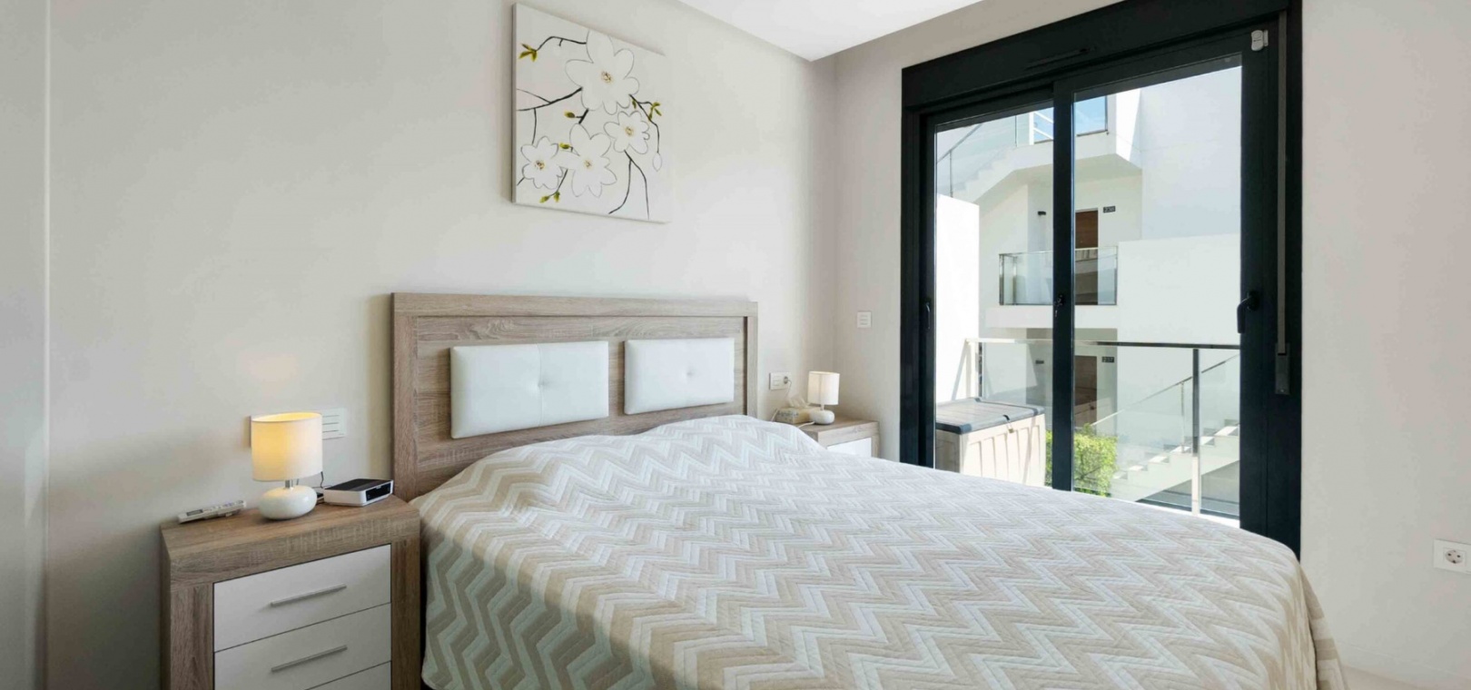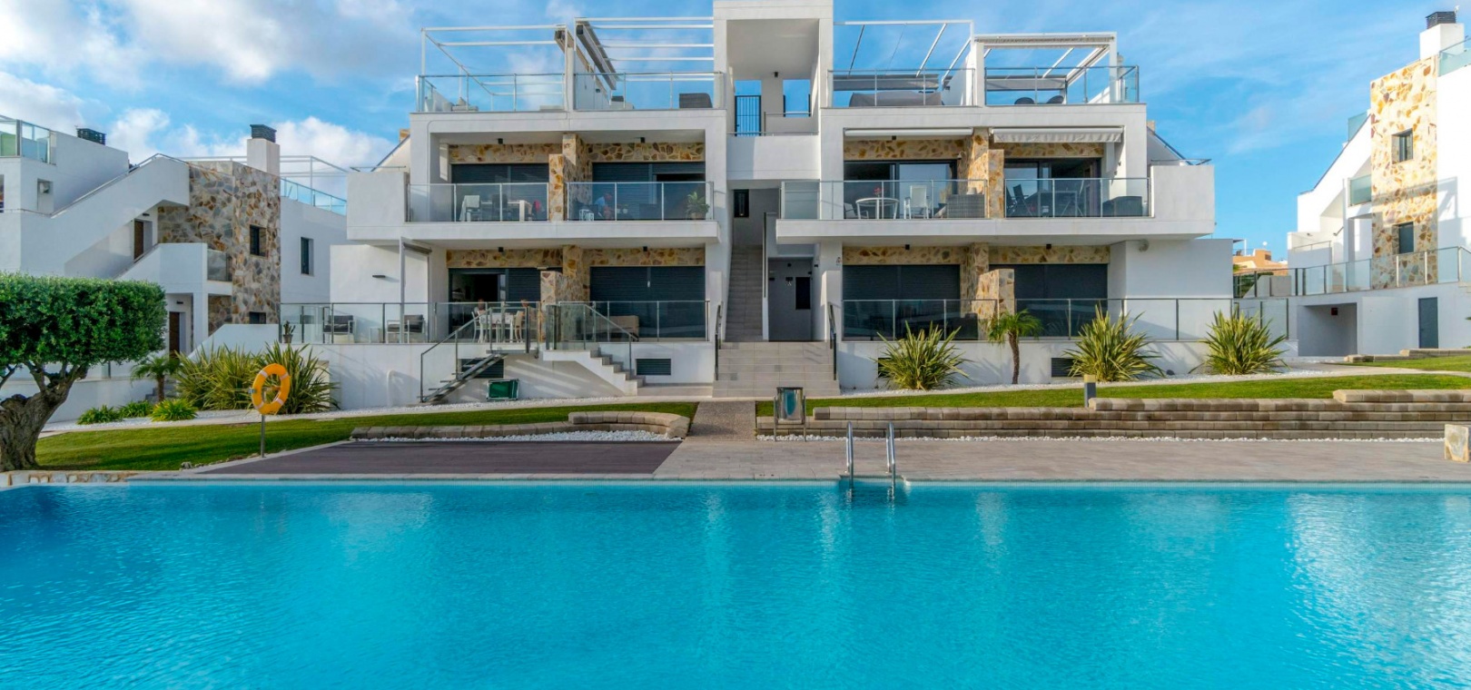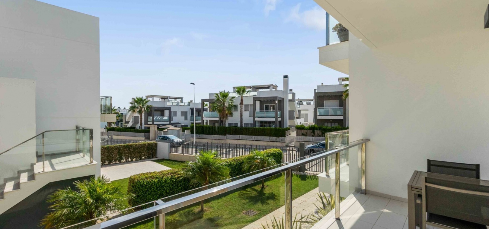En lägenhet i sydvästläge med 2 sovrum och 2 badrum i modern stil på bottenvåningen belägen i Res. La Ceñuela, Punta Prima, Costa Blanca. Denna underbara lägenhet är färdig till den allra högsta specifikationen med endast högkvalitativa produkter och material. Den säljs i utmärkt skick, säljs delvis möblerad och består mycket kortfattat av följande: - Lounge / matsal med varm och kall A/C, öppen planlösning med fullt utrustat kök, 2 x dubbelrum båda med inbyggda garderober, det stora sovrummet har ett eget duschrum, 1 x gästduschrum, täckt terrass på framsidan, trädgård på framsidan, vackert designade gemensamma trädgårdar och gemensamma pooler, varm och kall A/C, underjordisk parkeringsplats och förråd, säker gated community och mycket mer. Denna fantastiska fastighet ligger bara några minuters promenad från Punta Marinas kommersiella centrum där du hittar många barer, butiker och restauranger och sedan är det bara ytterligare 700 meter ner till stranden. Denna fastighet ligger 10 minuters bilresa från 4 mästerskapsgolfbanor och 45 minuter från Alicantes flygplats.