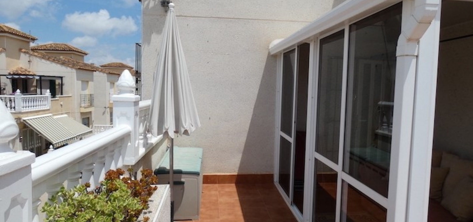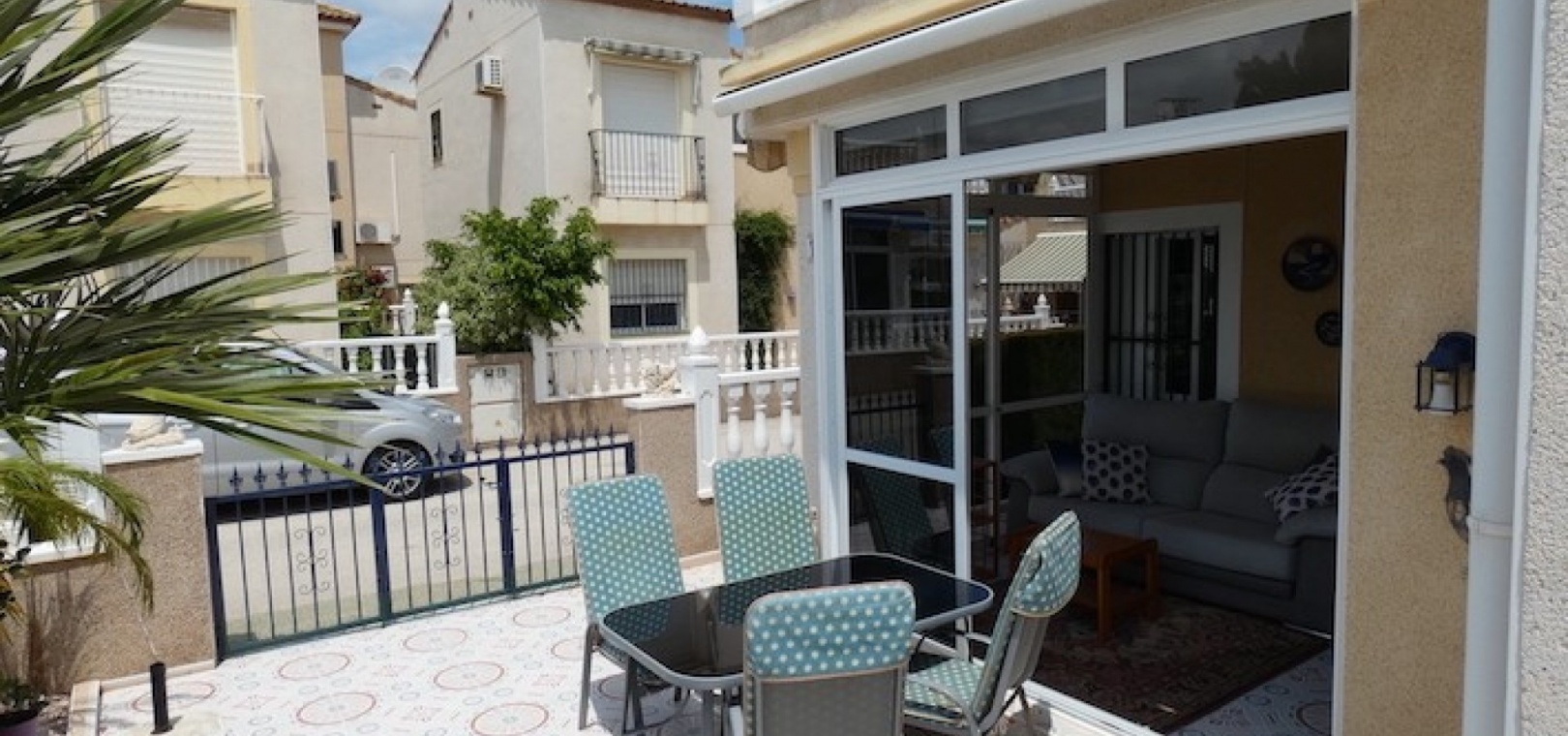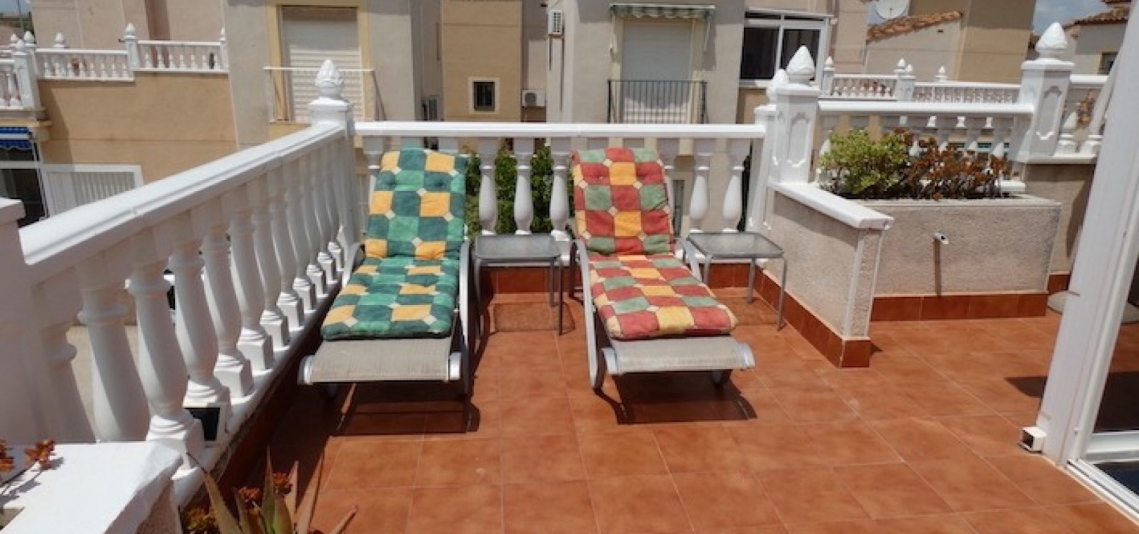Ett parhus med 3 sovrum och 2 badrum i söderläge med ett privat takterrass i Res. Montebello, Algorfa, Costa Blanca.