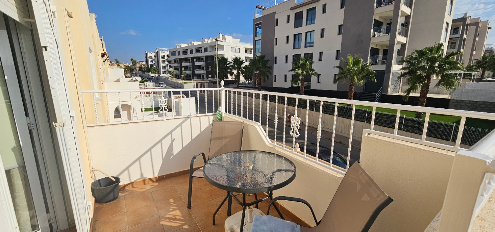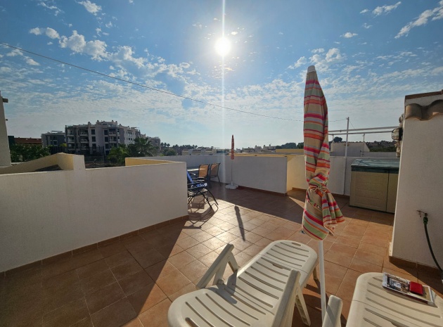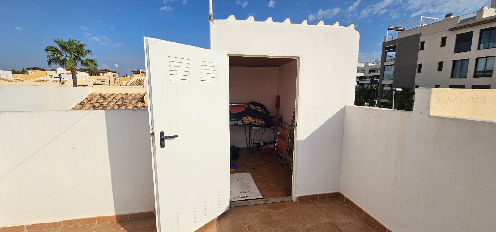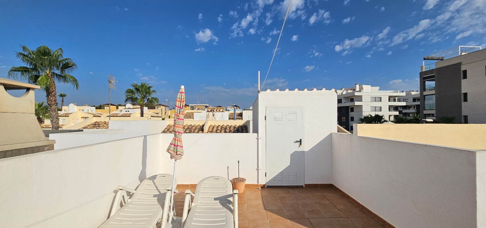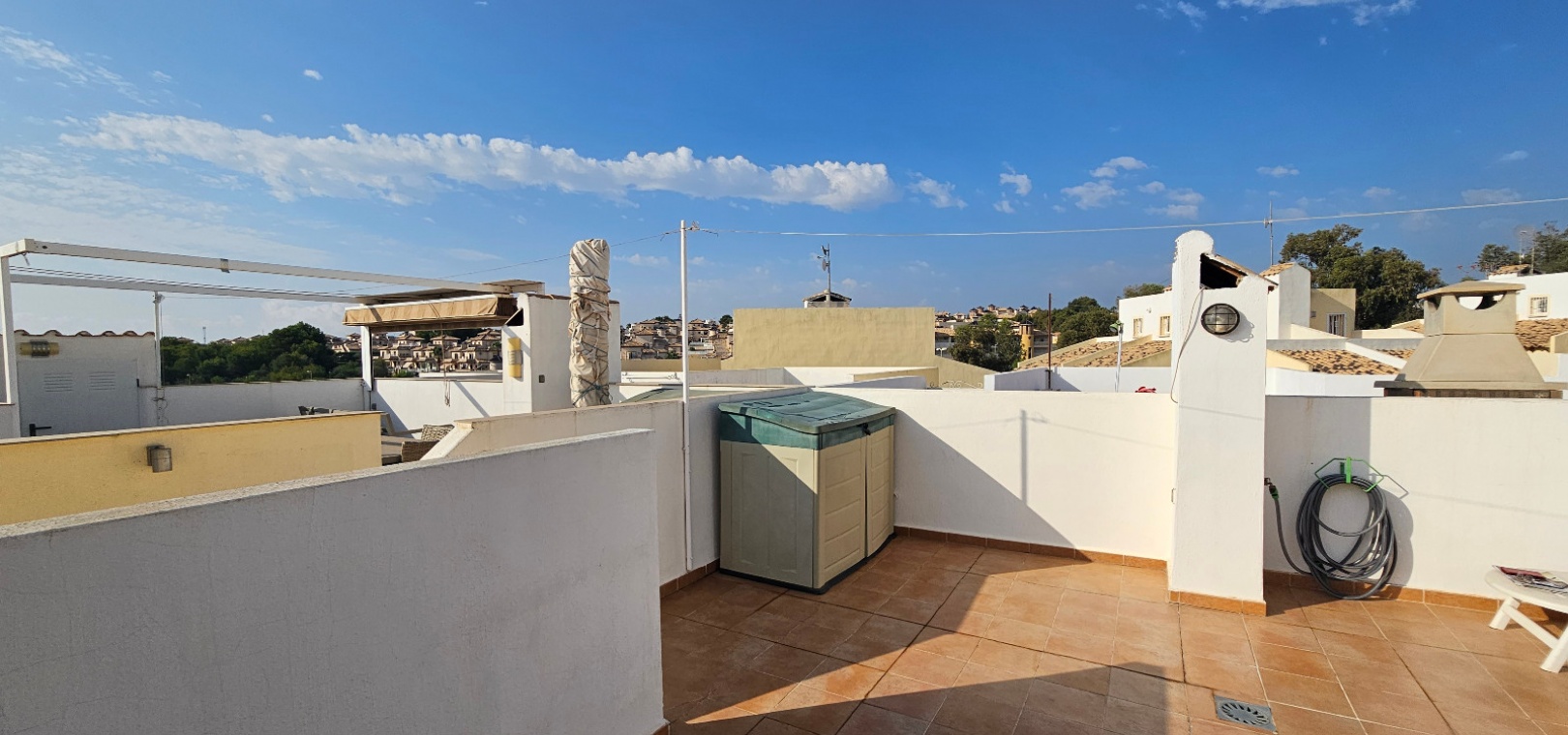 En lägenhet med 3 sovrum och 2 badrum på översta våningen med ett stort privat taksolarium belägen i Panorama Golf, Villamartin, Costa Blanca South.
