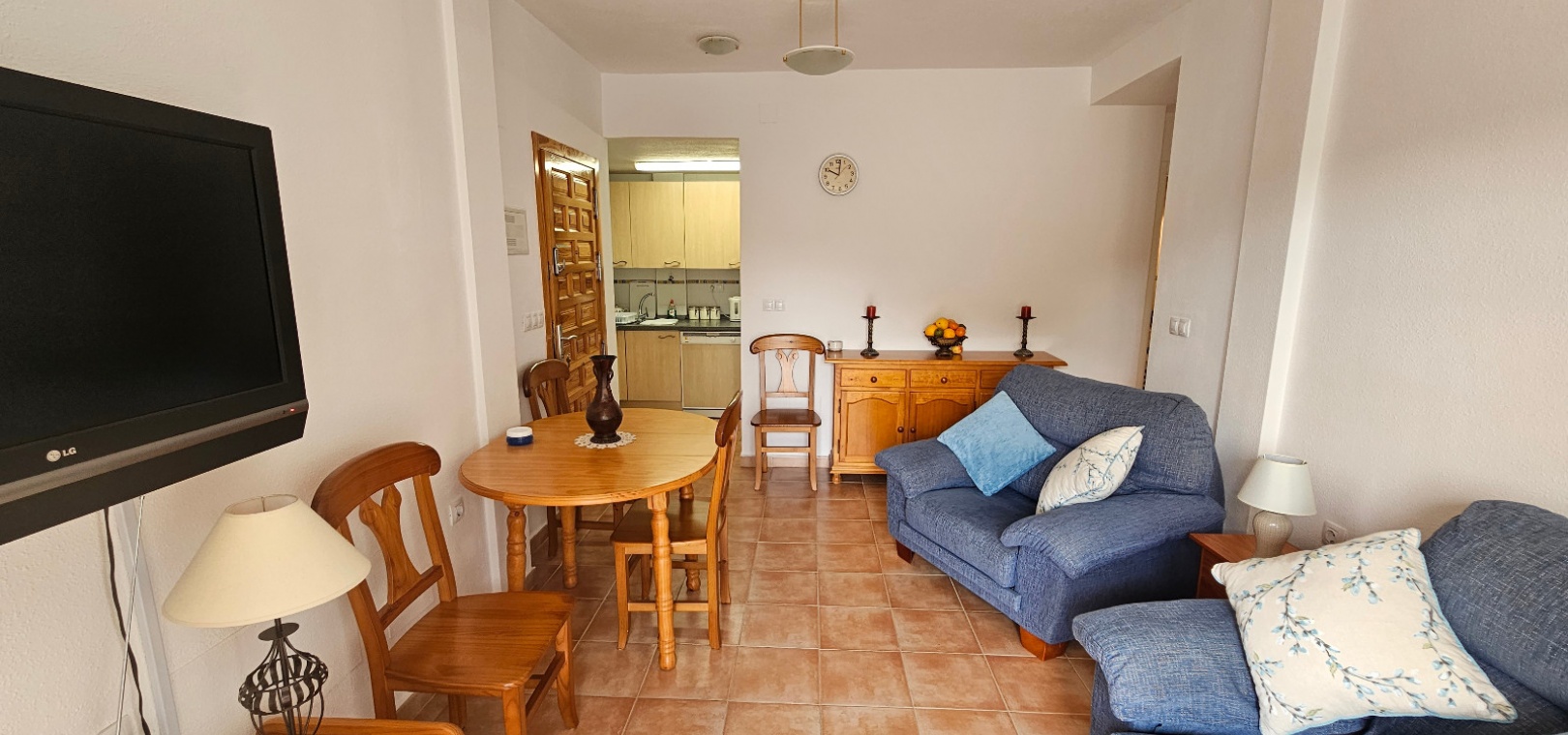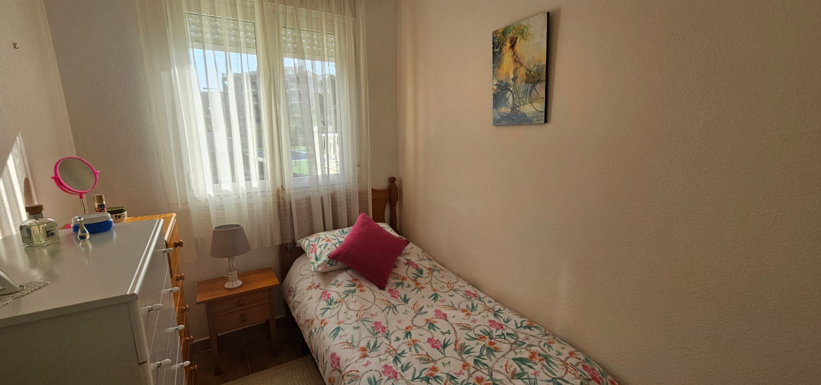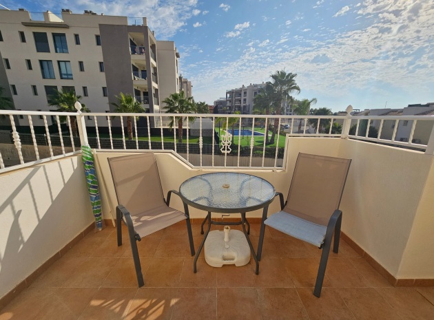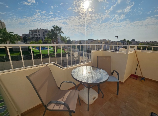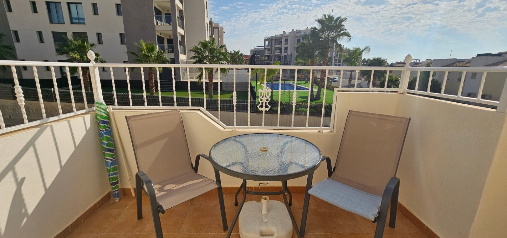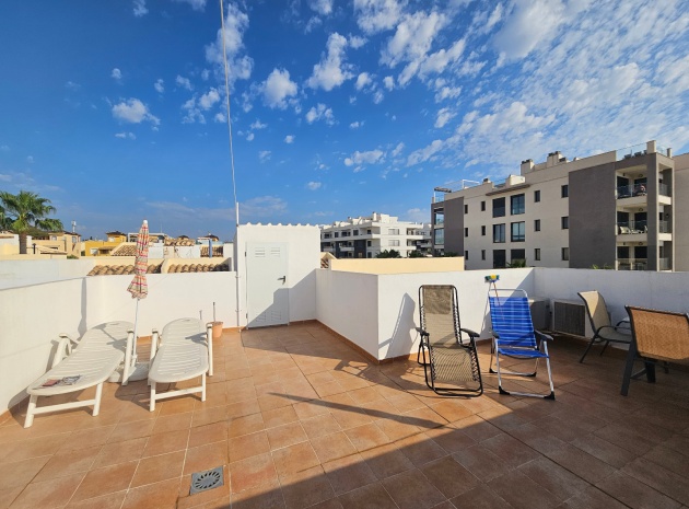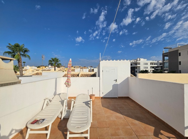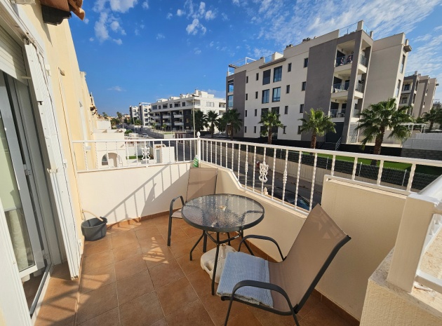 En lägenhet med 3 sovrum och 2 badrum på översta våningen med ett stort privat taksolarium belägen i Panorama Golf, Villamartin, Costa Blanca South.