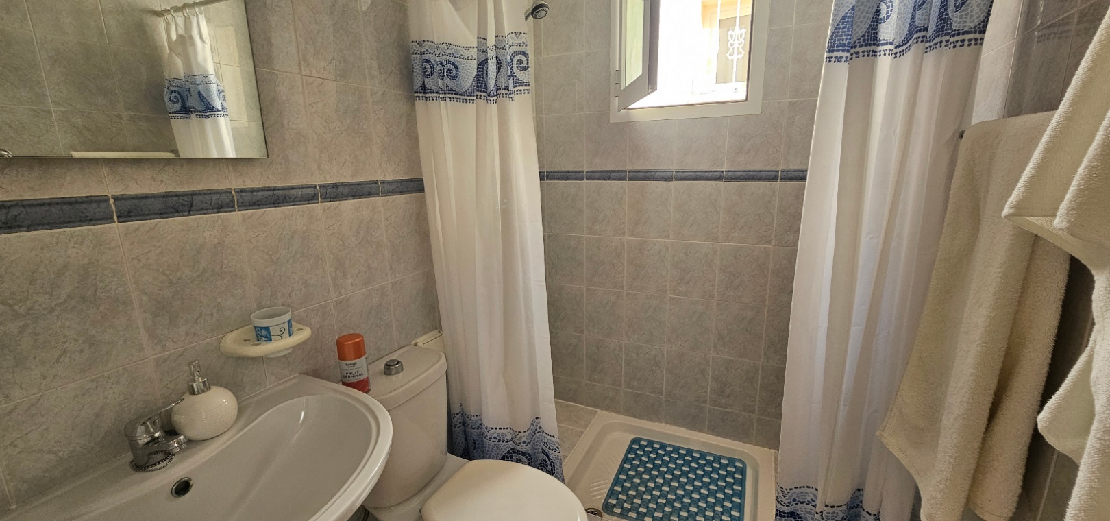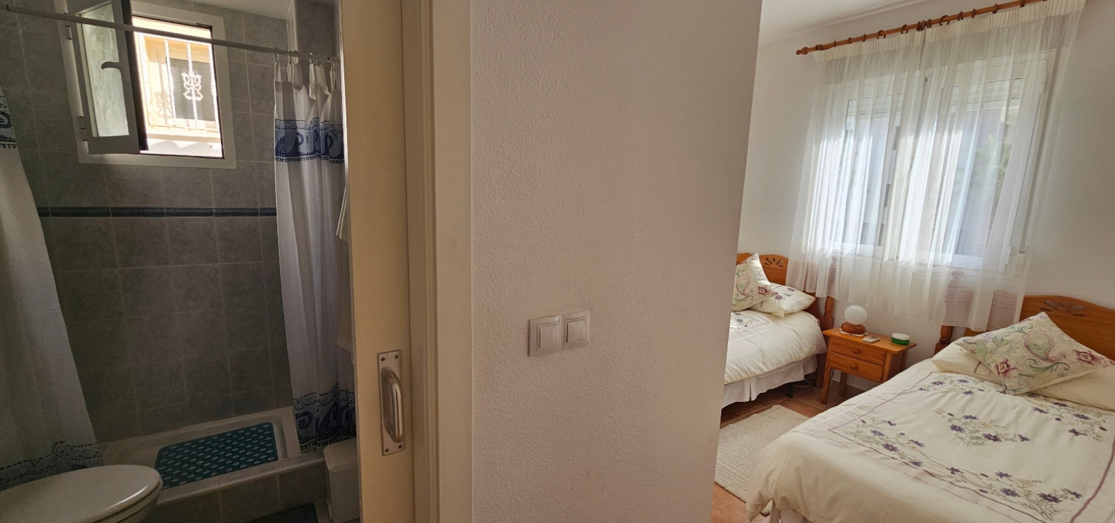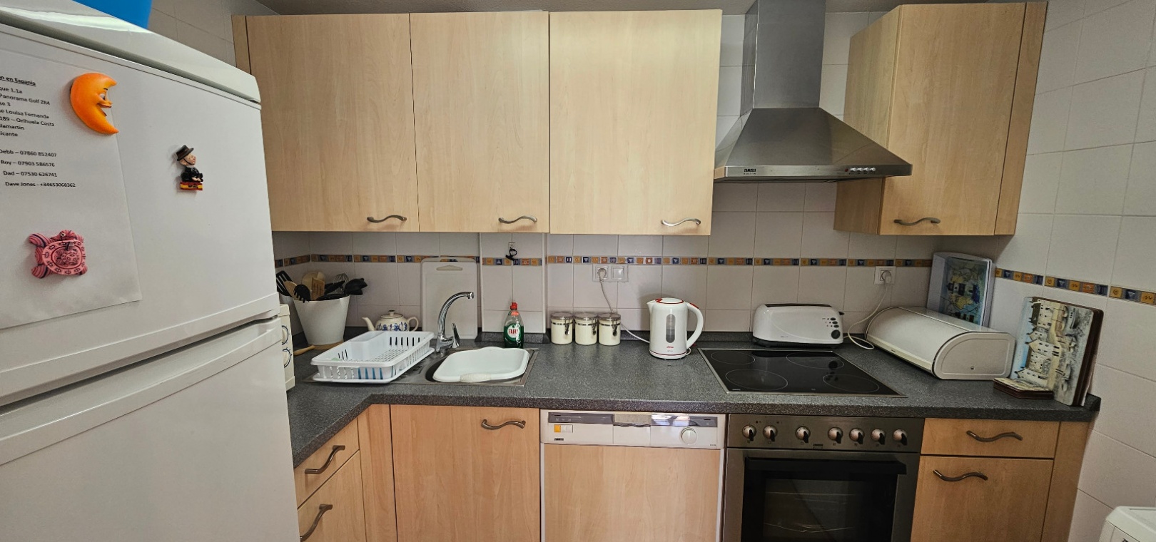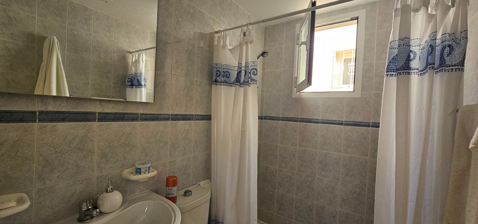 Vardagsrum/matsal med varm och kall A/C, ett fullt utrustat kök med öppen planlösning, ett stort dubbelrum med varm och kall A/C, en inbyggd garderob och ett eget duschrum, ett andra dubbelrum med varm och kall A/C /C, en takfläkt och en inbyggd garderob, ett enkelrum med en inbyggd garderob och en takfläkt, 1 x familjebadrum, en balkong utanför vardagsrummet med trappor upp till ett mycket stort privat taksolarium, en utsedd parkeringsplats , tillgång till den härliga gemensamma poolen och mycket mycket mer.