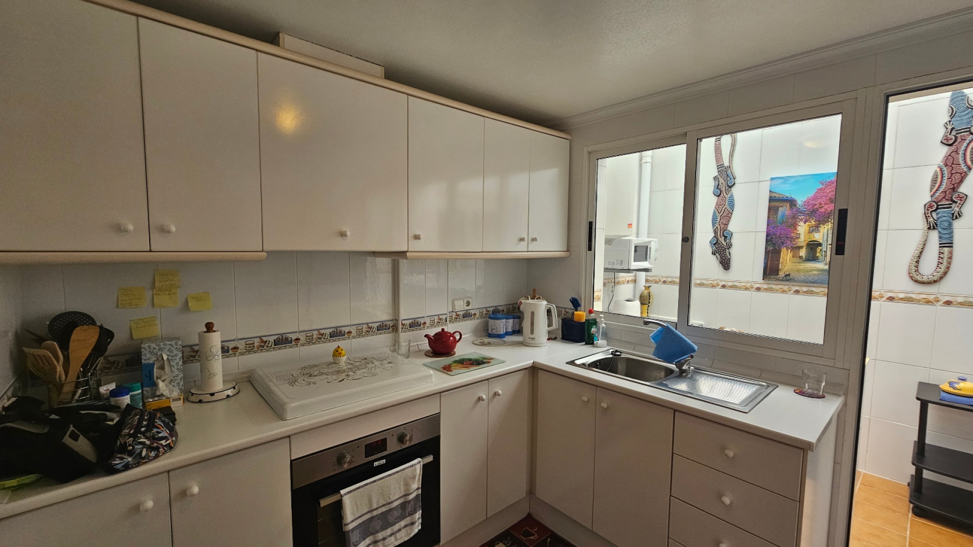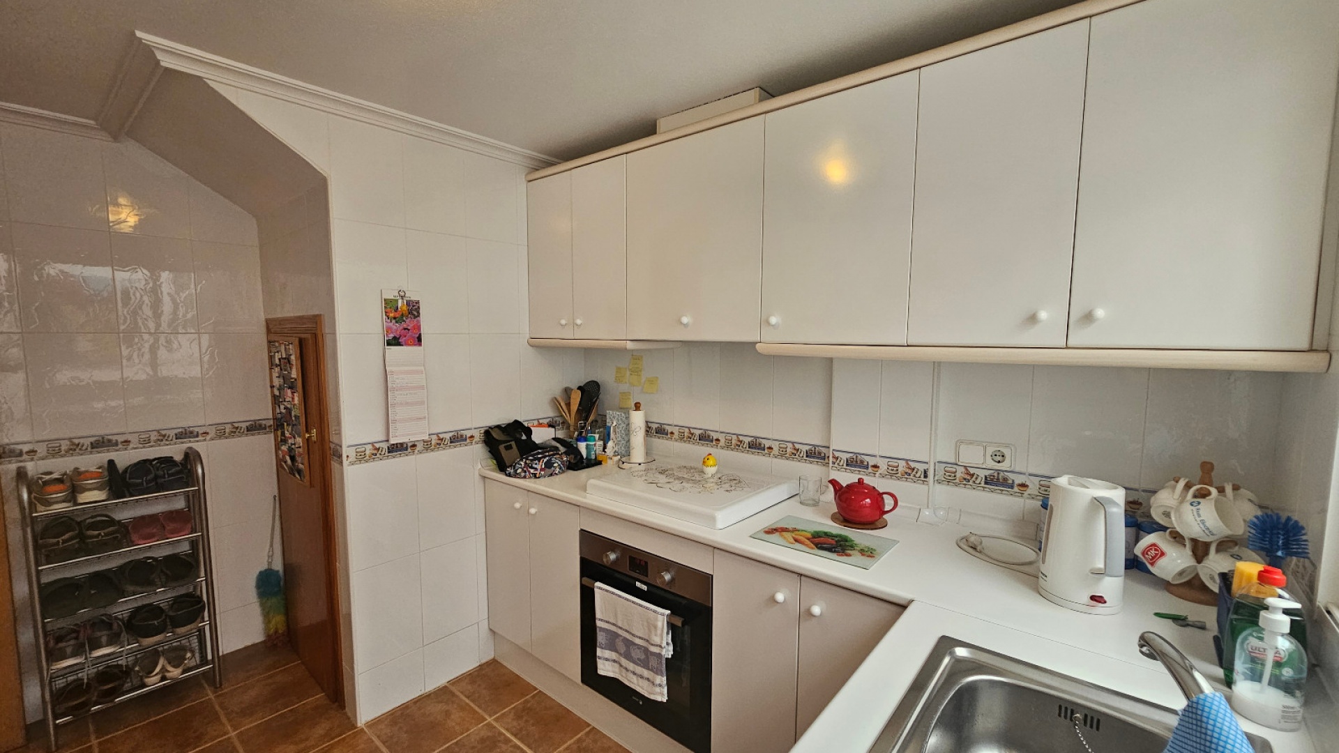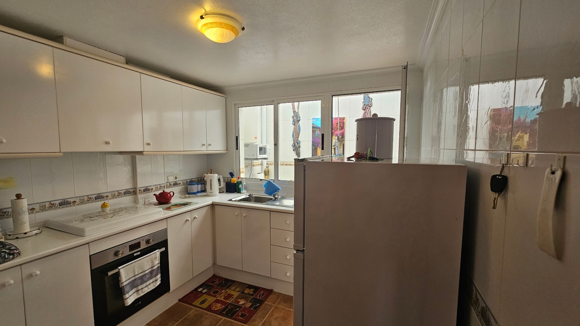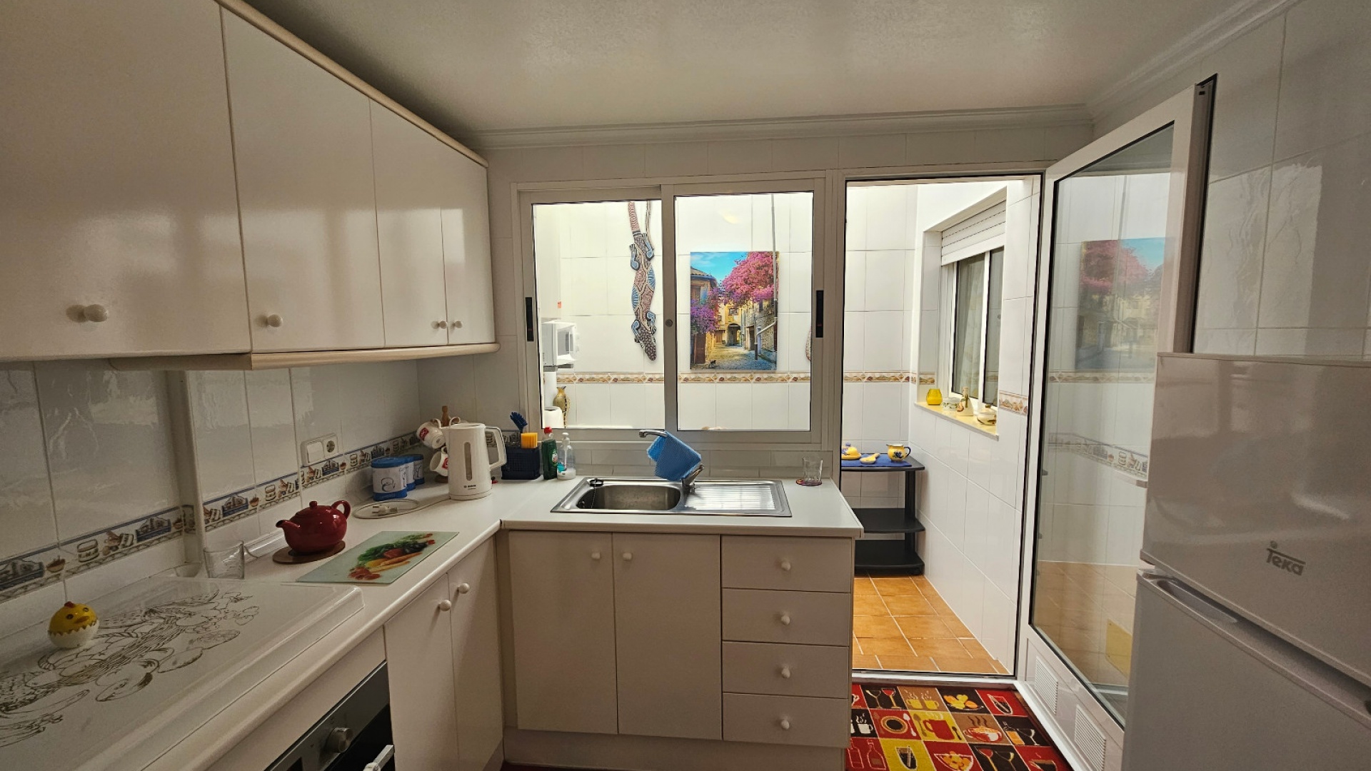 Ett radhus med 3 sovrum och 2 badrum i sydvästläge med garage och ett stort förråd, beläget i Laderas del Sol, Los Altos, södra Costa Blanca. Denna härliga, rymliga fastighet bjuds ut till försäljning i mycket gott skick, möblerad och består mycket kortfattat av följande: - På bottenvåningen finns ett stort vardagsrum/matrum med bäddsoffa, varm och kall luftkonditionering och en takfläkt , ett separat fullt utrustat nytt kök med ett separat täckt bruksområde och 1 x stort dubbelrum med varm och kall A/C. Det finns också ett duschrum på bottenvåningen. På första våningen finns 2 x dubbelrum som båda har varm och kall A/C och ett med en inbyggd garderob och en takfläkt och ett med en stor klädkammare/förråd. Det finns också ett stort familjebadrum på första våningen och en balkong med öppen utsikt. Fastigheten har en täckt terrass på framsidan med öppen utsikt och en solmarkis, en liten trädgård på framsidan och en 13m2 underjordisk parkeringsplats med ett 10m2 låsbart förråd. Du kan också parkera på den stora off-road kommunala parkeringen. Det ligger på en säker gated community med en vacker gemensam pool och trädgård. Denna vackra fastighet är mycket väl presenterad, ett superhus till ett mycket bra pris. Denna fastighet ligger mindre än 4 km från stränderna Playa Flamenca och Punta Prima och cirka 50 minuters bilresa till Alicantes flygplats. Lokala restauranger, barer, butiker, stormarknader och den lokala busshållplatsen ligger alla inom gångavstånd. * Alla möbler eller elektriska föremål (inklusive luftkonditioneringsenheter) som ingår i rean säljs som begagnade föremål utan garanti. All information ges endast som vägledning *